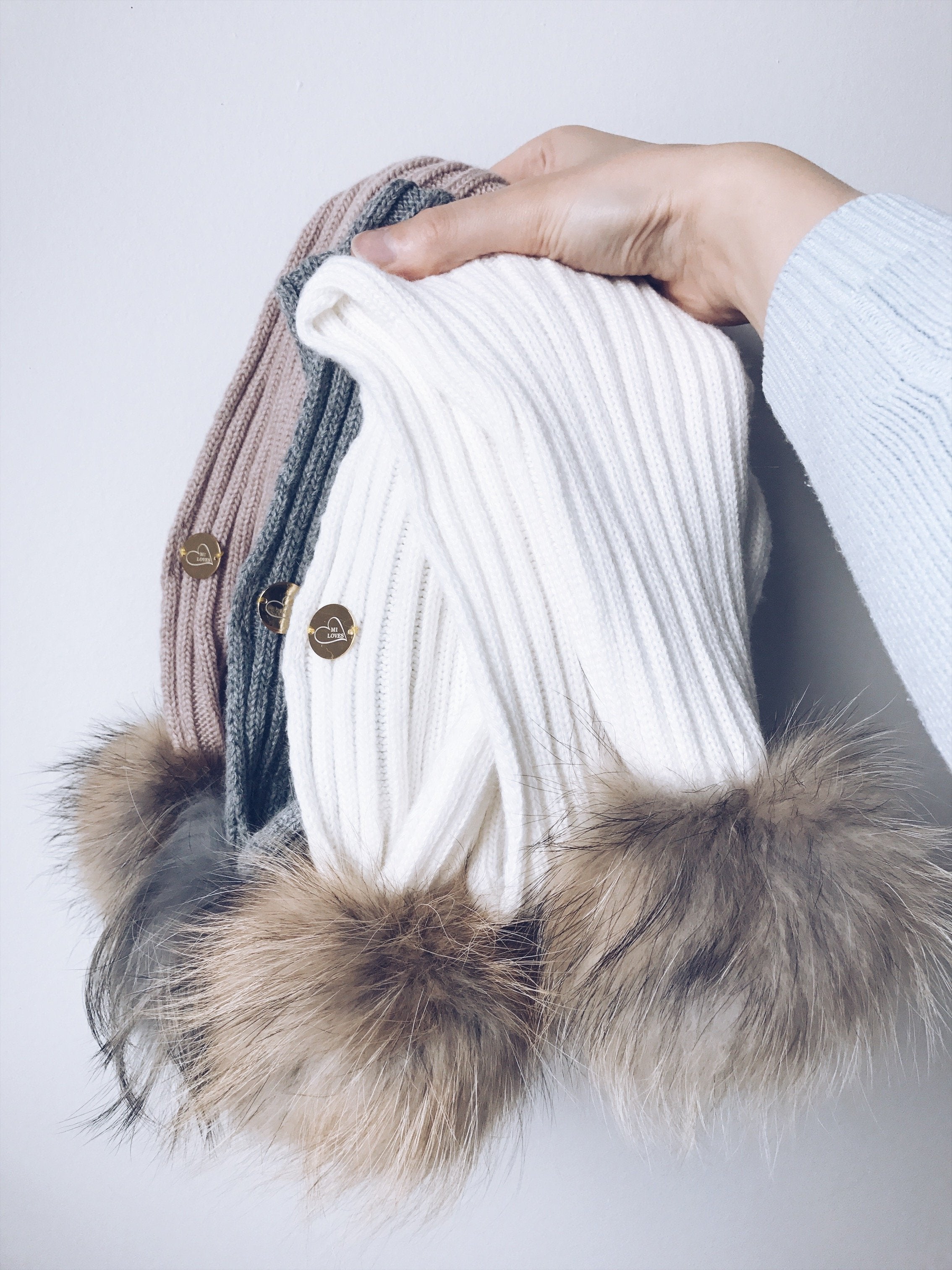 MILOVES SIGNATURE CASHMERE COLLECTION Scarf with 2 Racoon fur pom-poms.