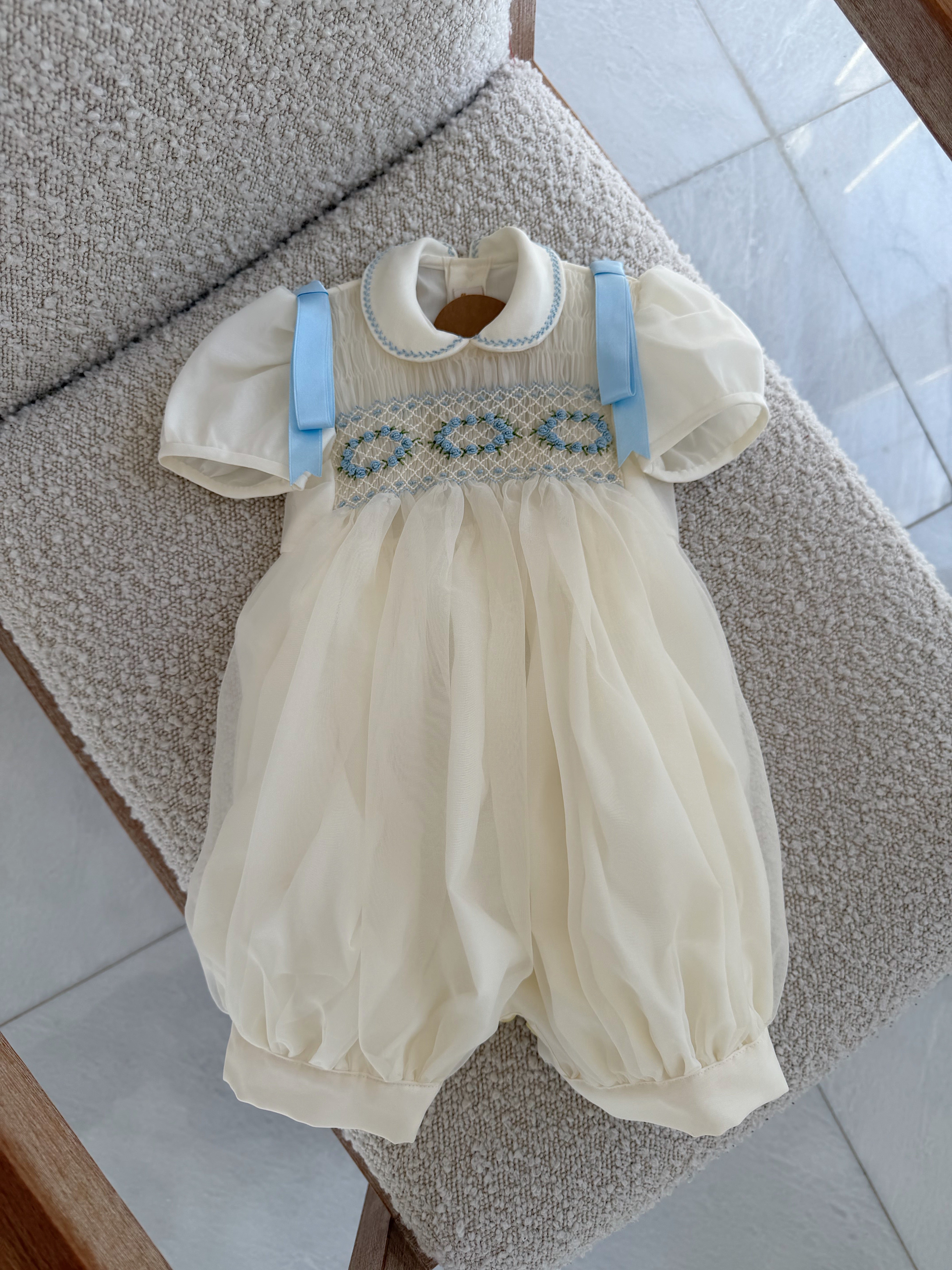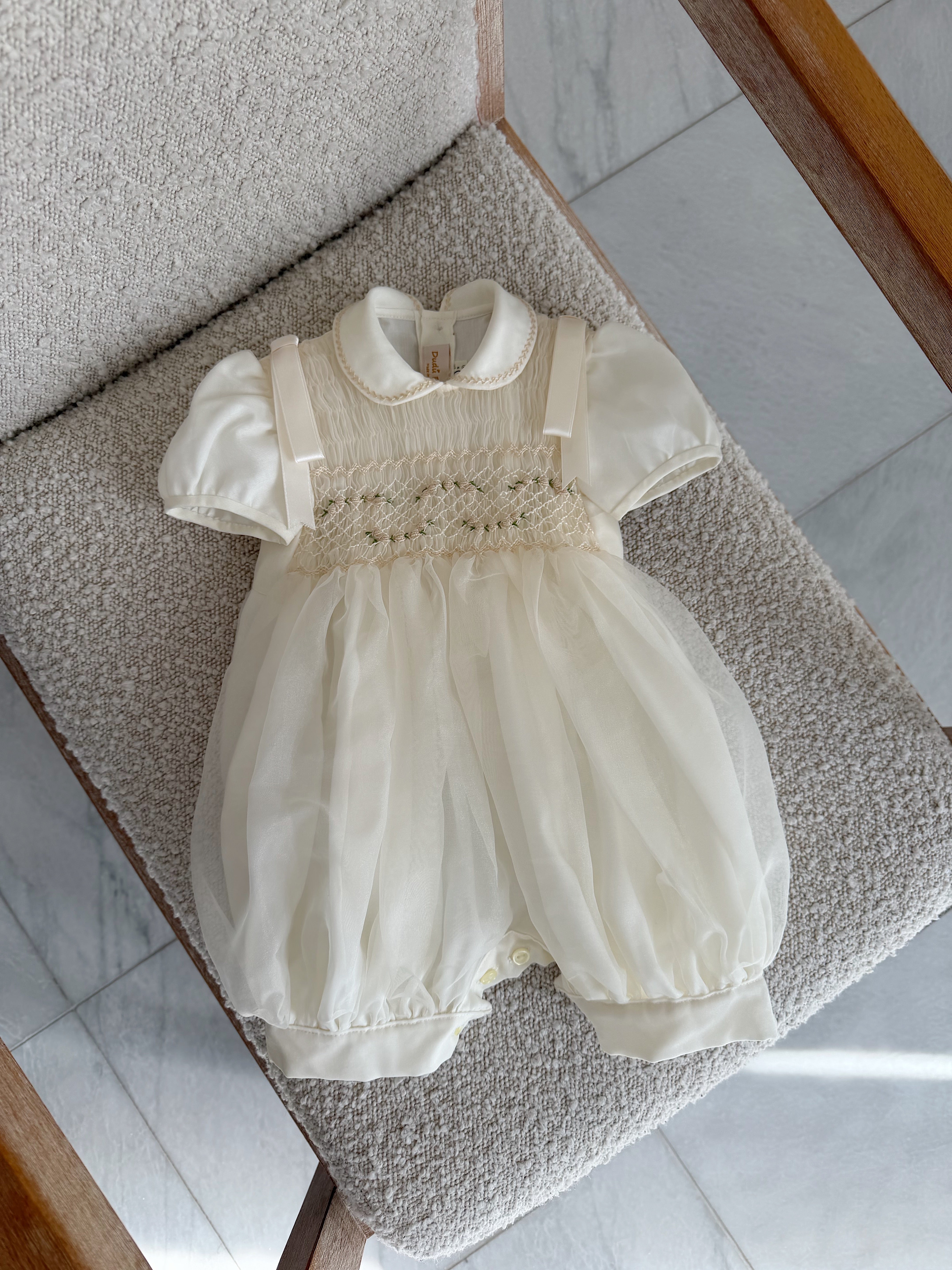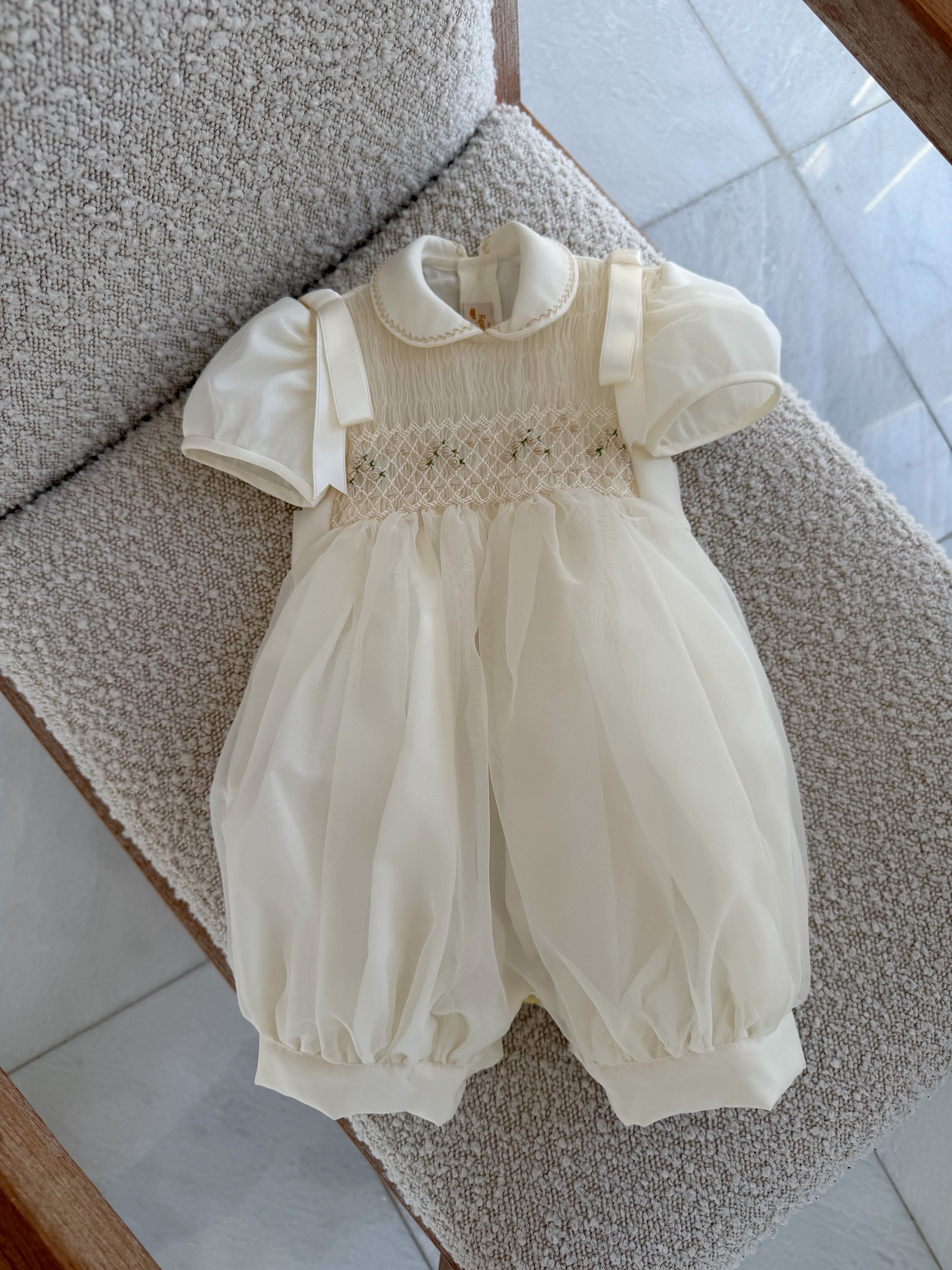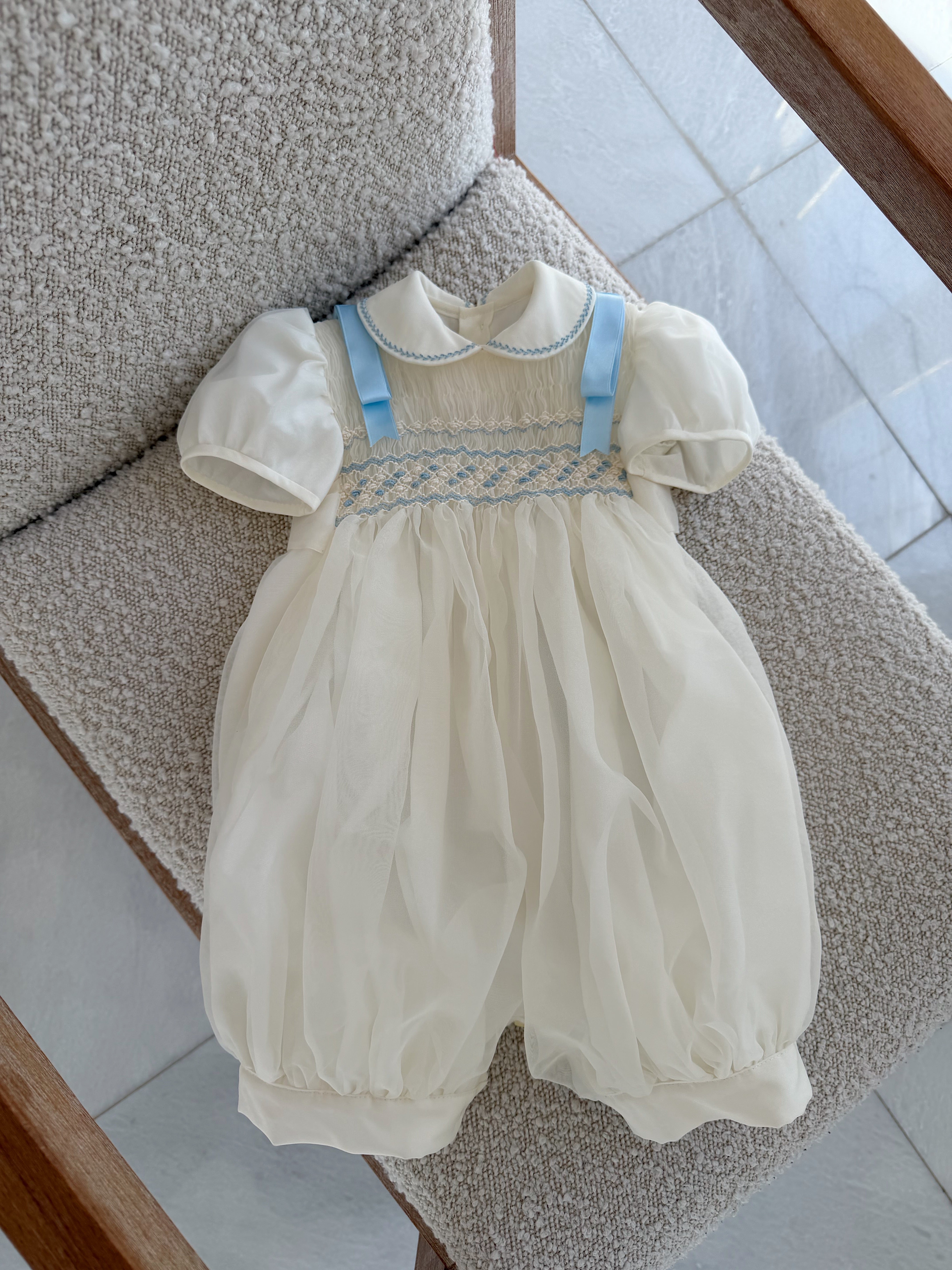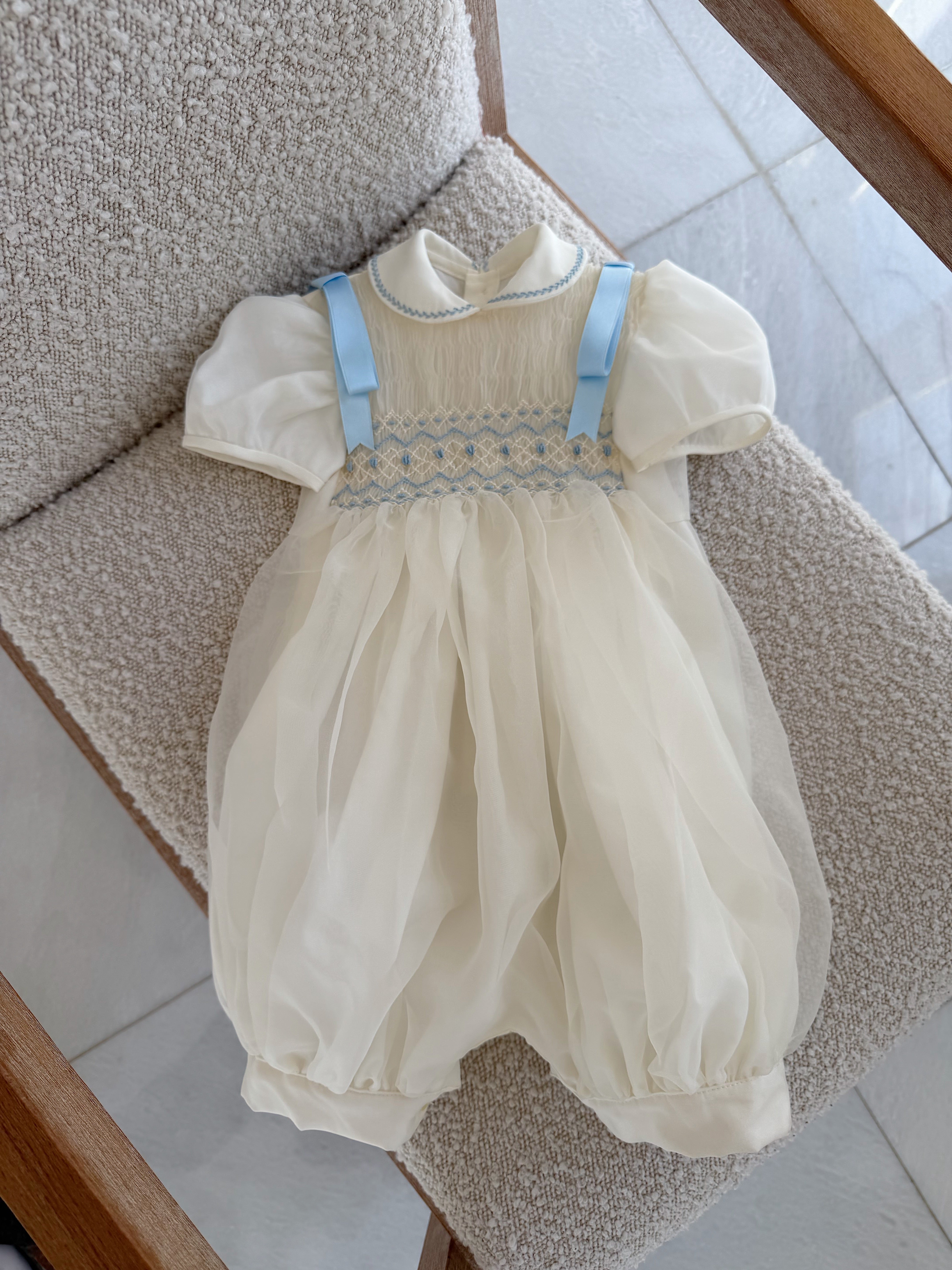 Beautiful Hand Smoked Organza Romper with Satin bow (N 24)