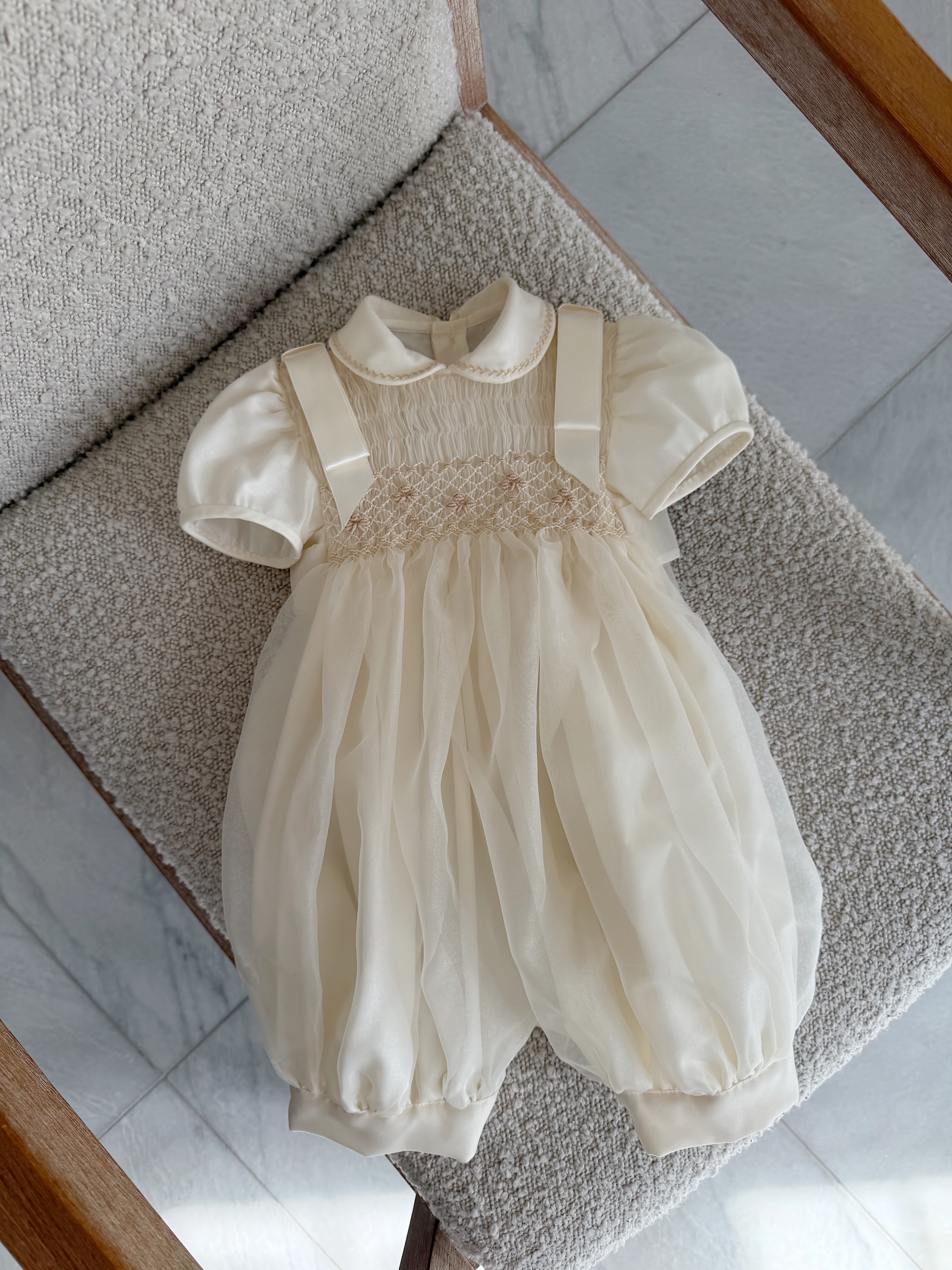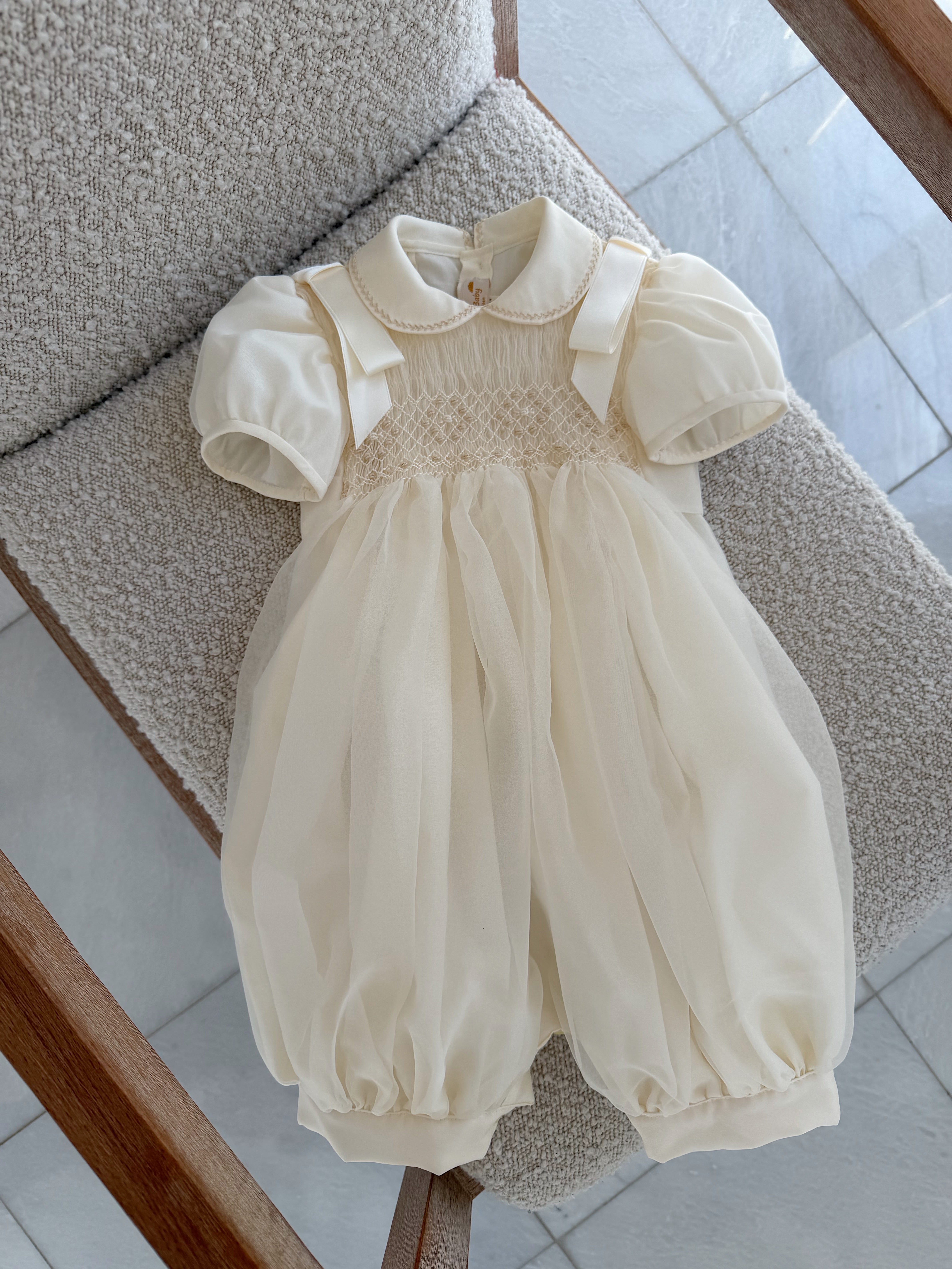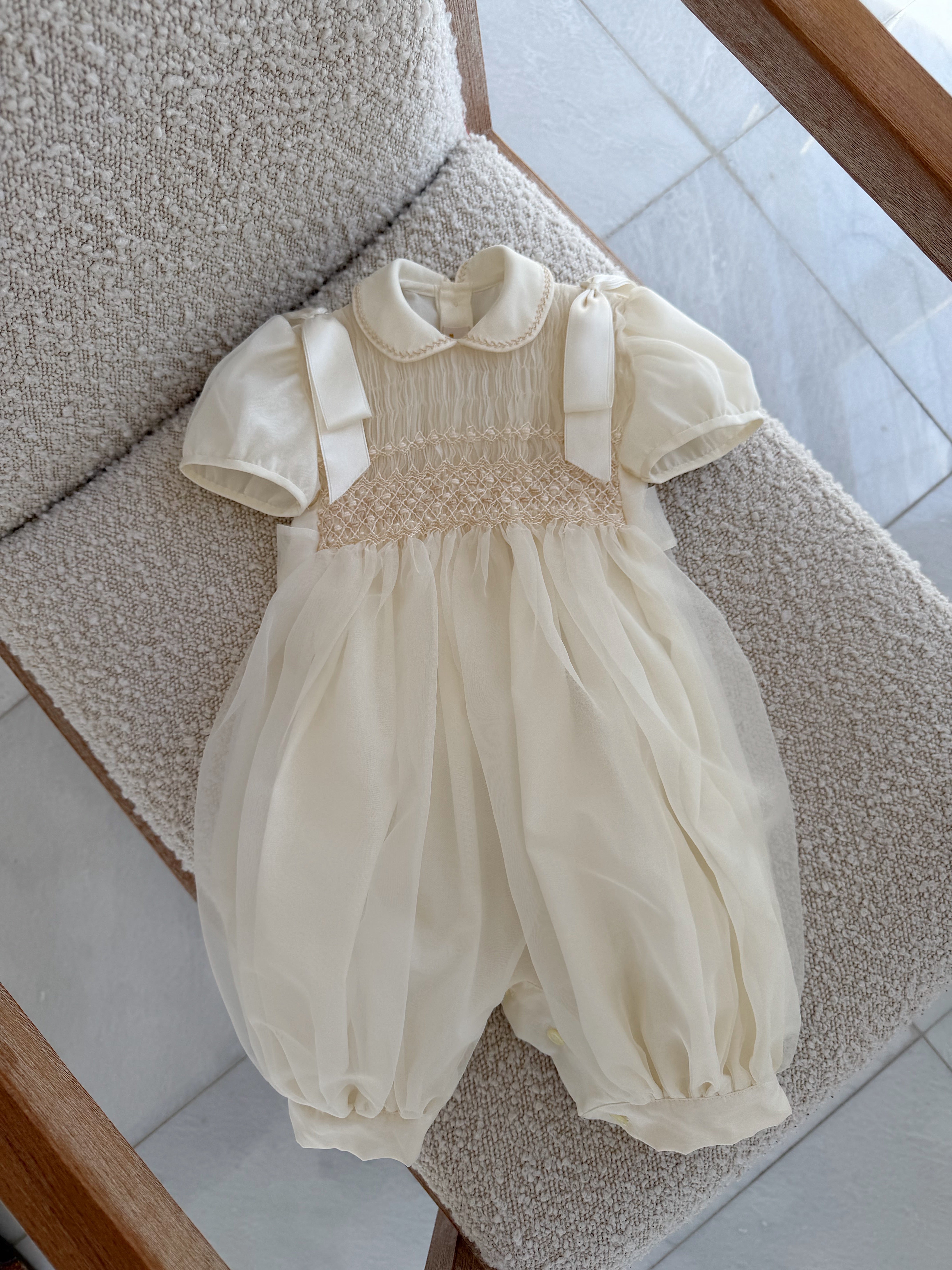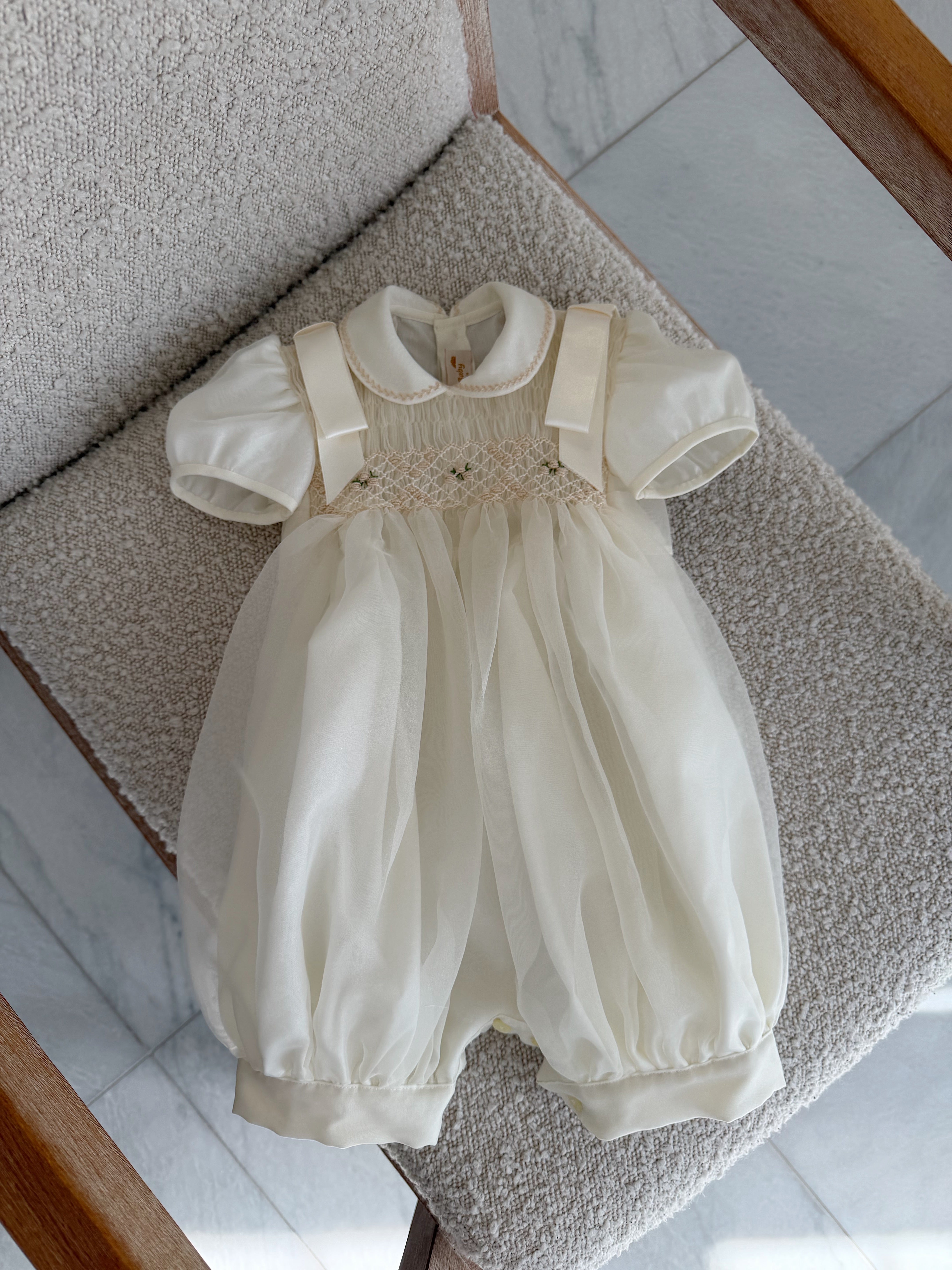 Beautiful Hand Smoked Organza Romper with Satin bow details(N 30)