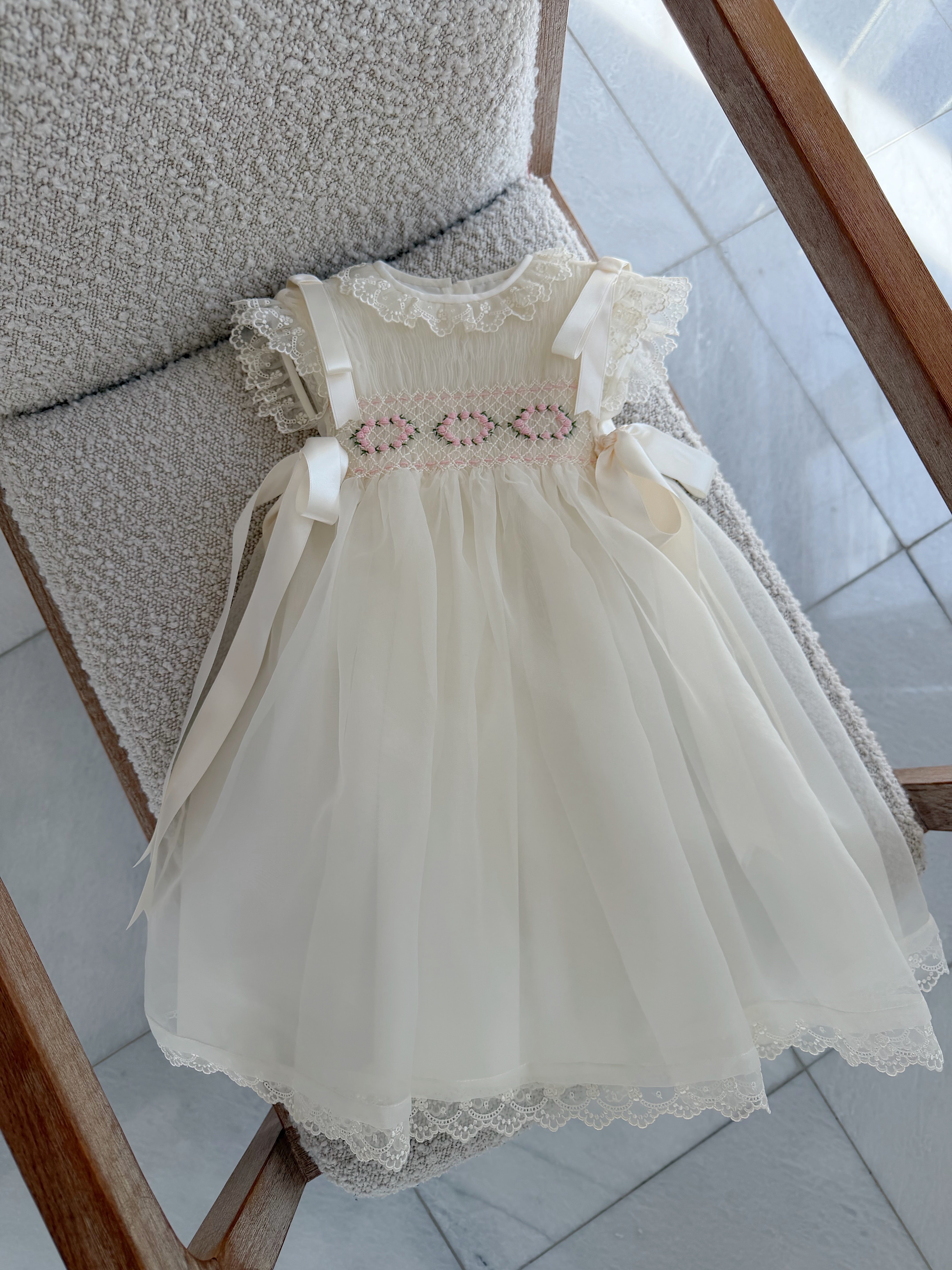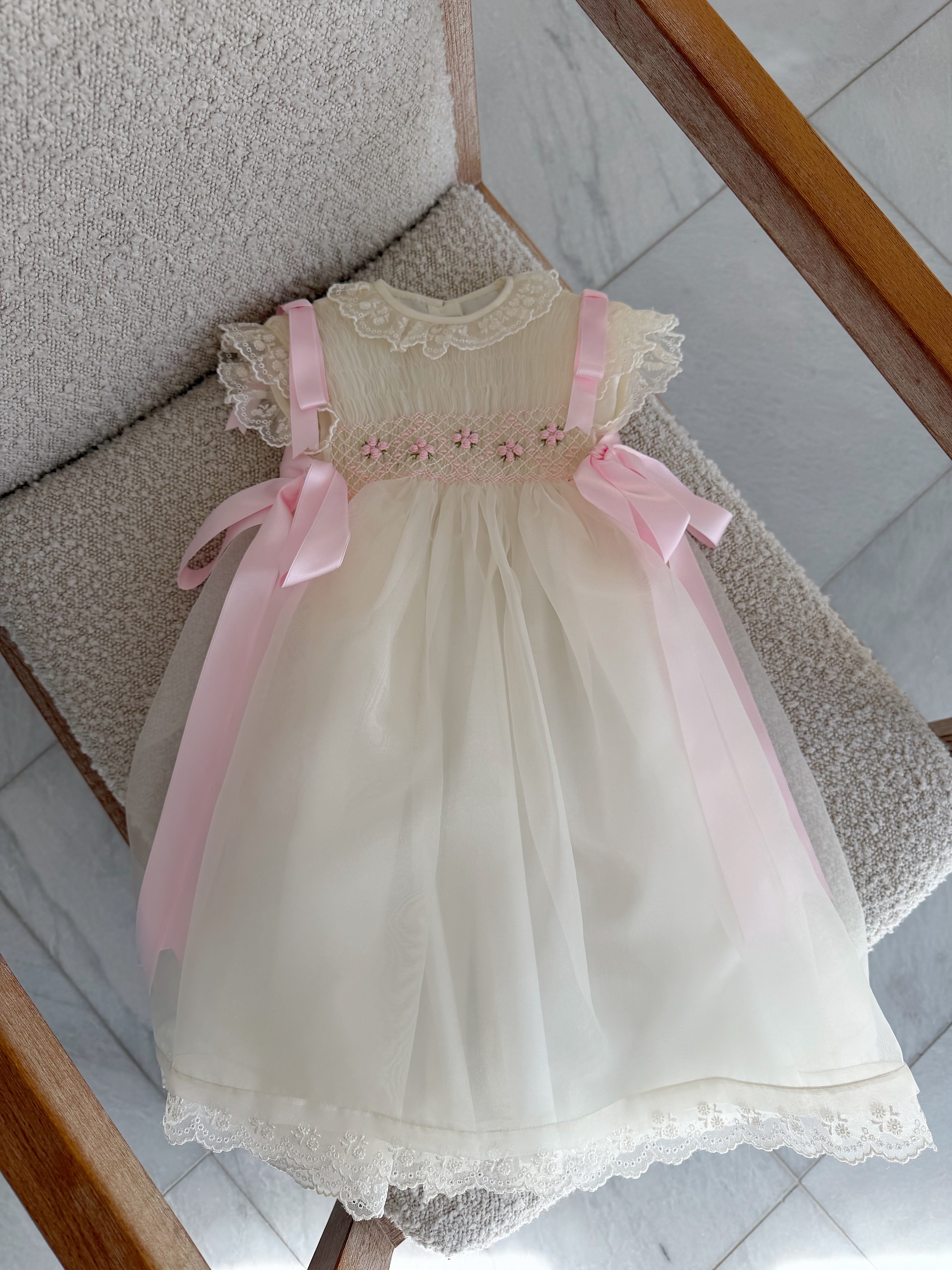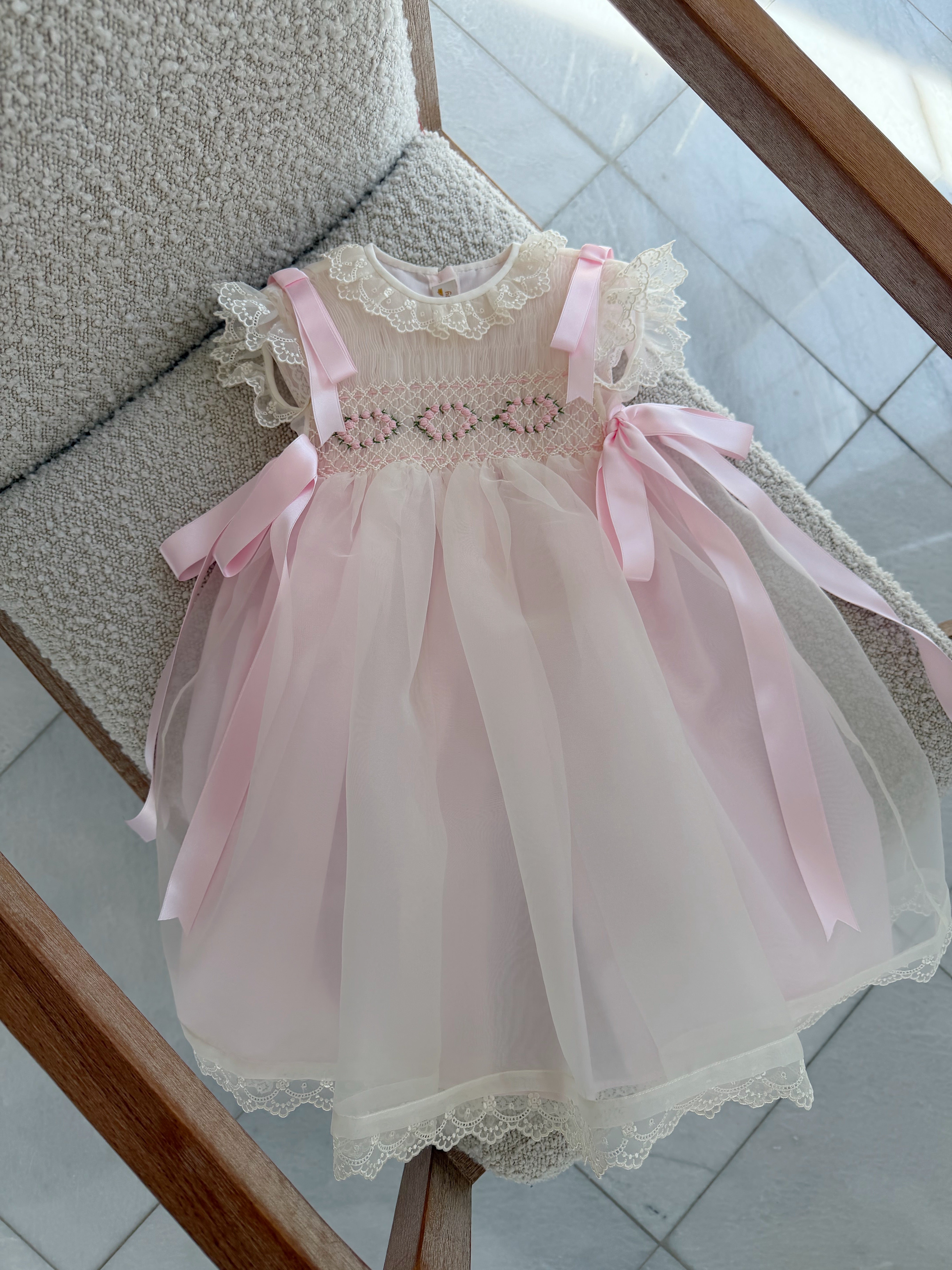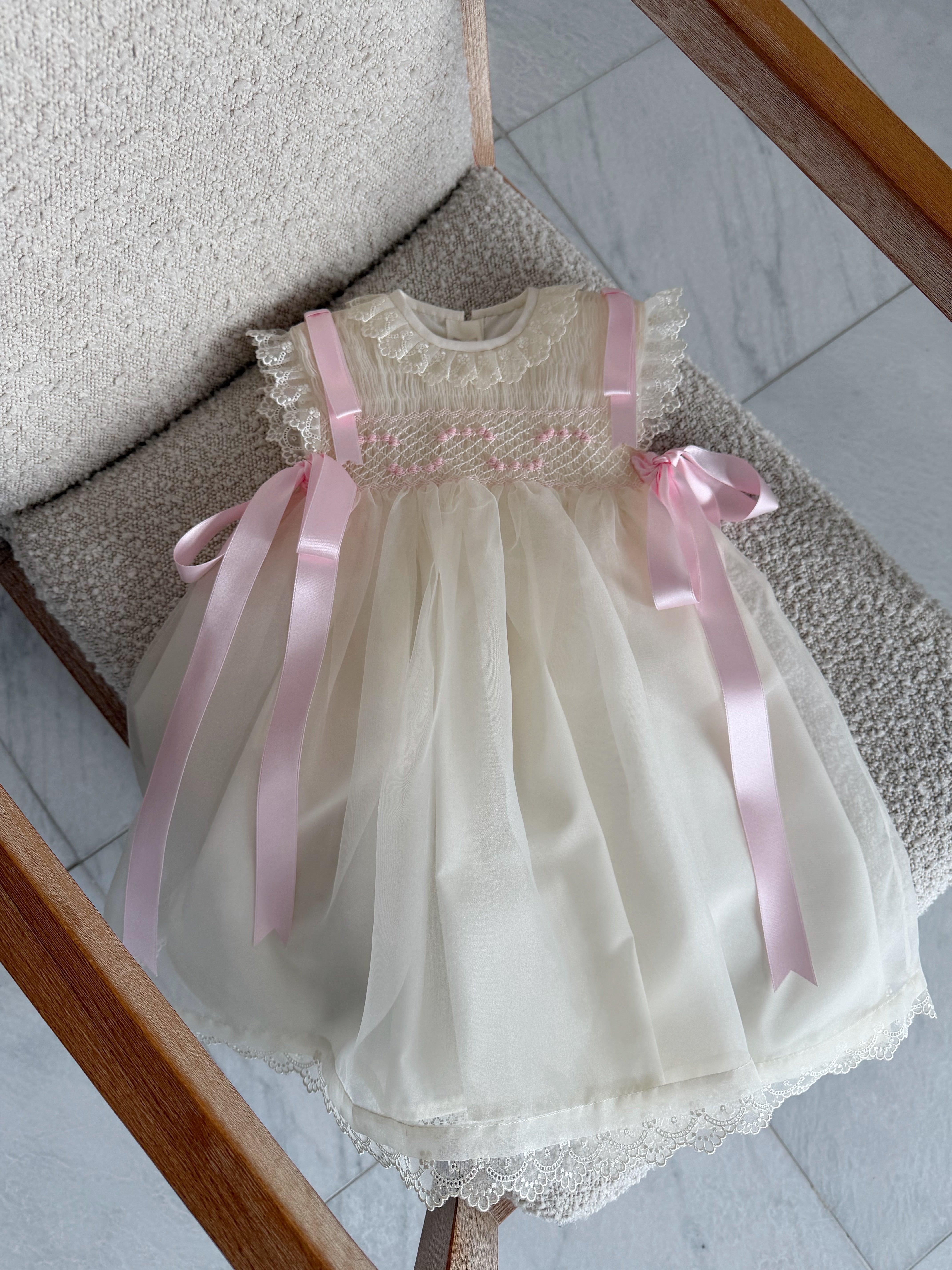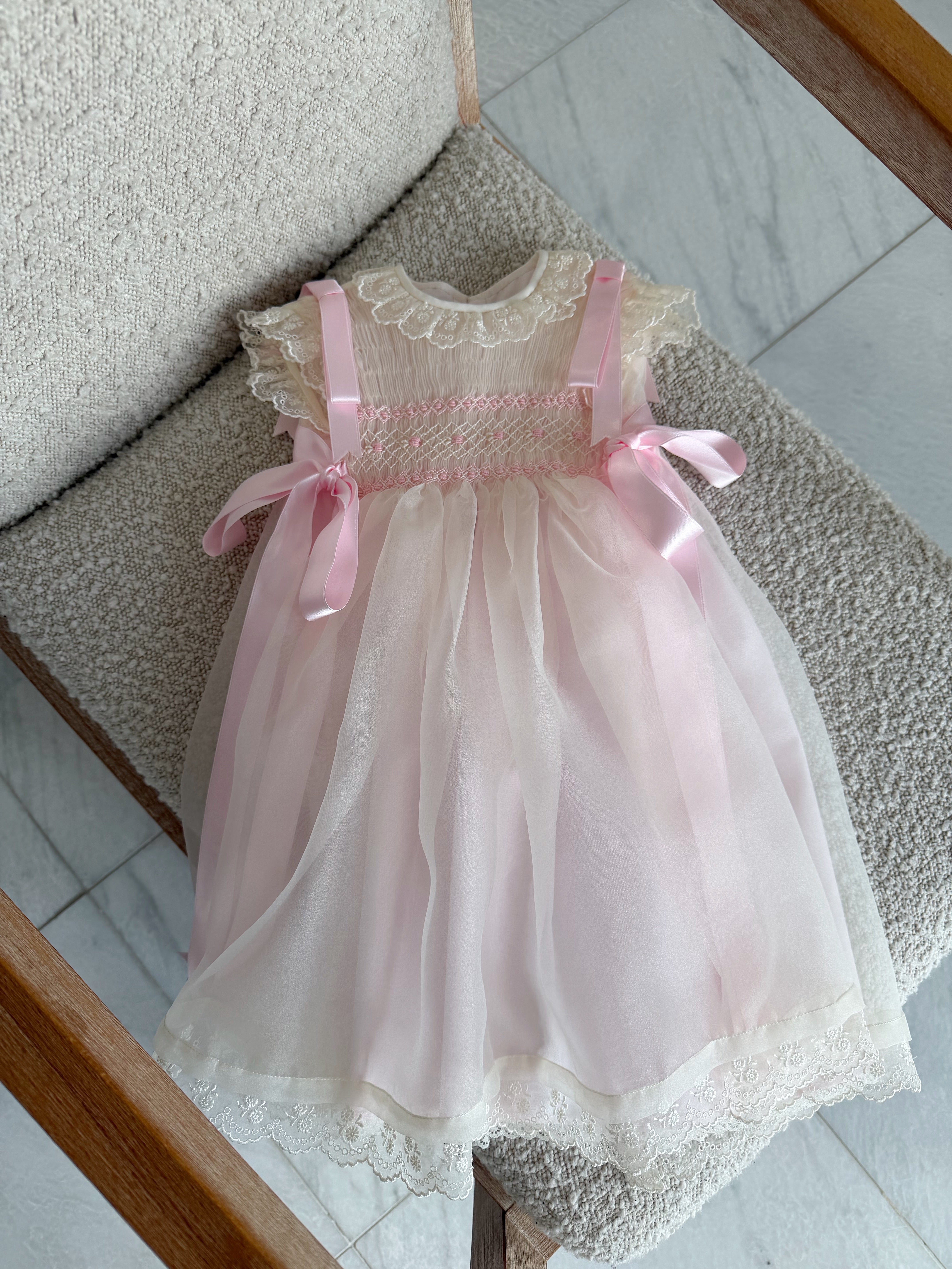 Beautiful Hand Smoked Organza Dress/Gown with Satin bow details(N 32)