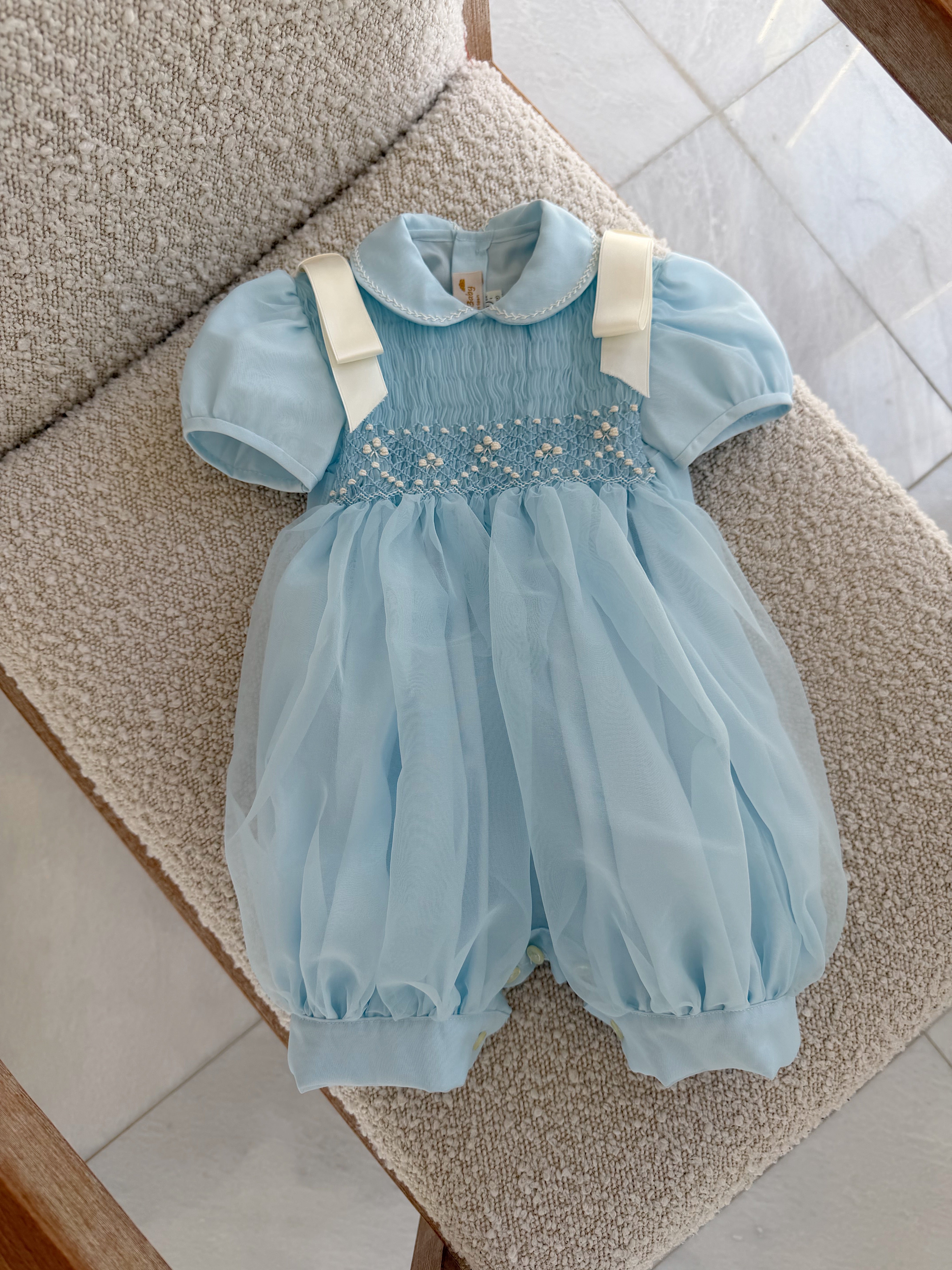 Beautiful Hand Smoked Organza Romper with Satin bow details(N 25)