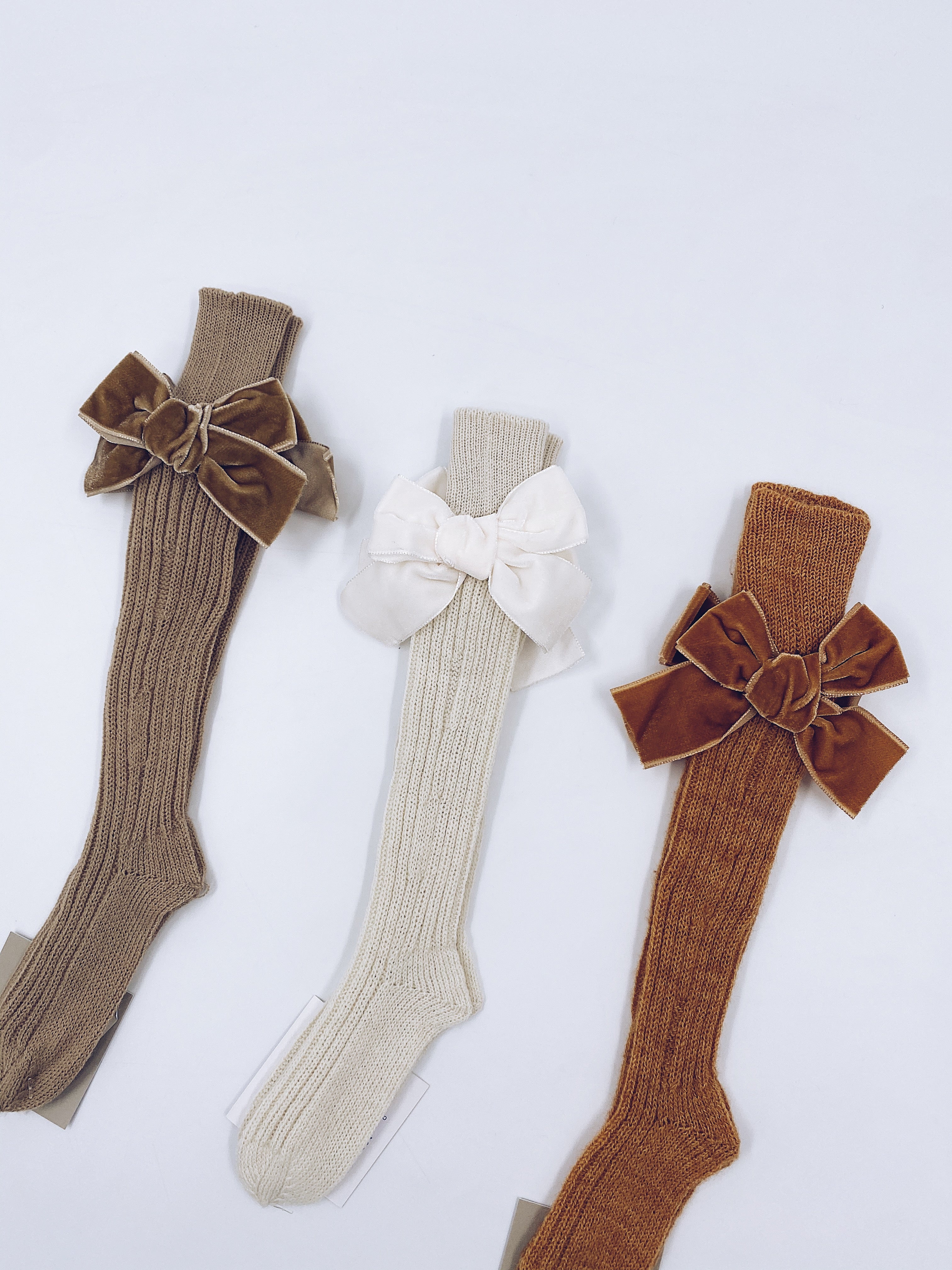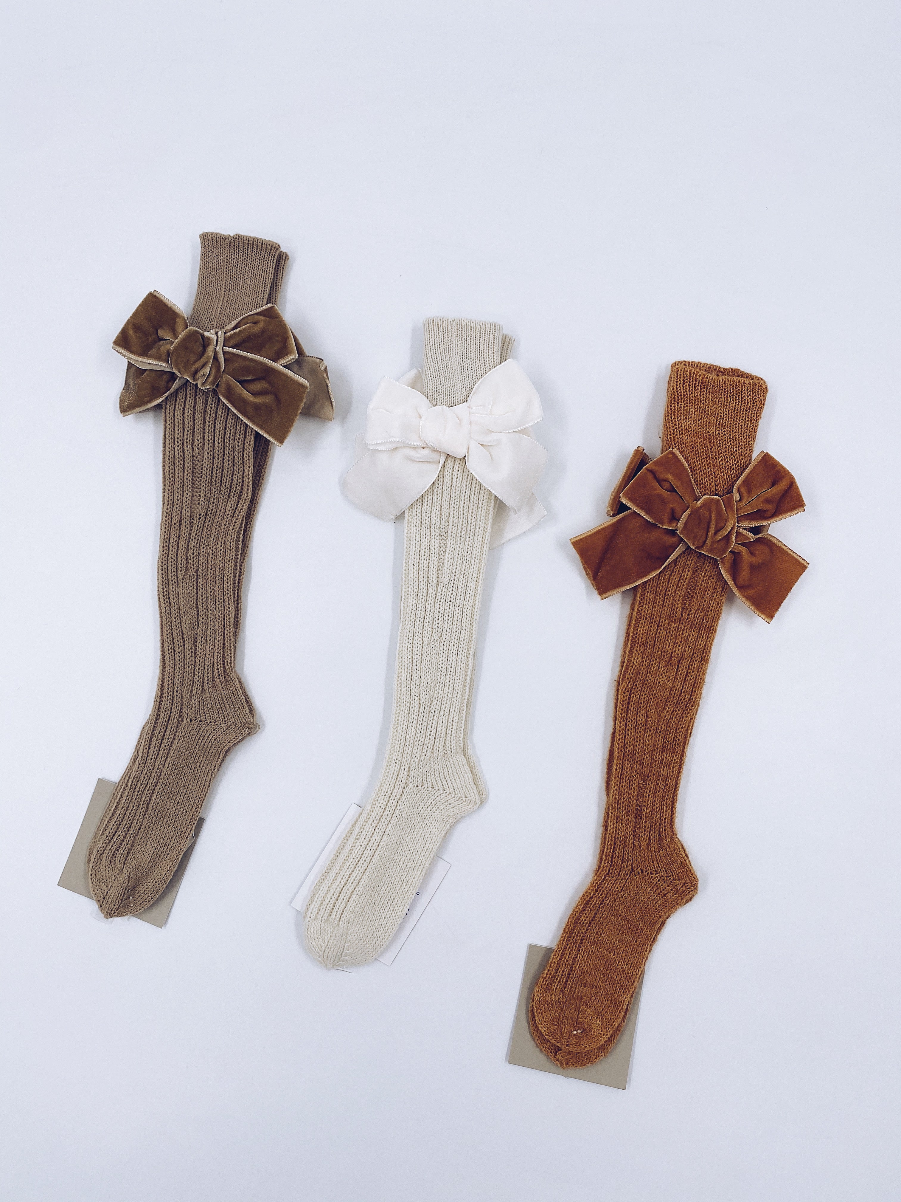 Beautiful high knee Knitted socks with Luxurious velvet bows(7051)