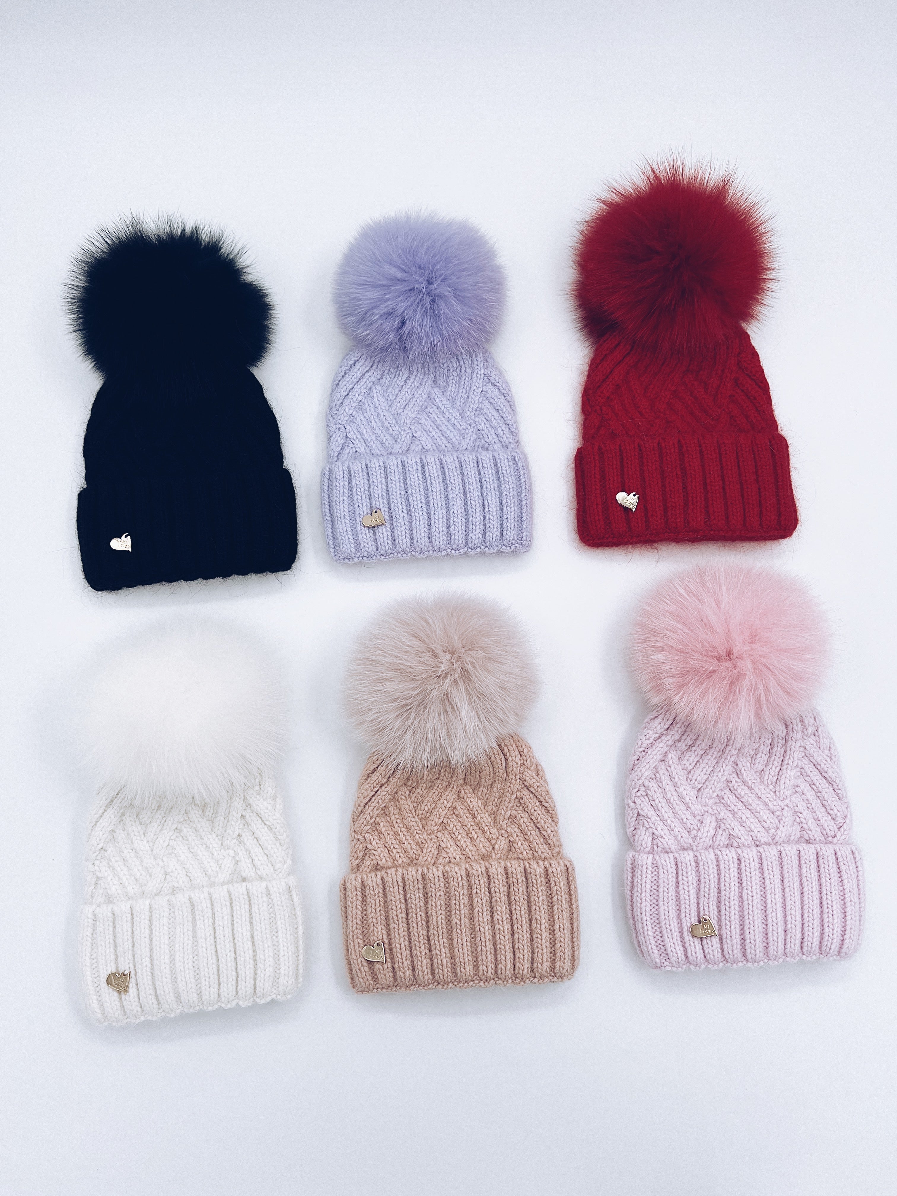 MI LOVES SIGNATURE Angora baby hat with Fox FUR pompom