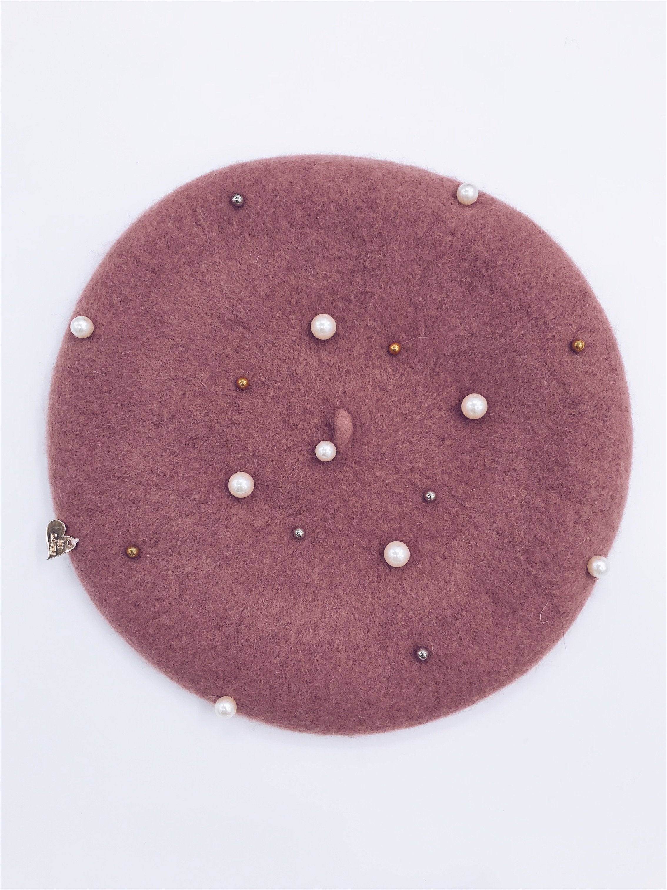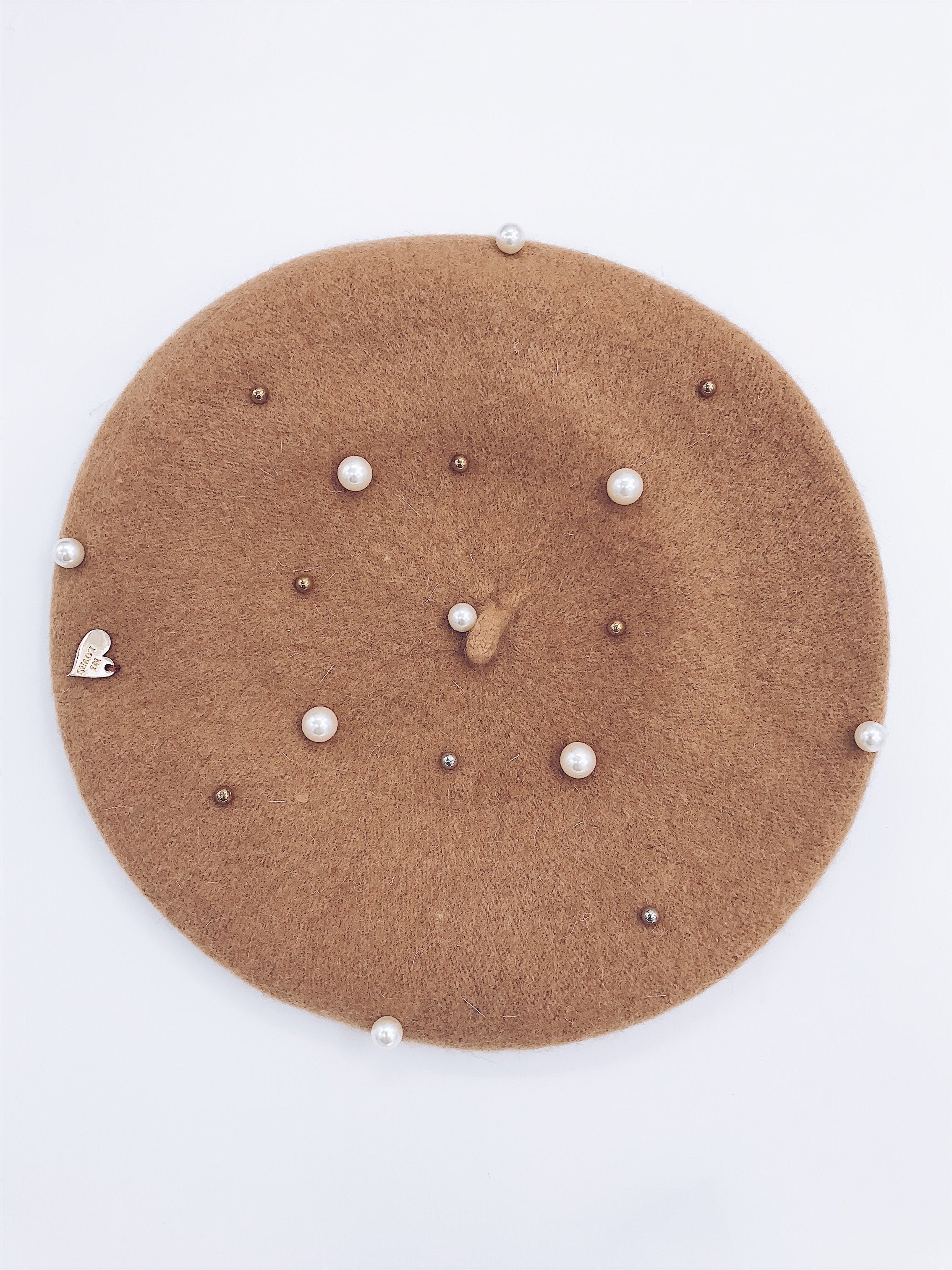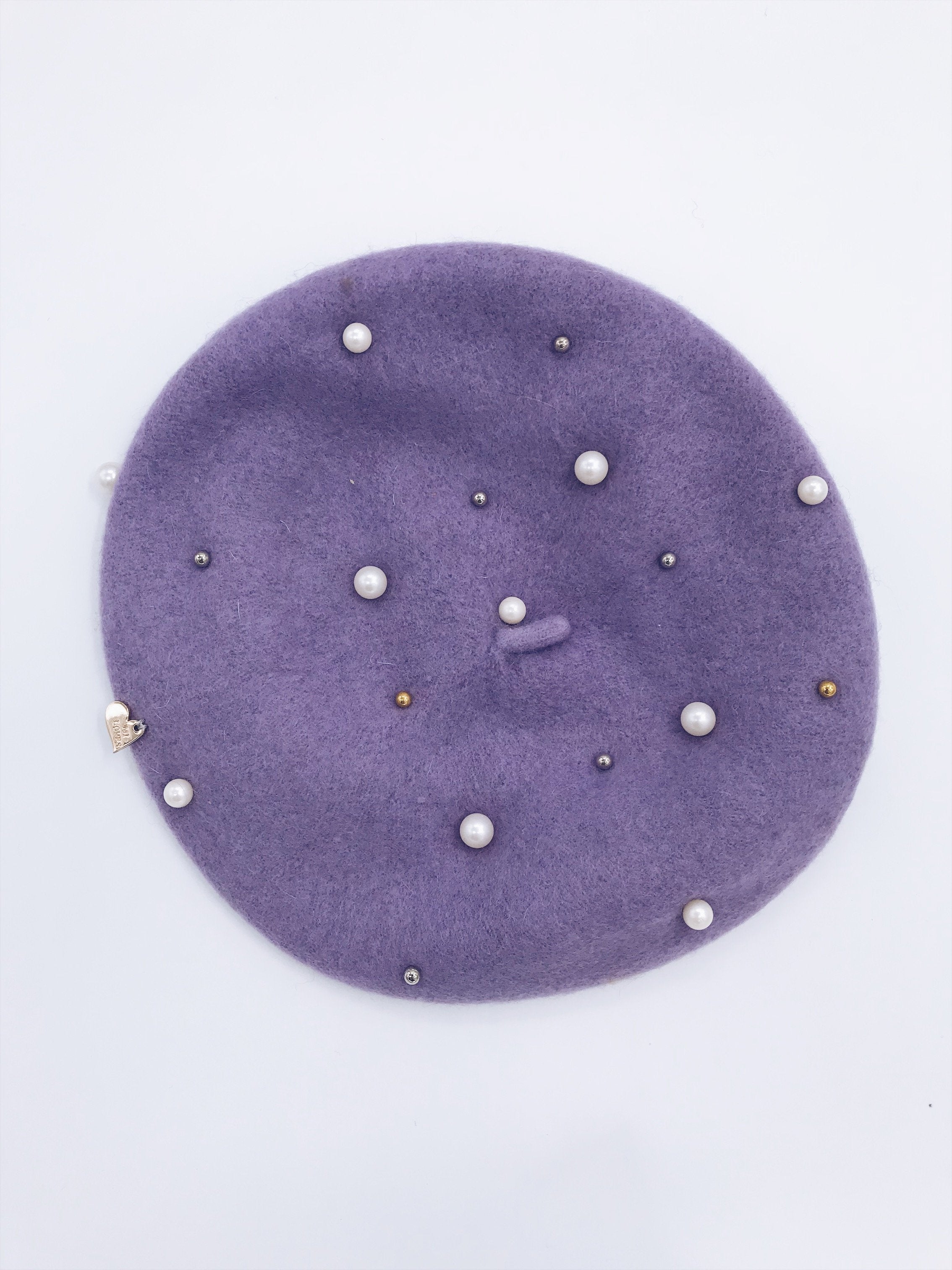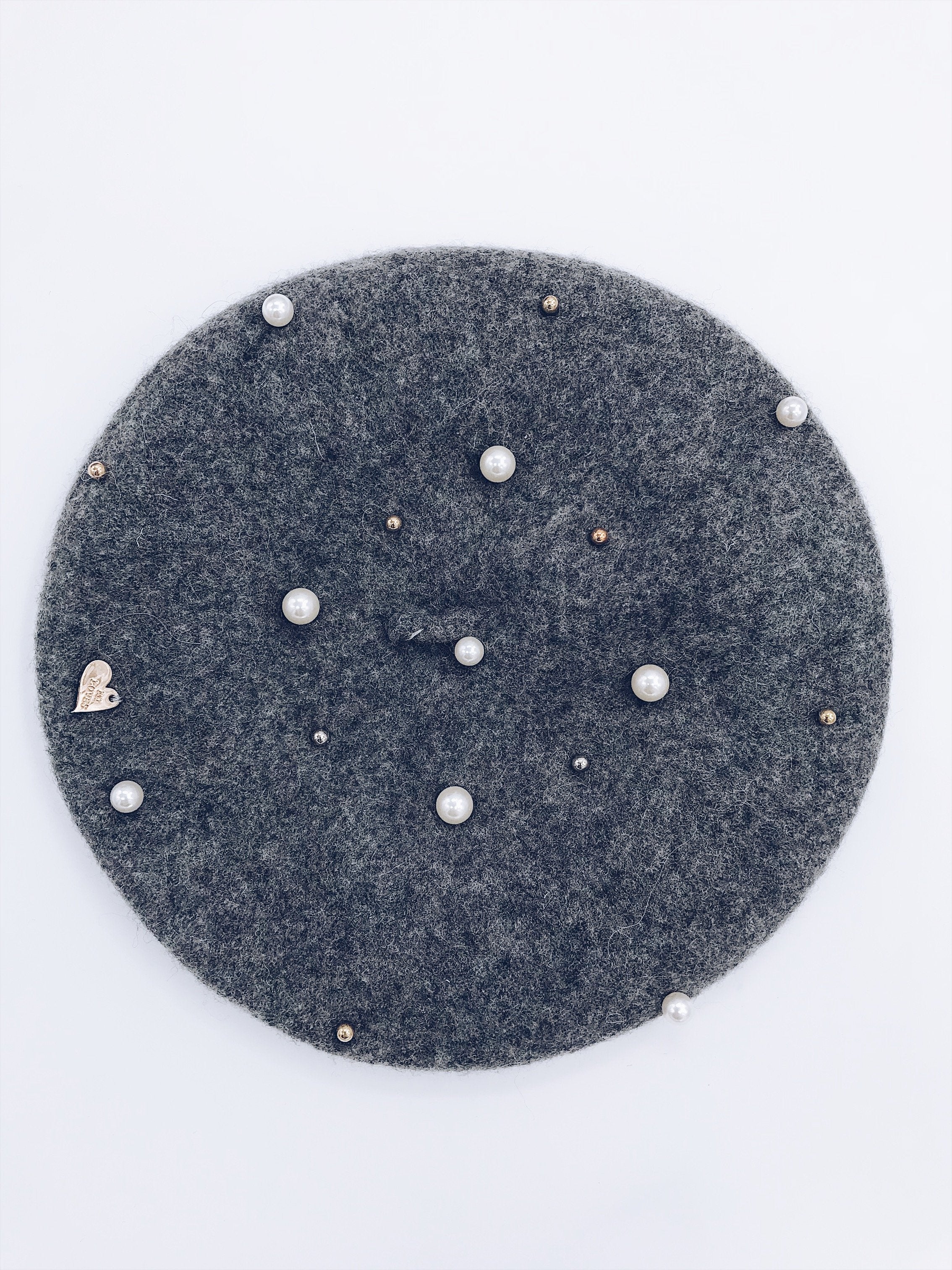 MI LOVES SIGNATURE BIG KIDS/Adults wool /pearls beret