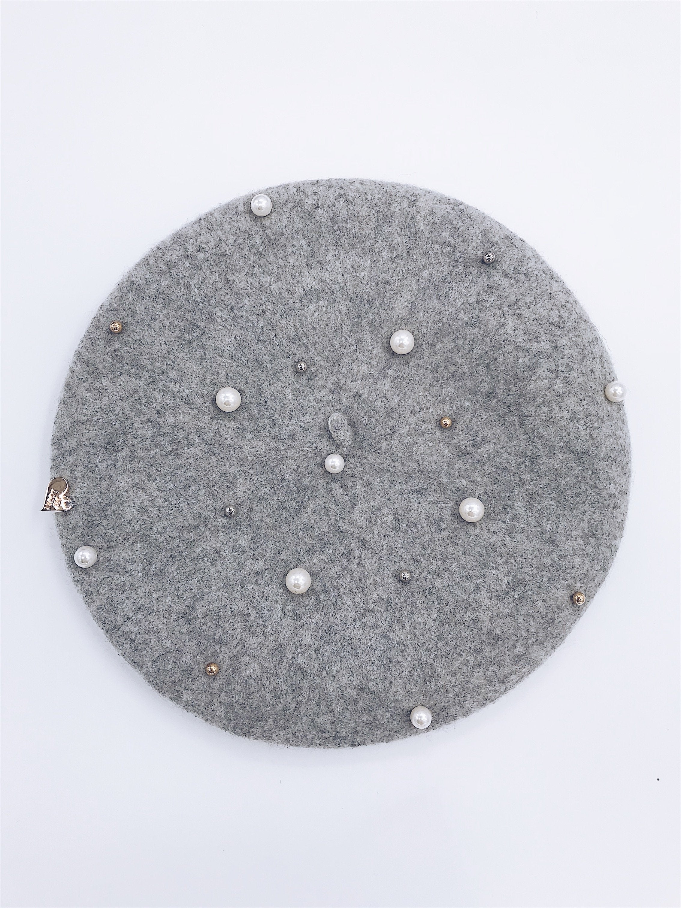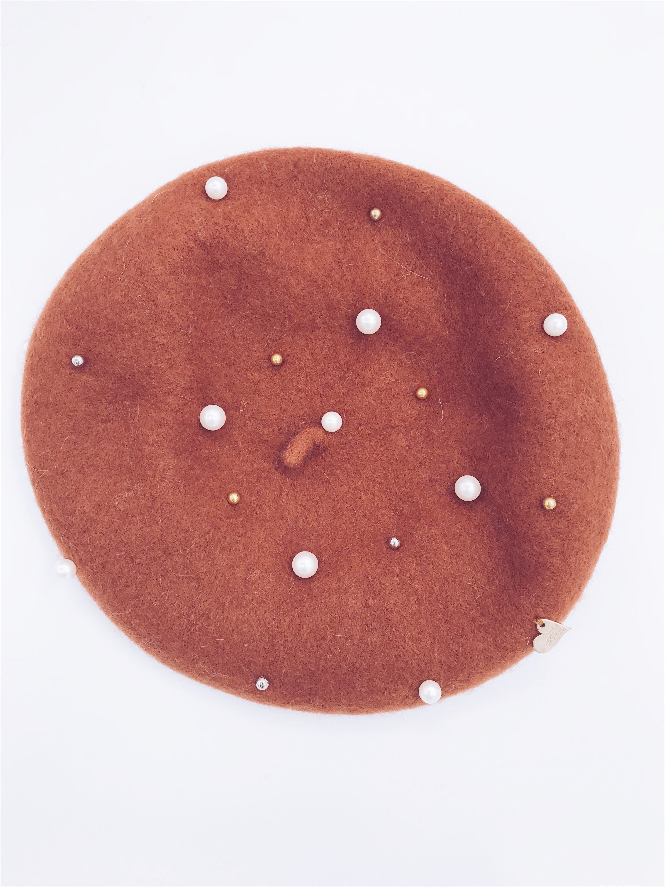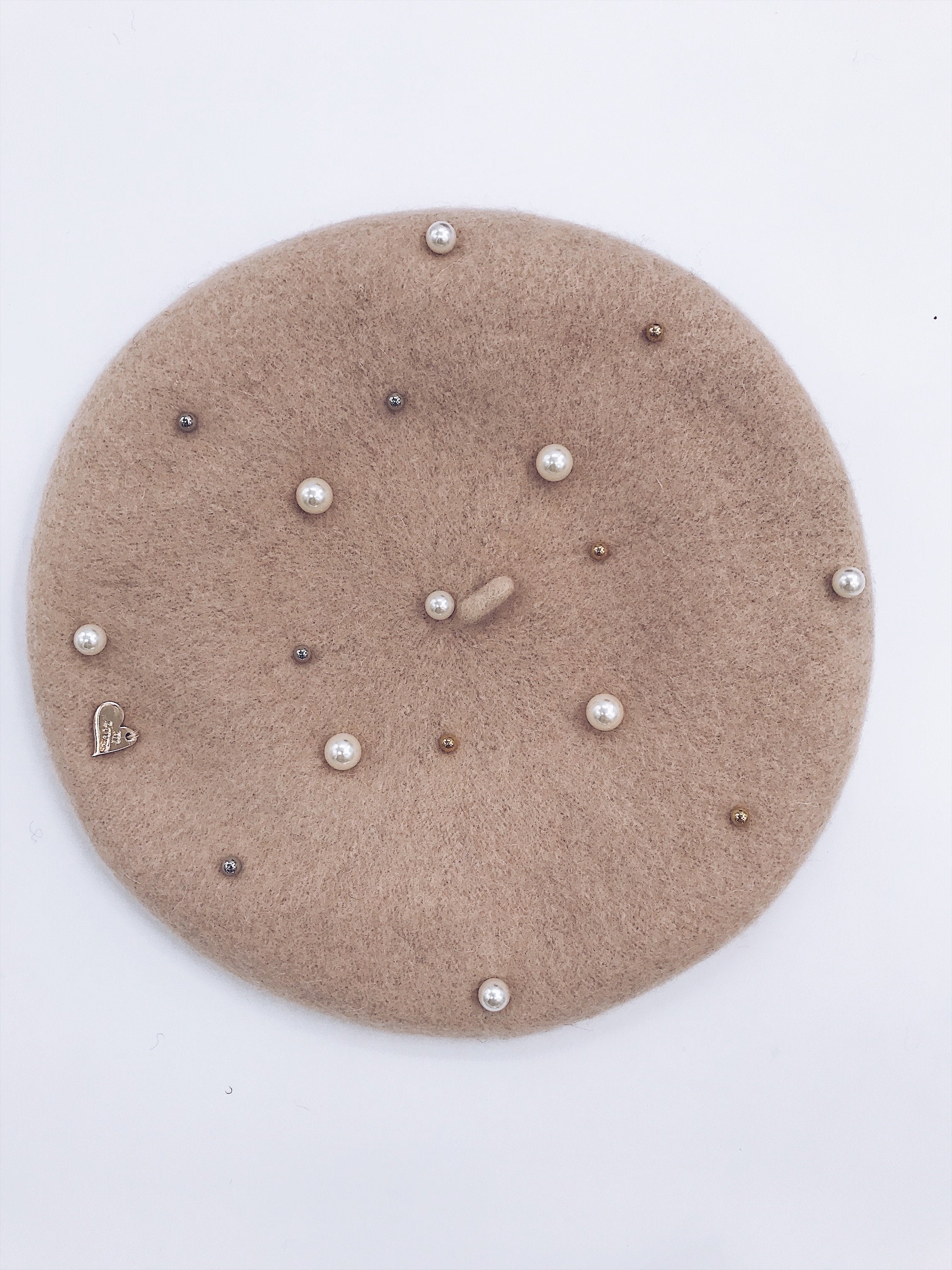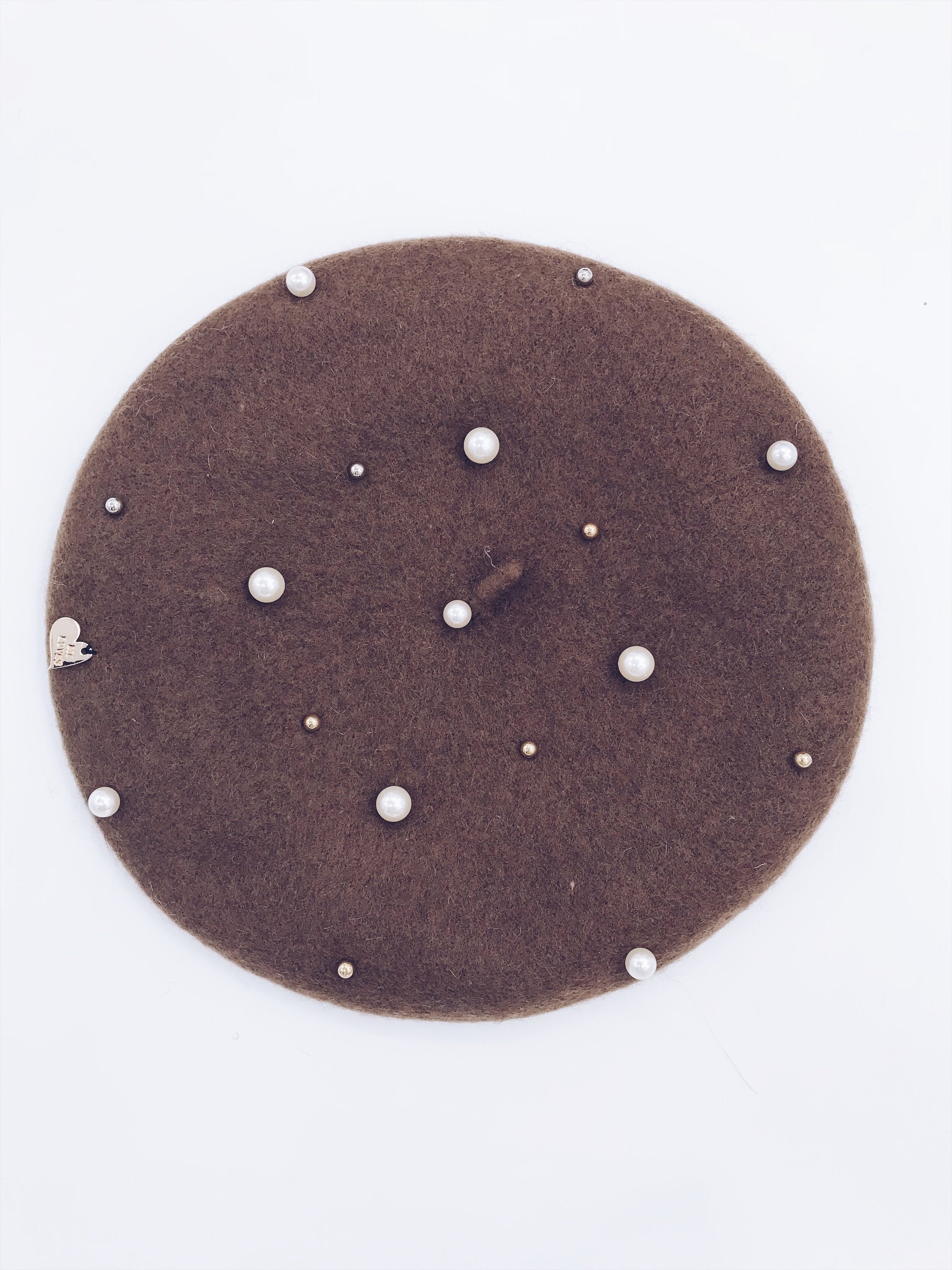 MI LOVES SIGNATURE BIG KIDS/Adults wool /pearls beret