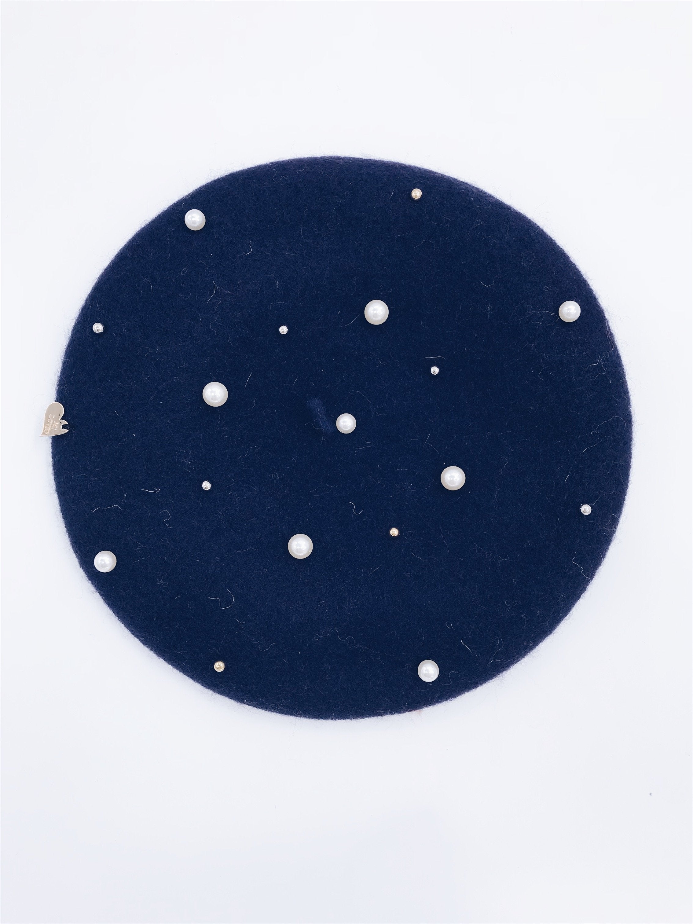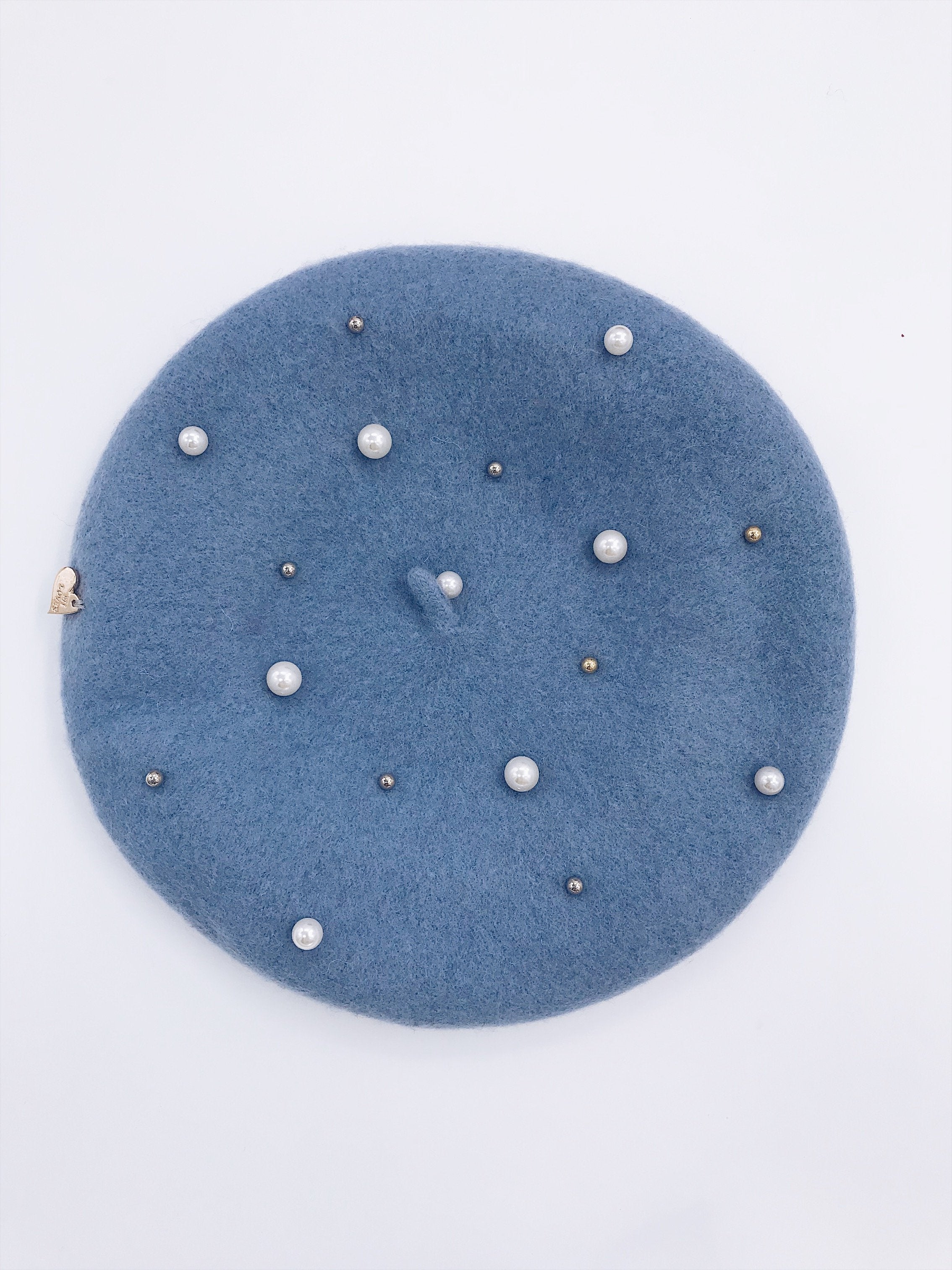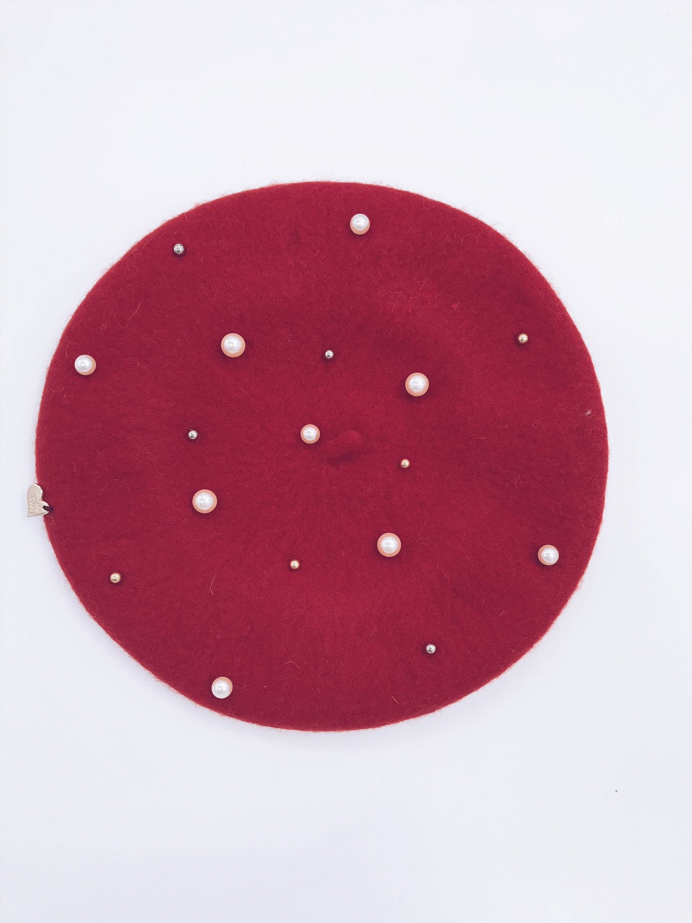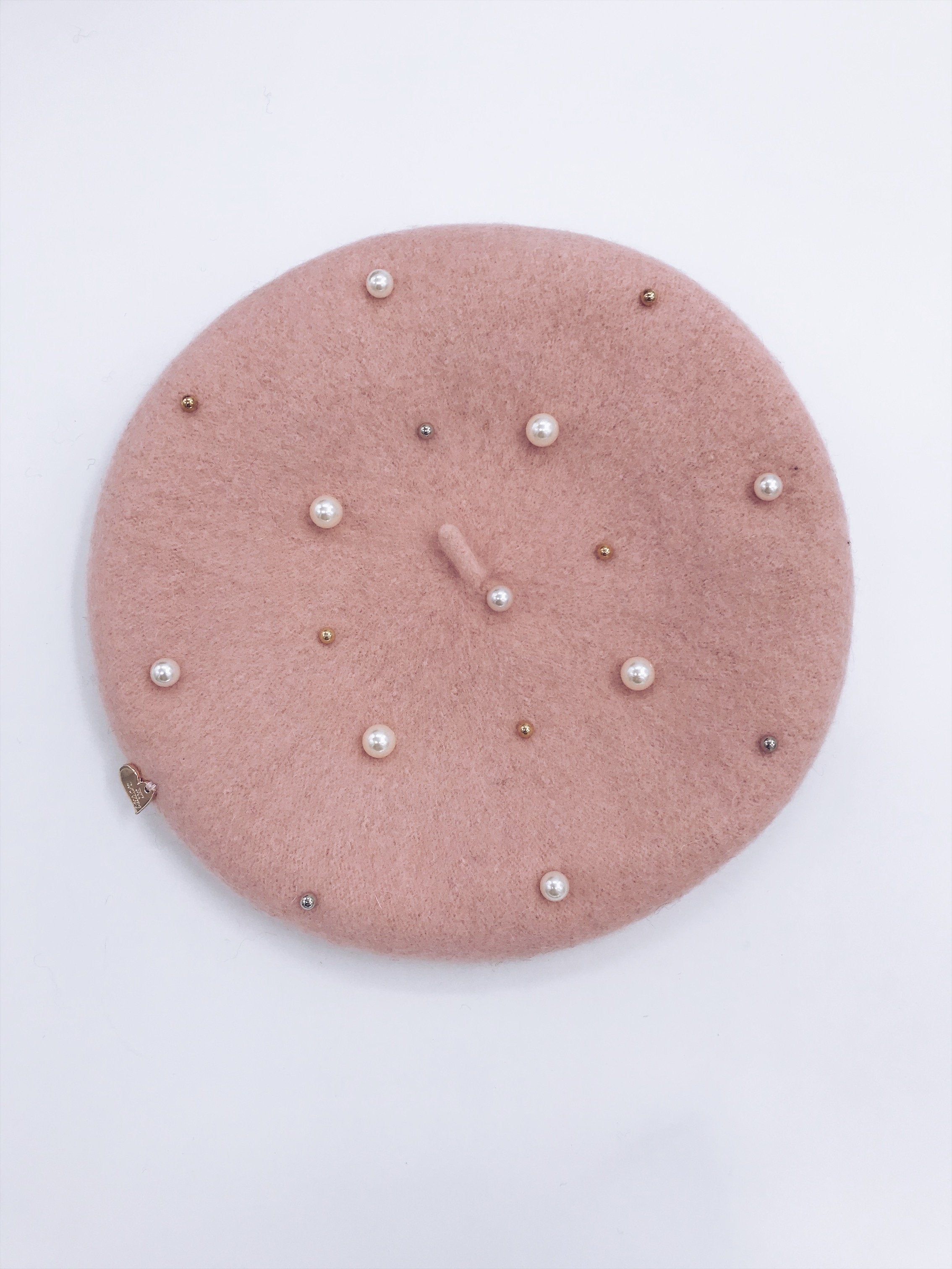 MI LOVES SIGNATURE BIG KIDS/Adults wool /pearls beret