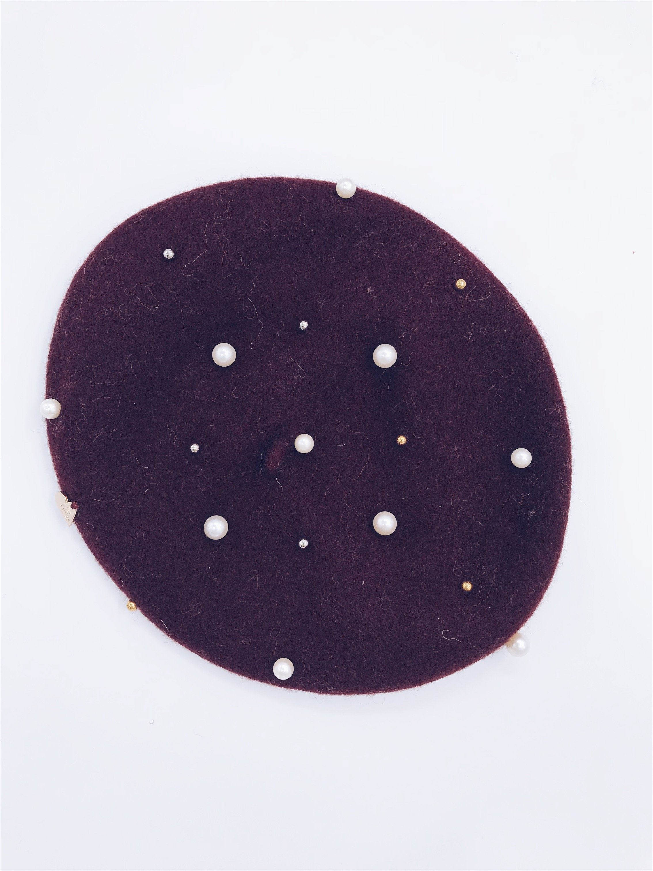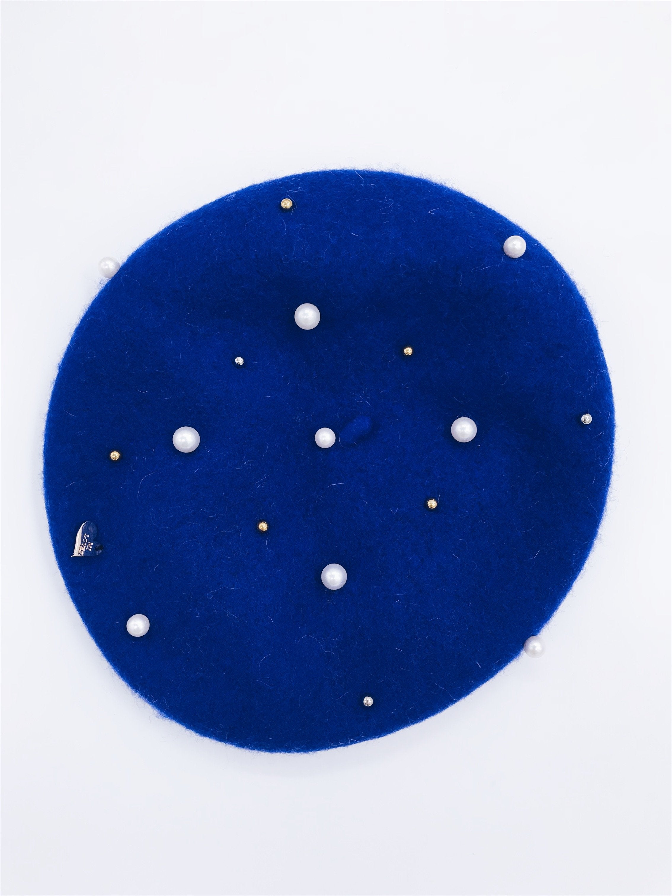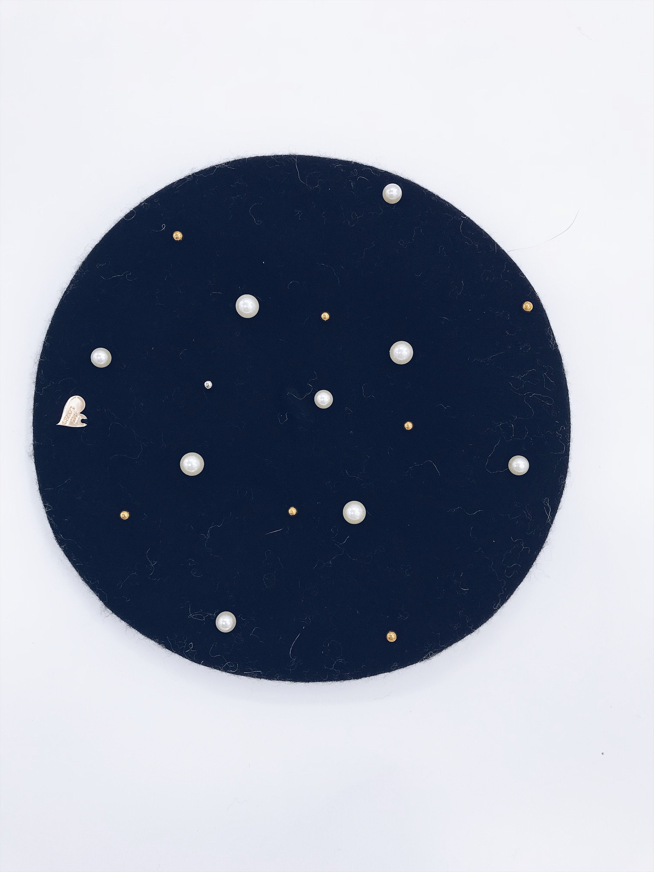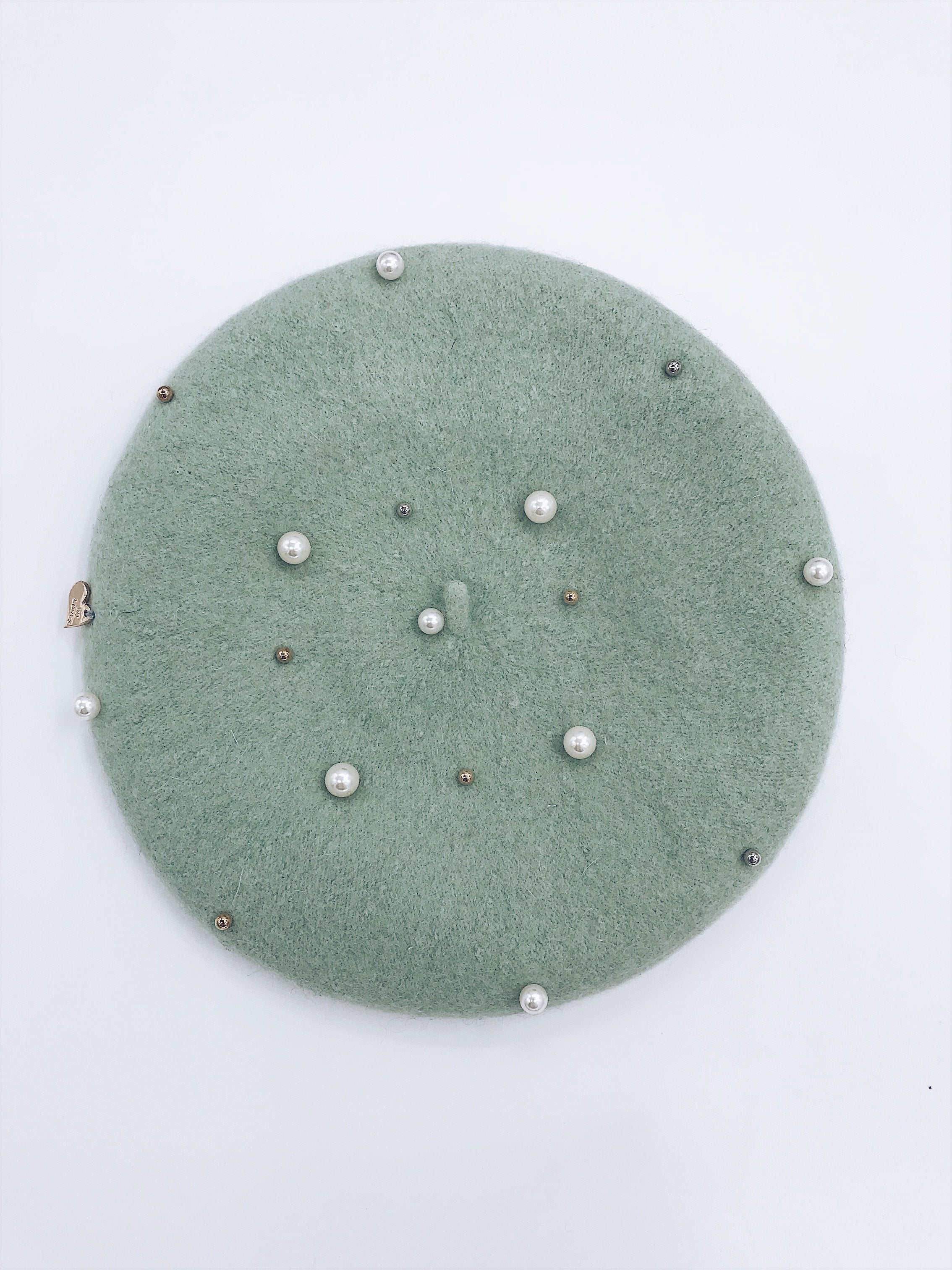 MI LOVES SIGNATURE BIG KIDS/Adults wool /pearls beret