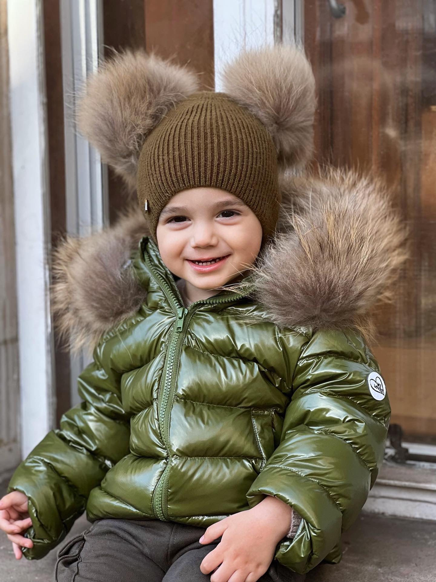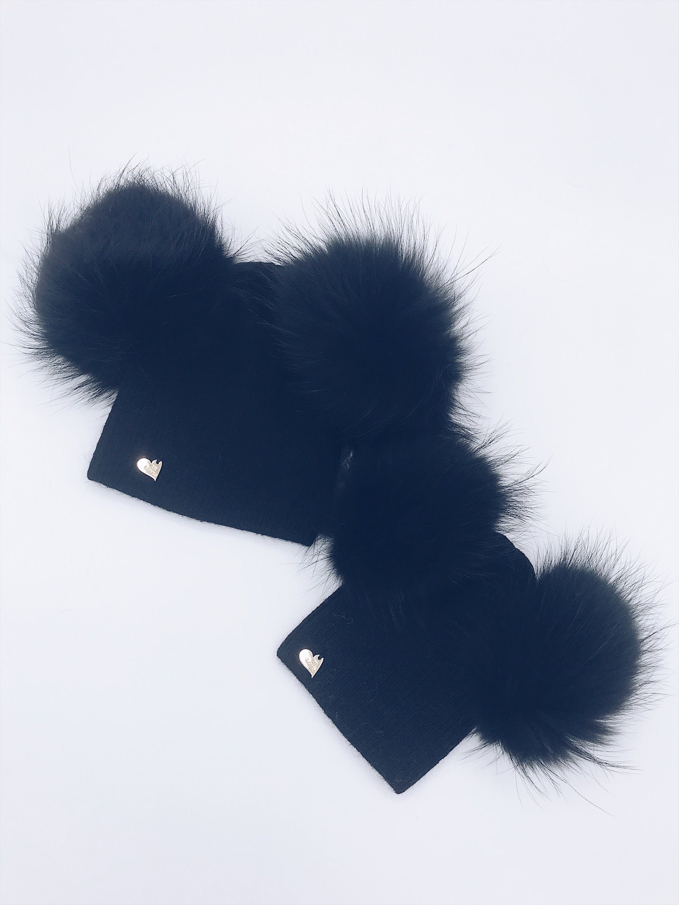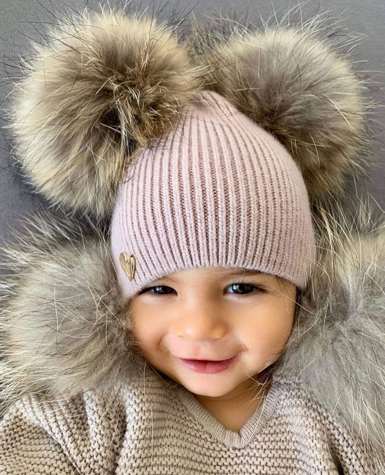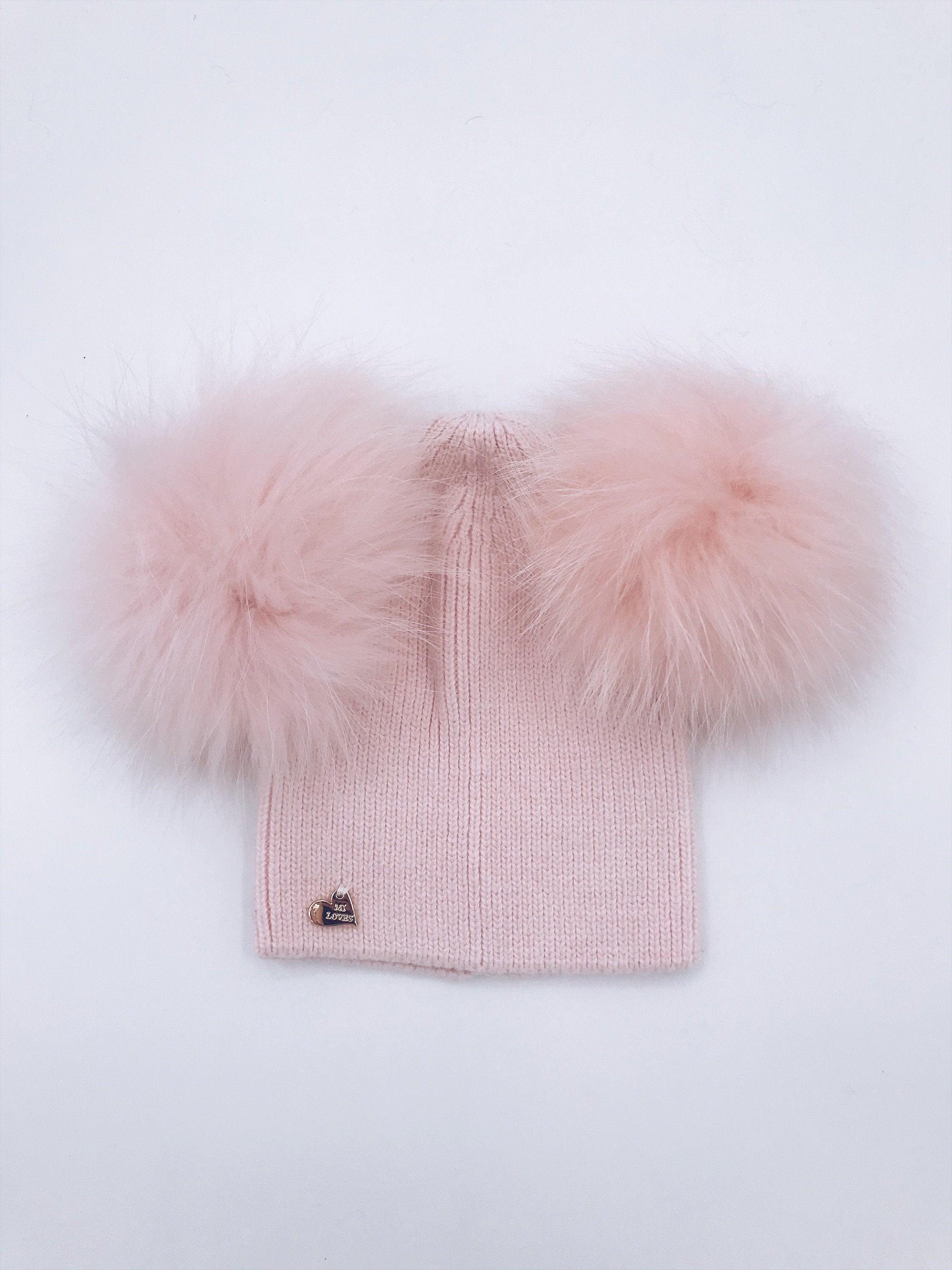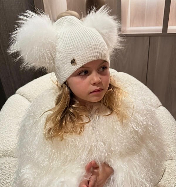 MI LOVES Signature Kids Angora Double pompom hat .Super Soft and warm ,perfect for winter days.