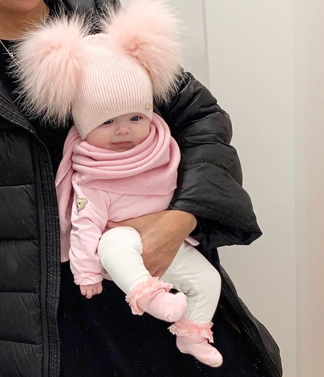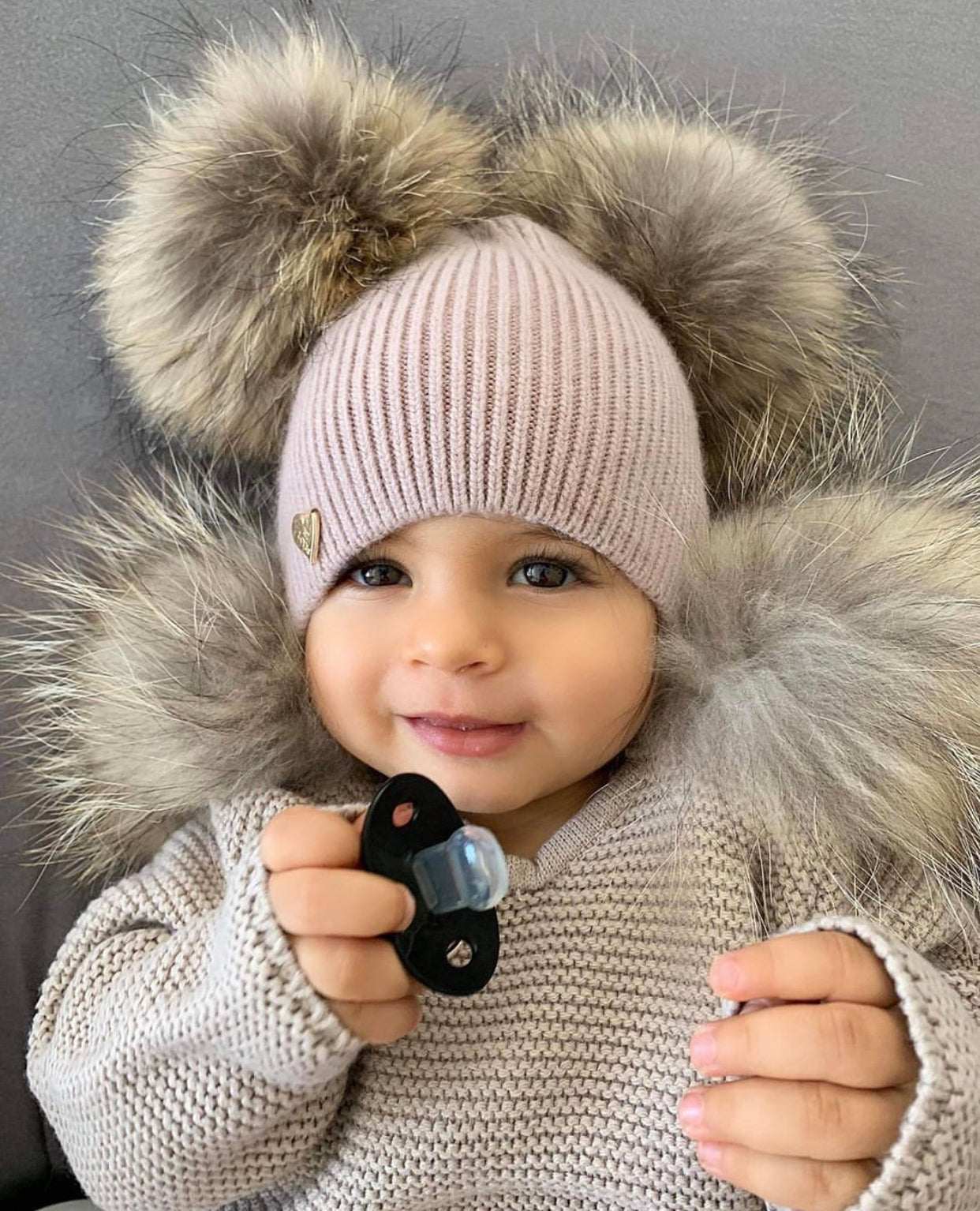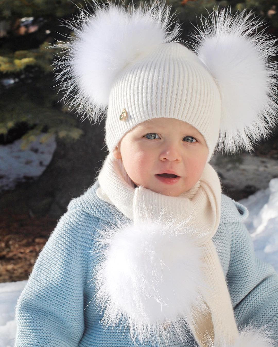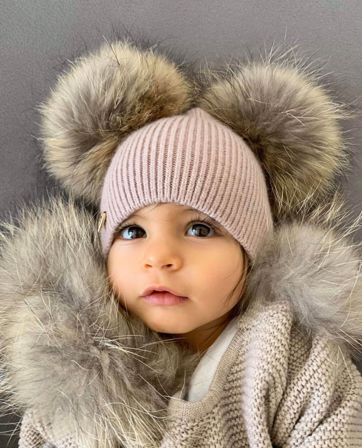 MI LOVES Signature Kids Angora Double pompom hat .Super Soft and warm ,perfect for winter days.