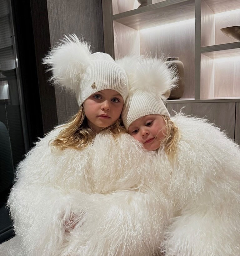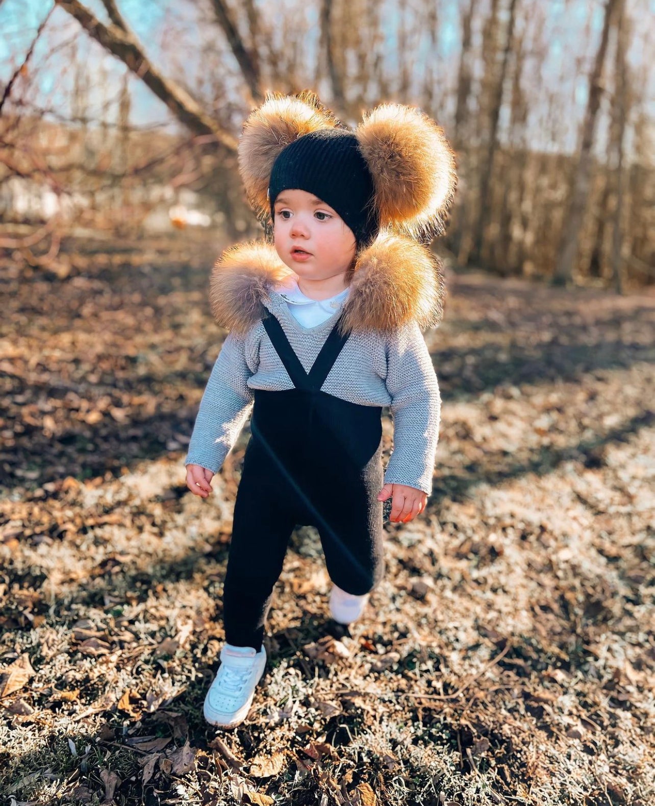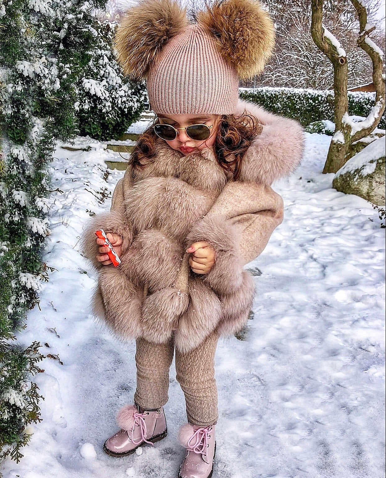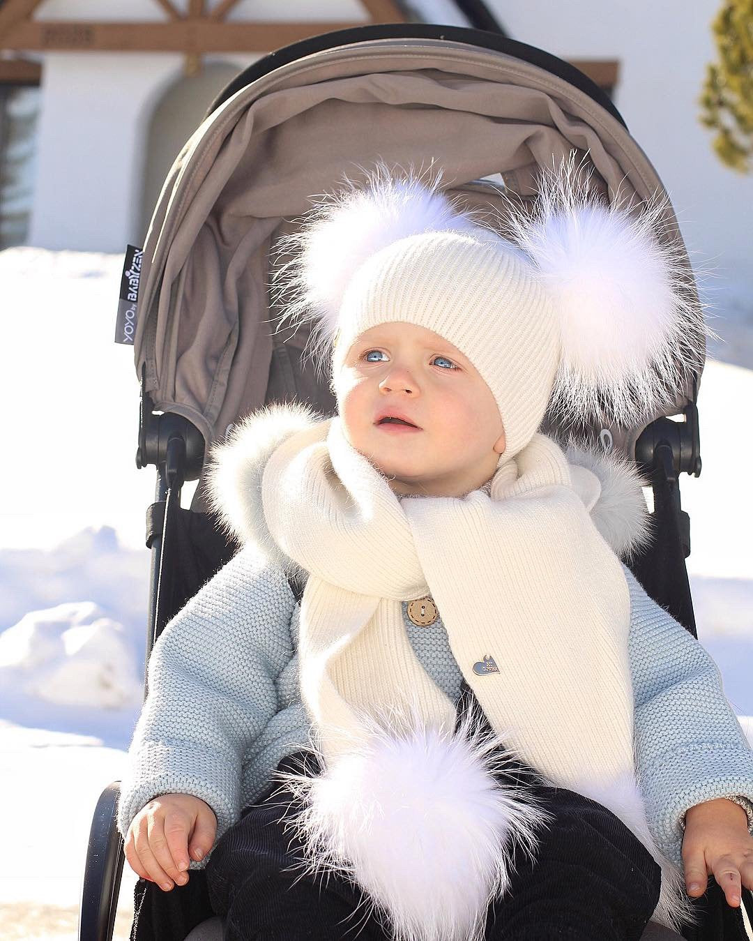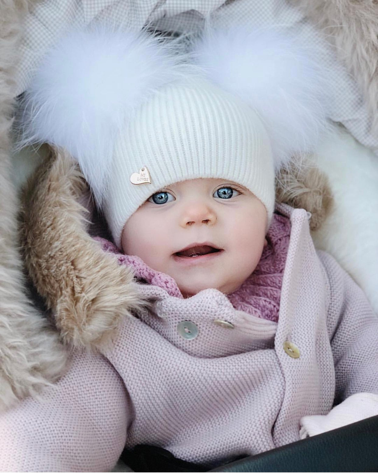 MI LOVES Signature Kids Angora Double pompom hat .Super Soft and warm ,perfect for winter days.