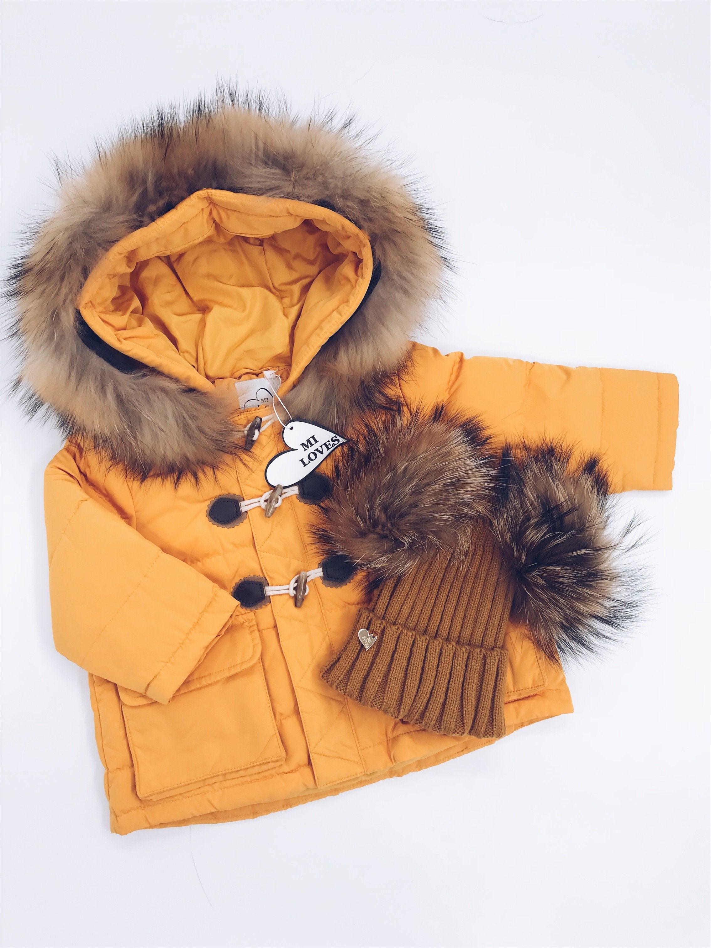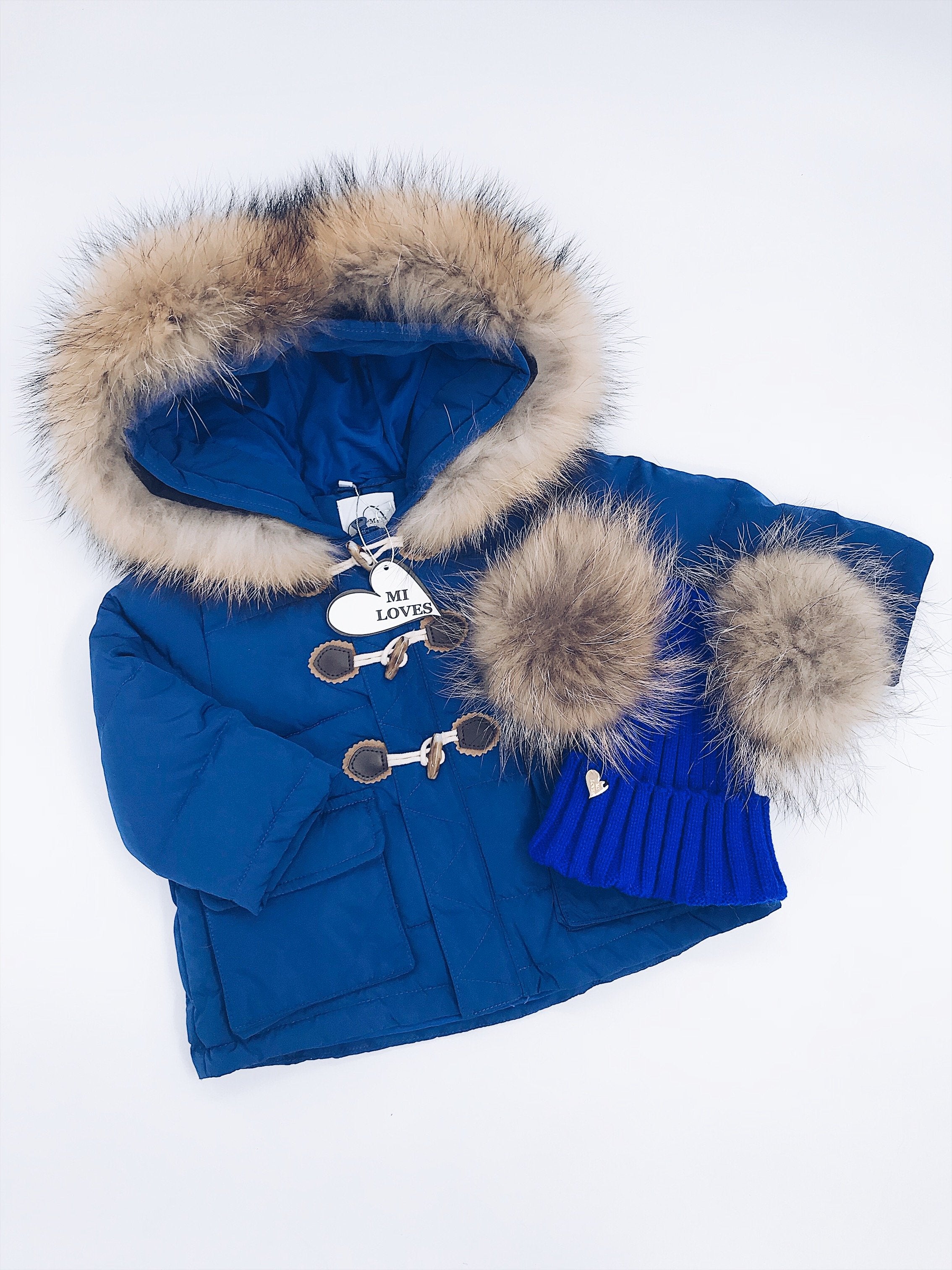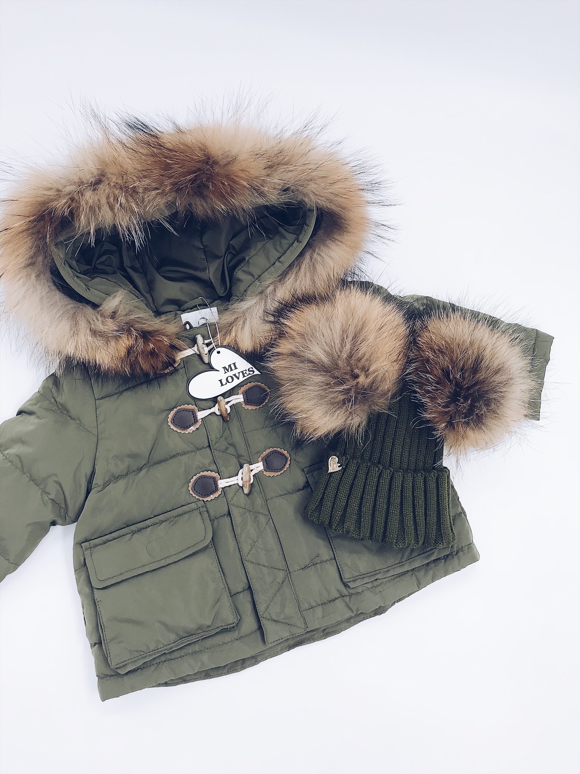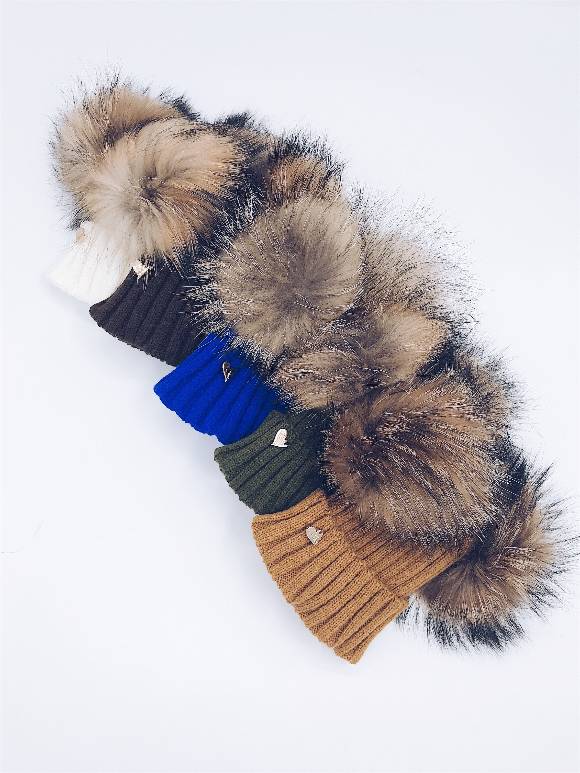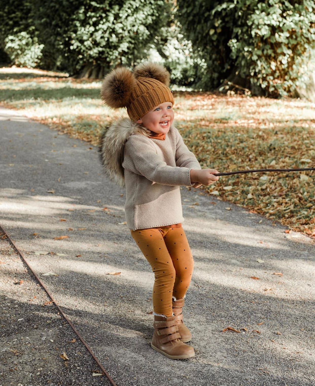 Mi Loves Signature Double pompom hat with brown/Natural pompoms