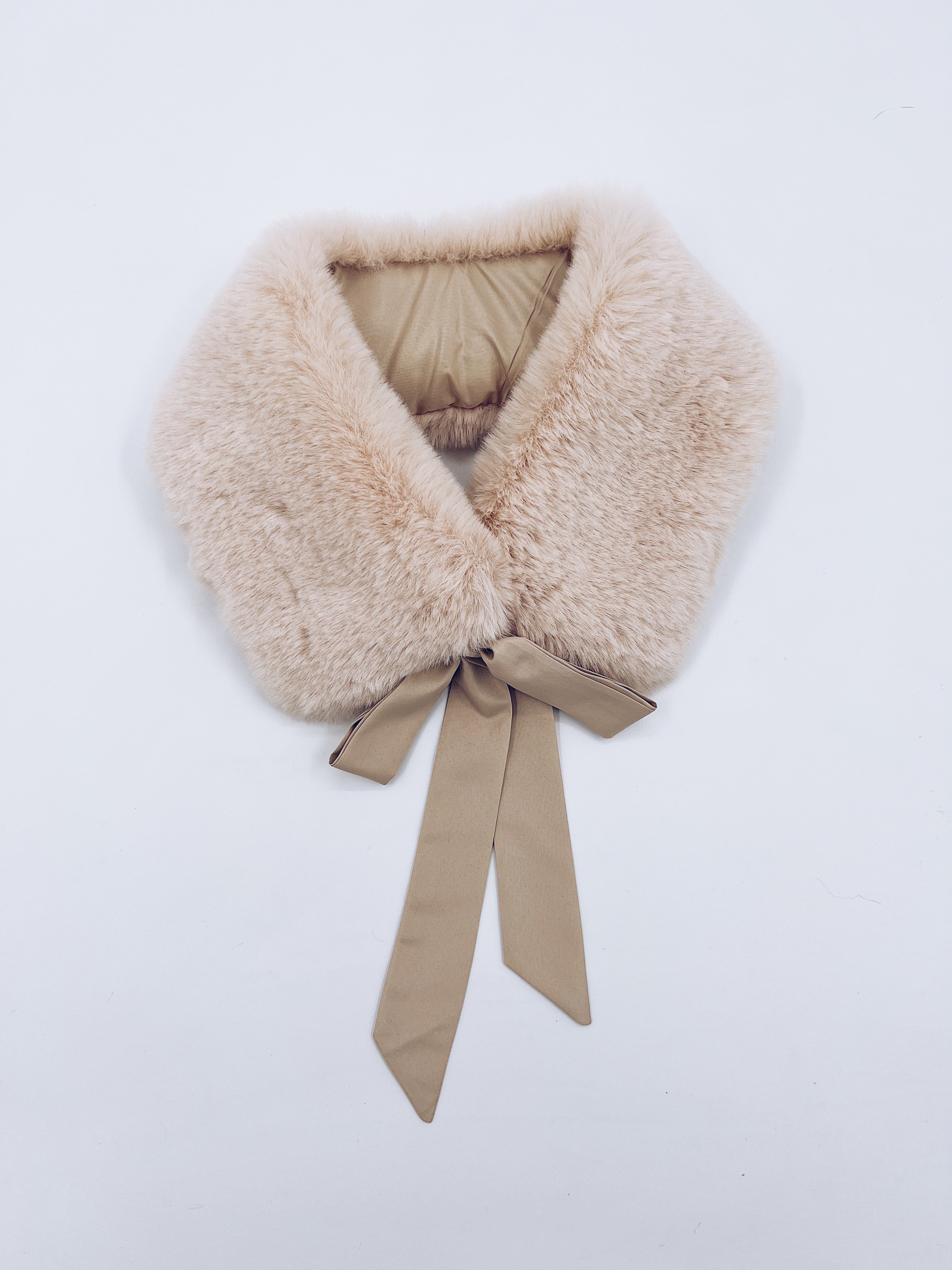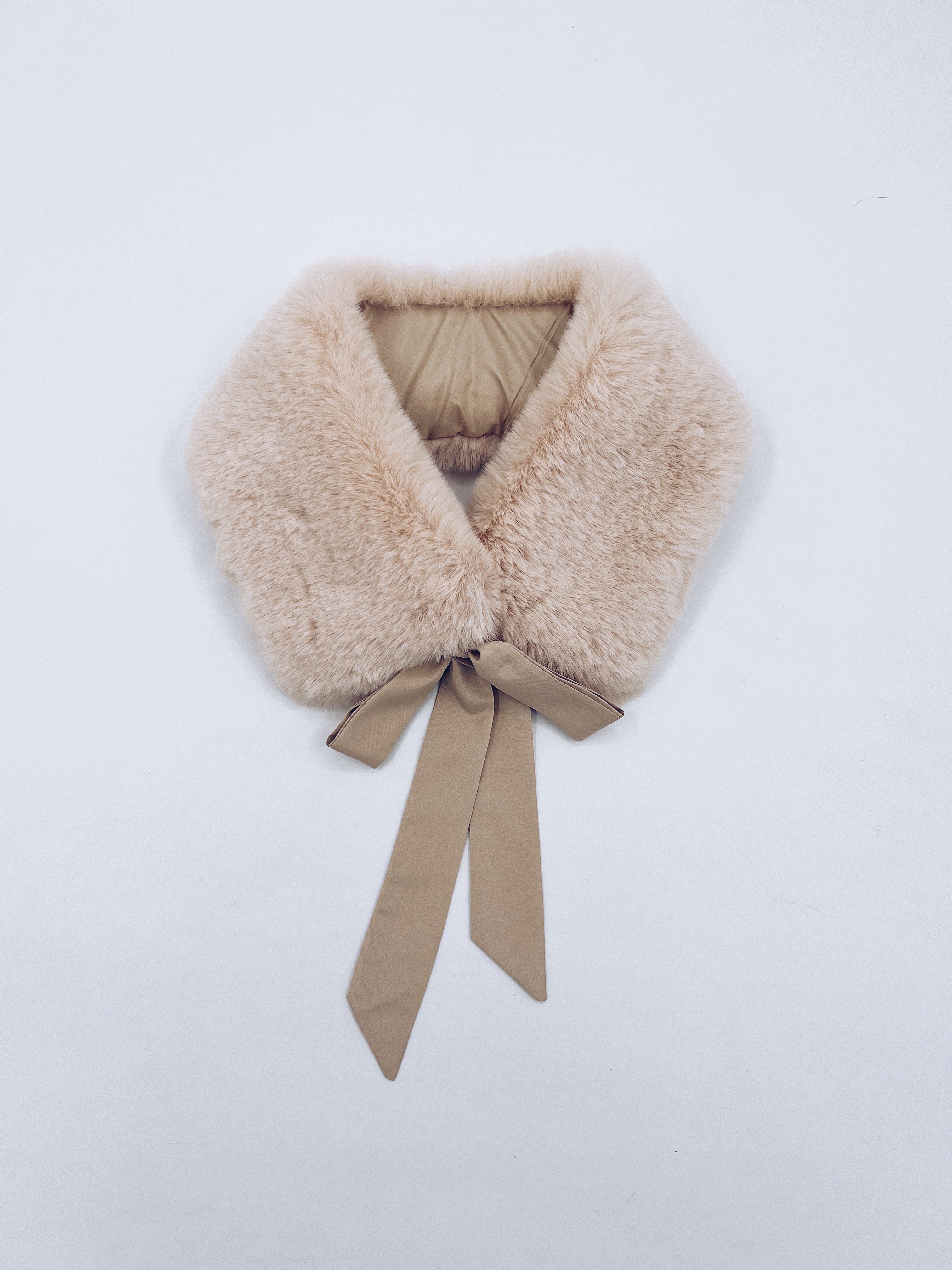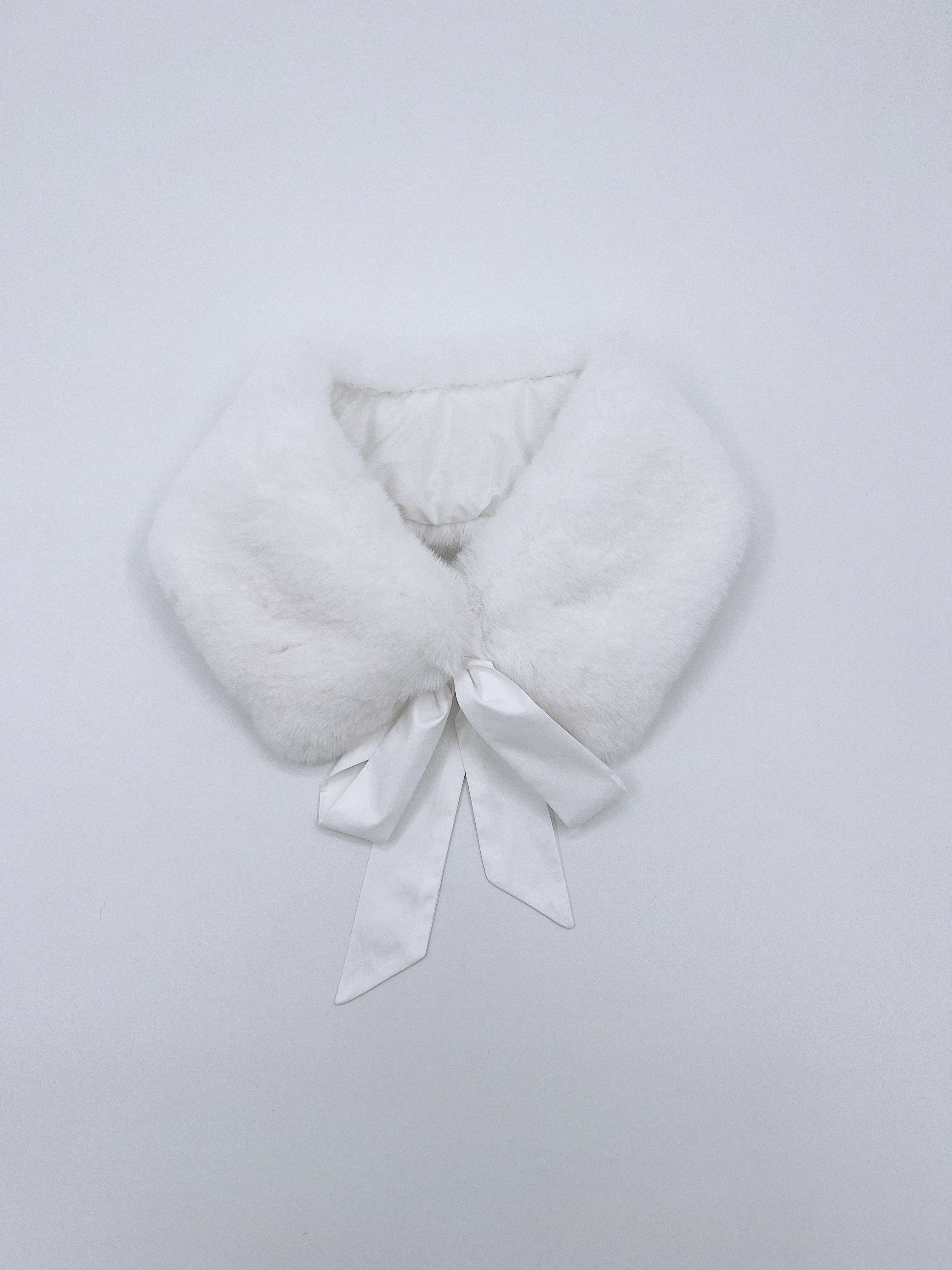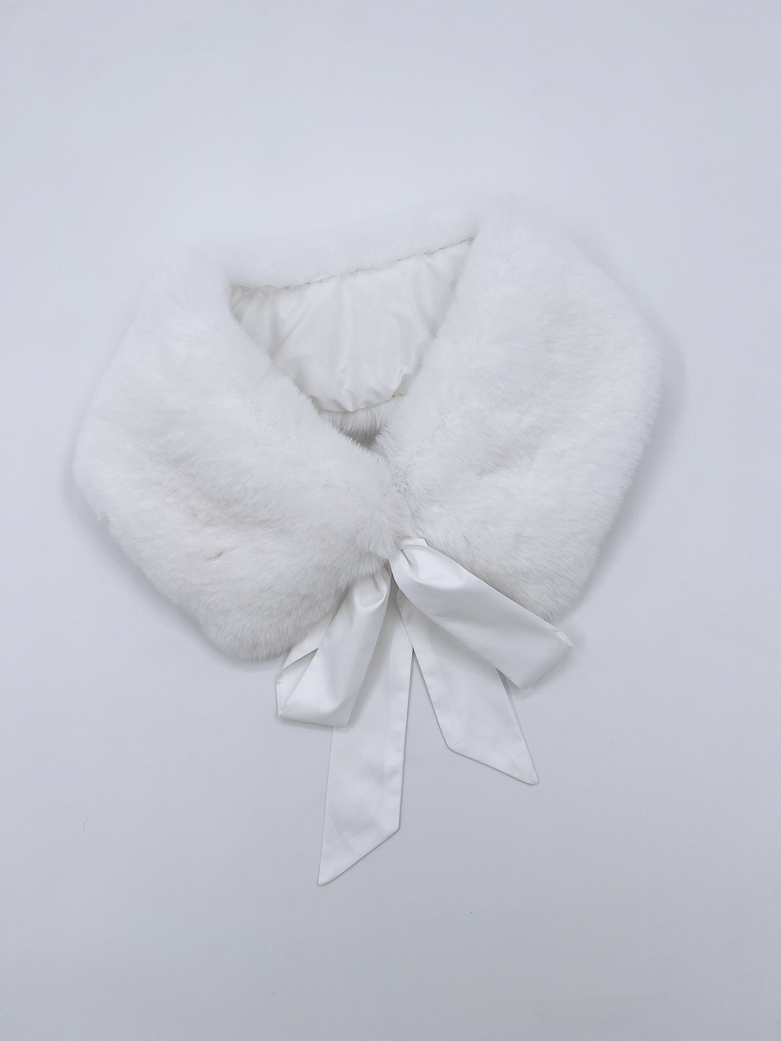 MI LOVES SIGNATURE Luxurious Synthetic fur collar with atlas bow .