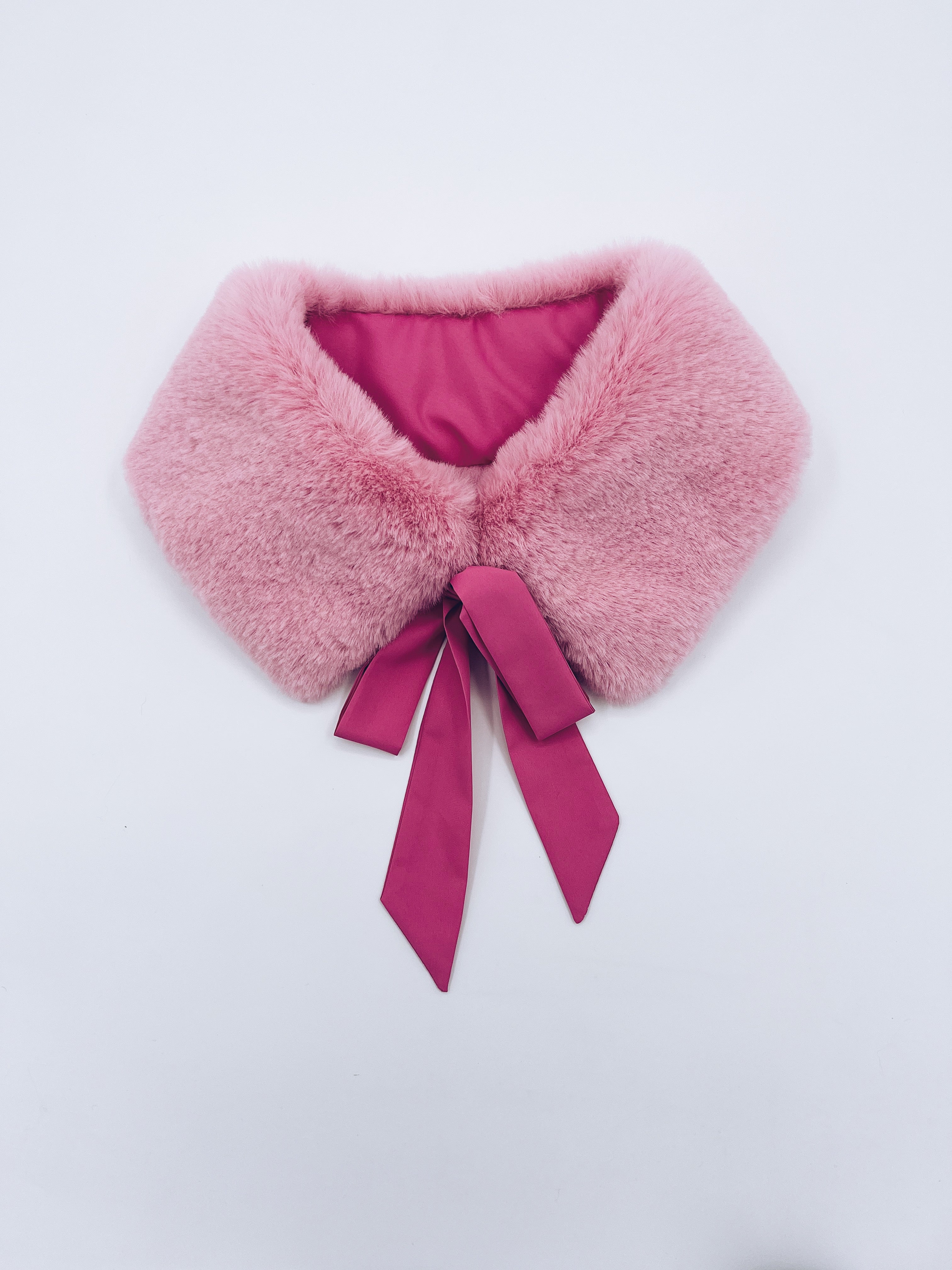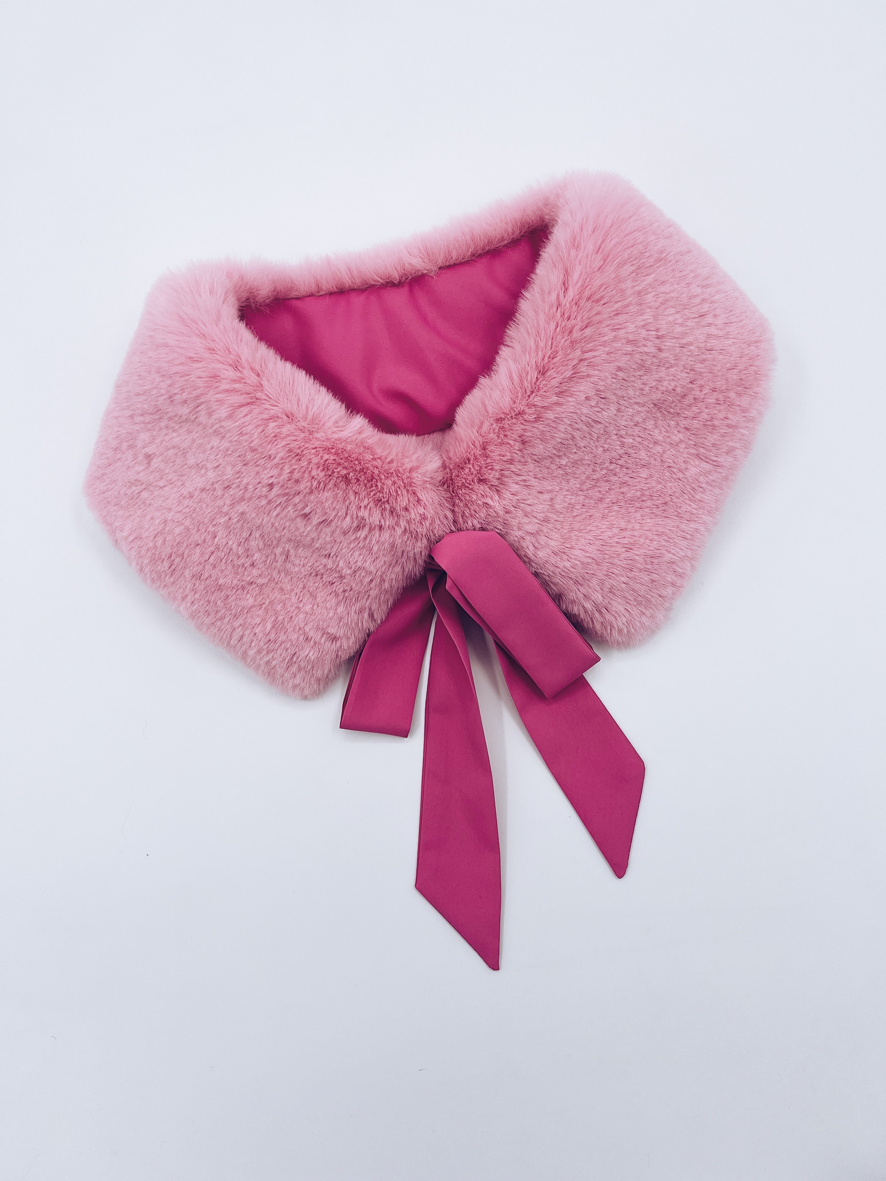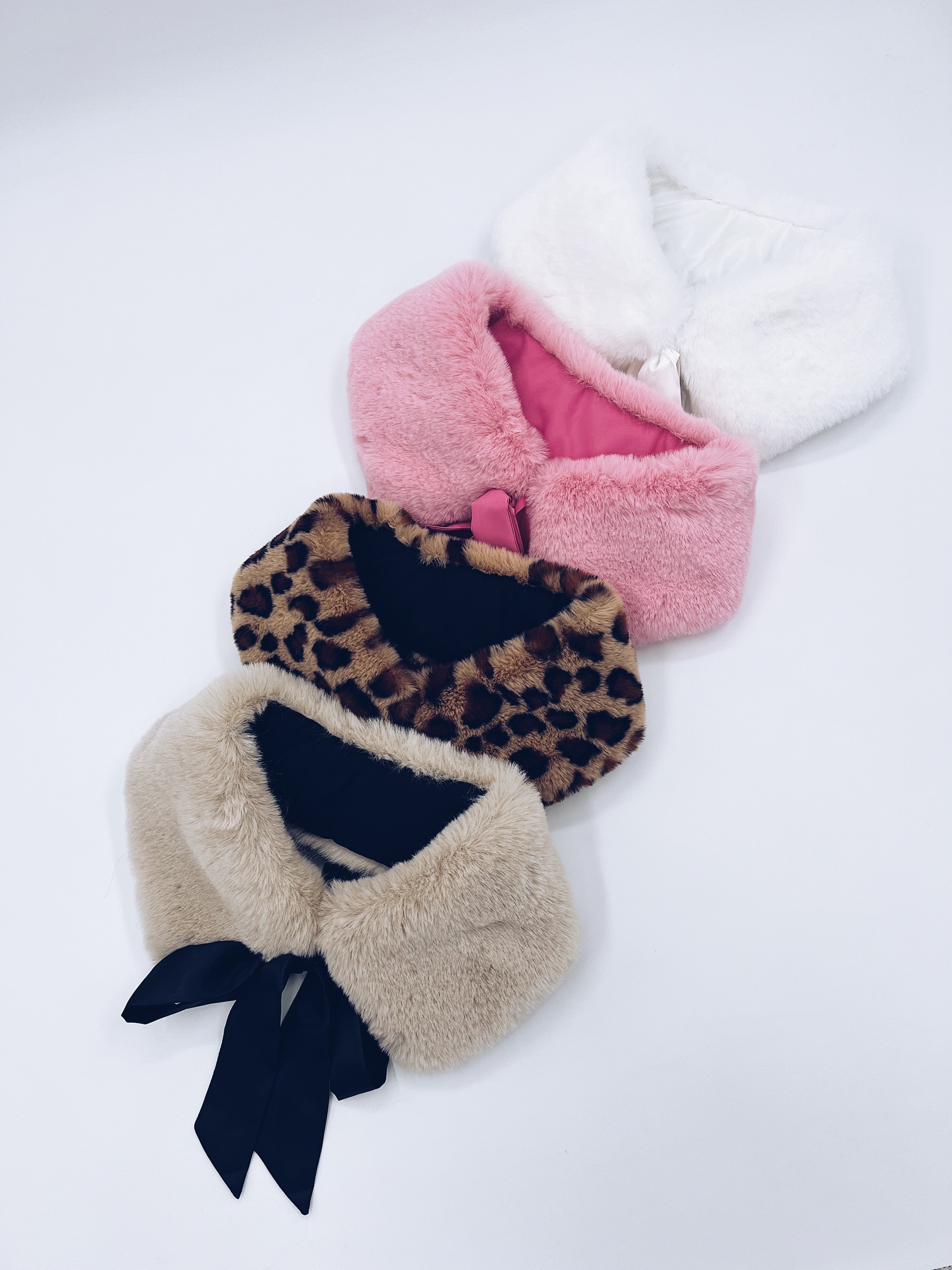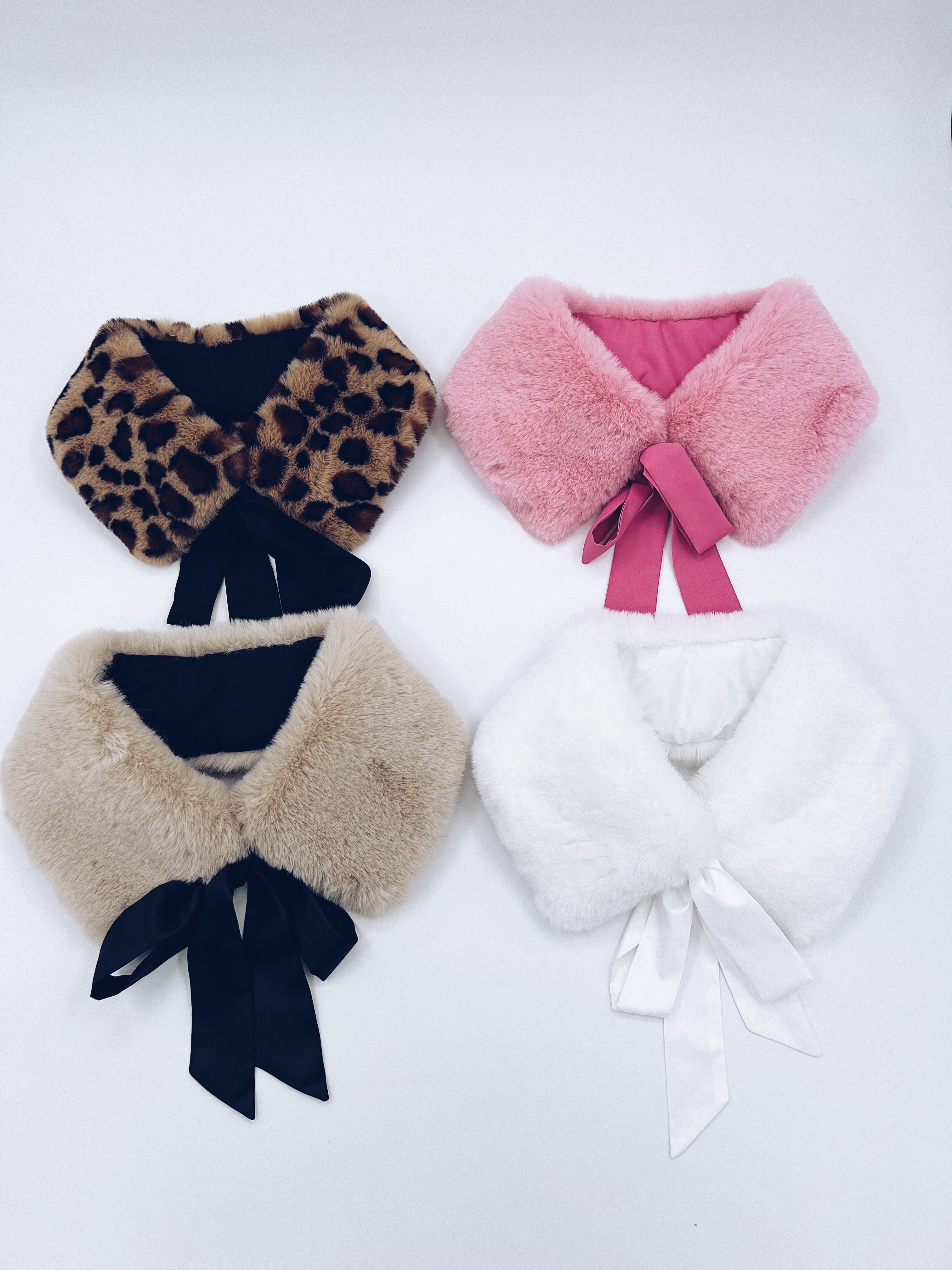 MI LOVES SIGNATURE Luxurious Synthetic fur collar with atlas bow .