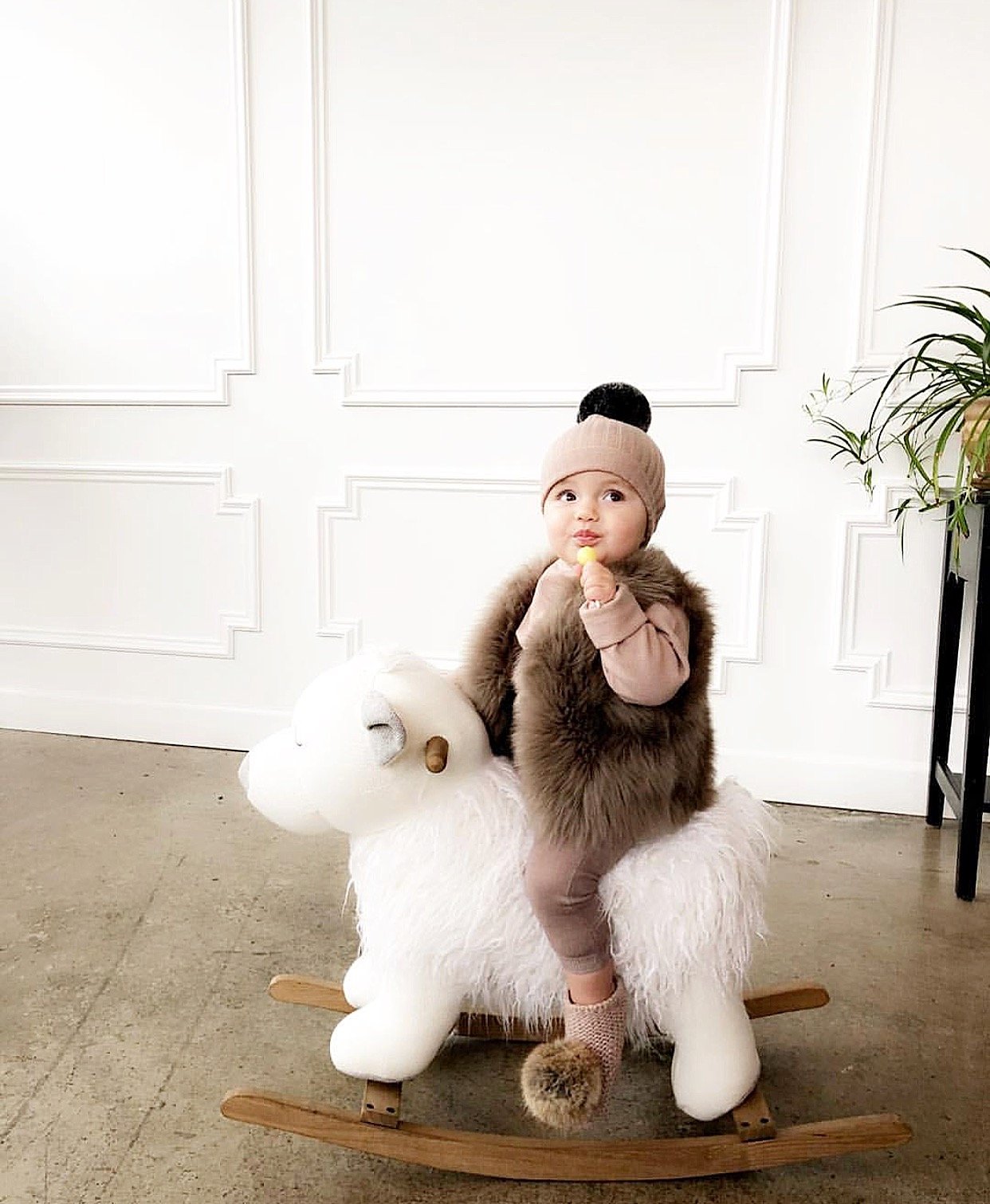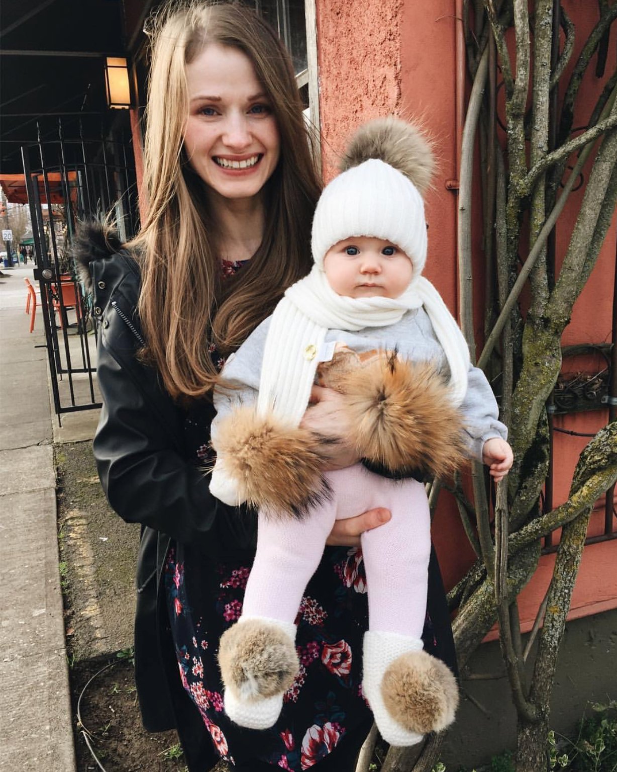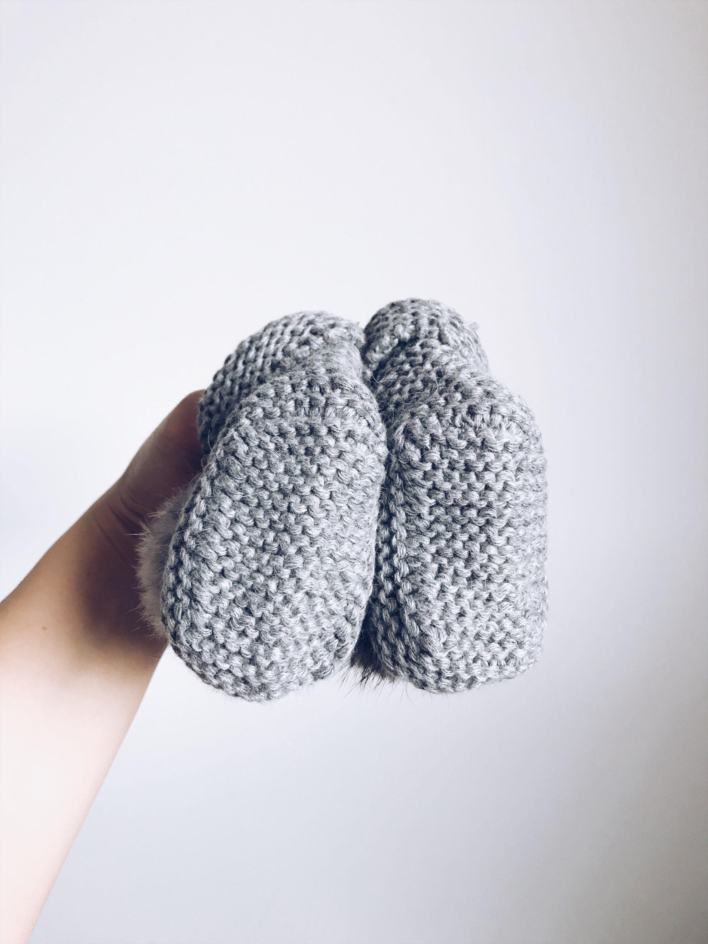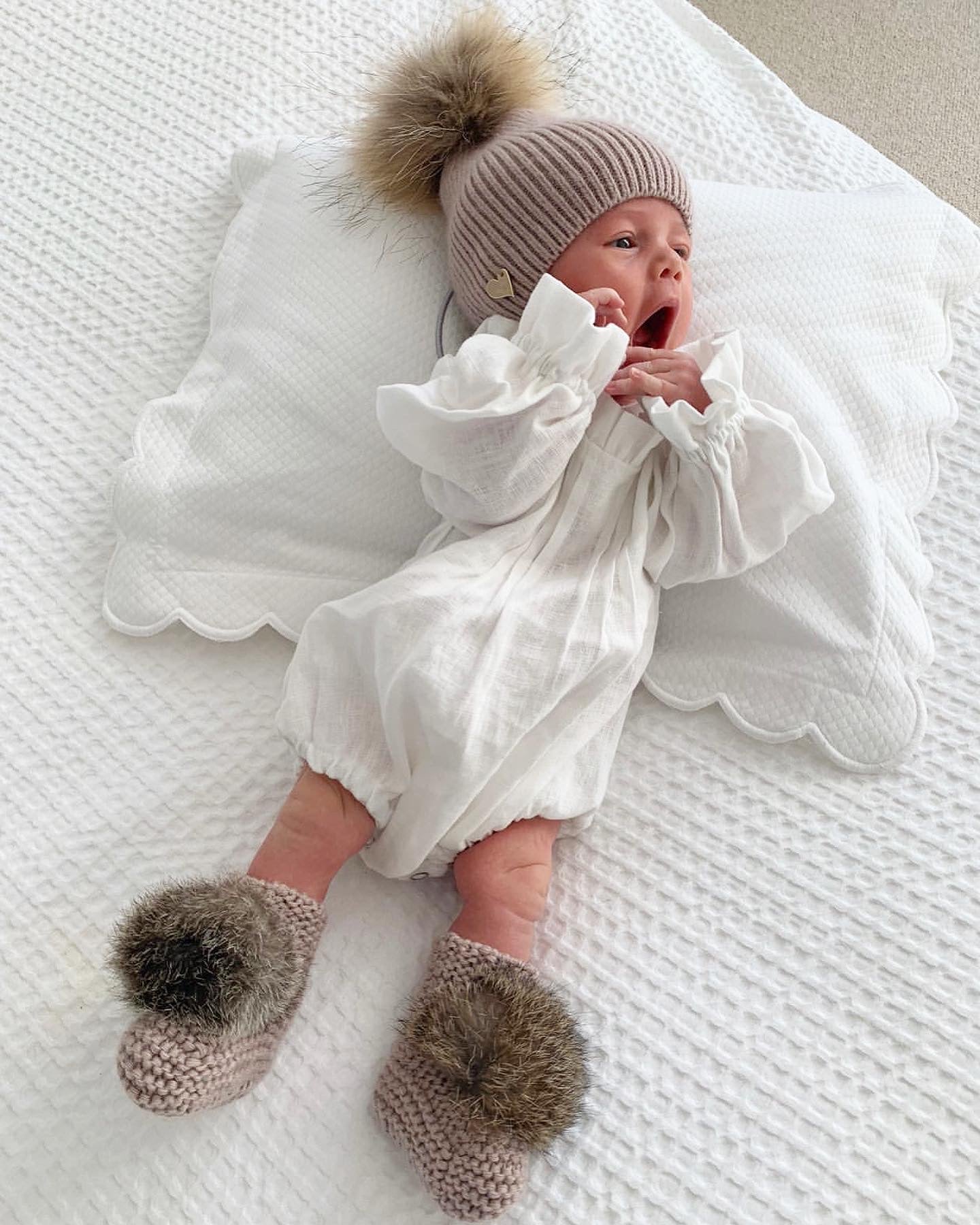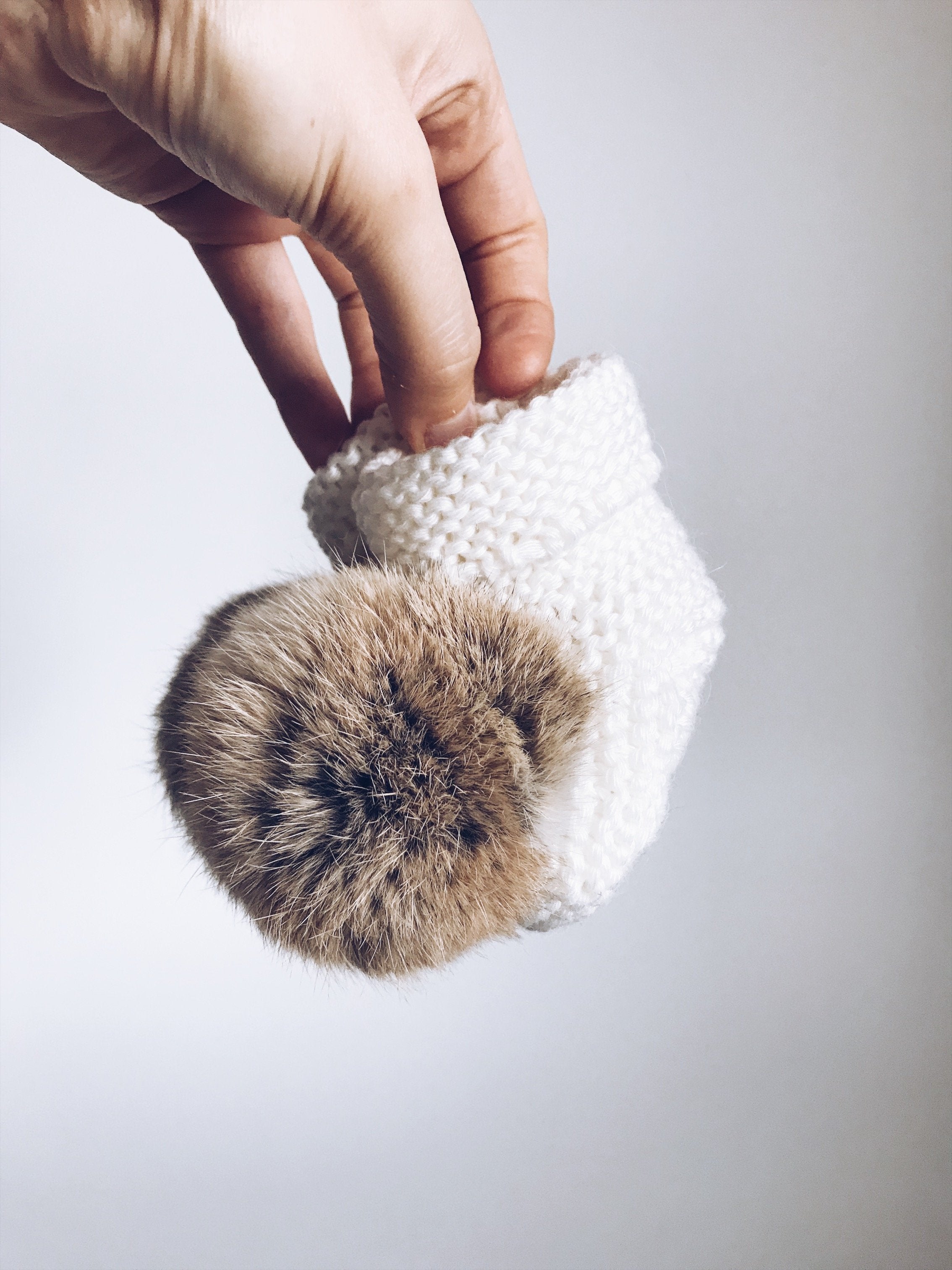 MILOVES Signature Hand Knitted baby booties with rabbit fur pompom