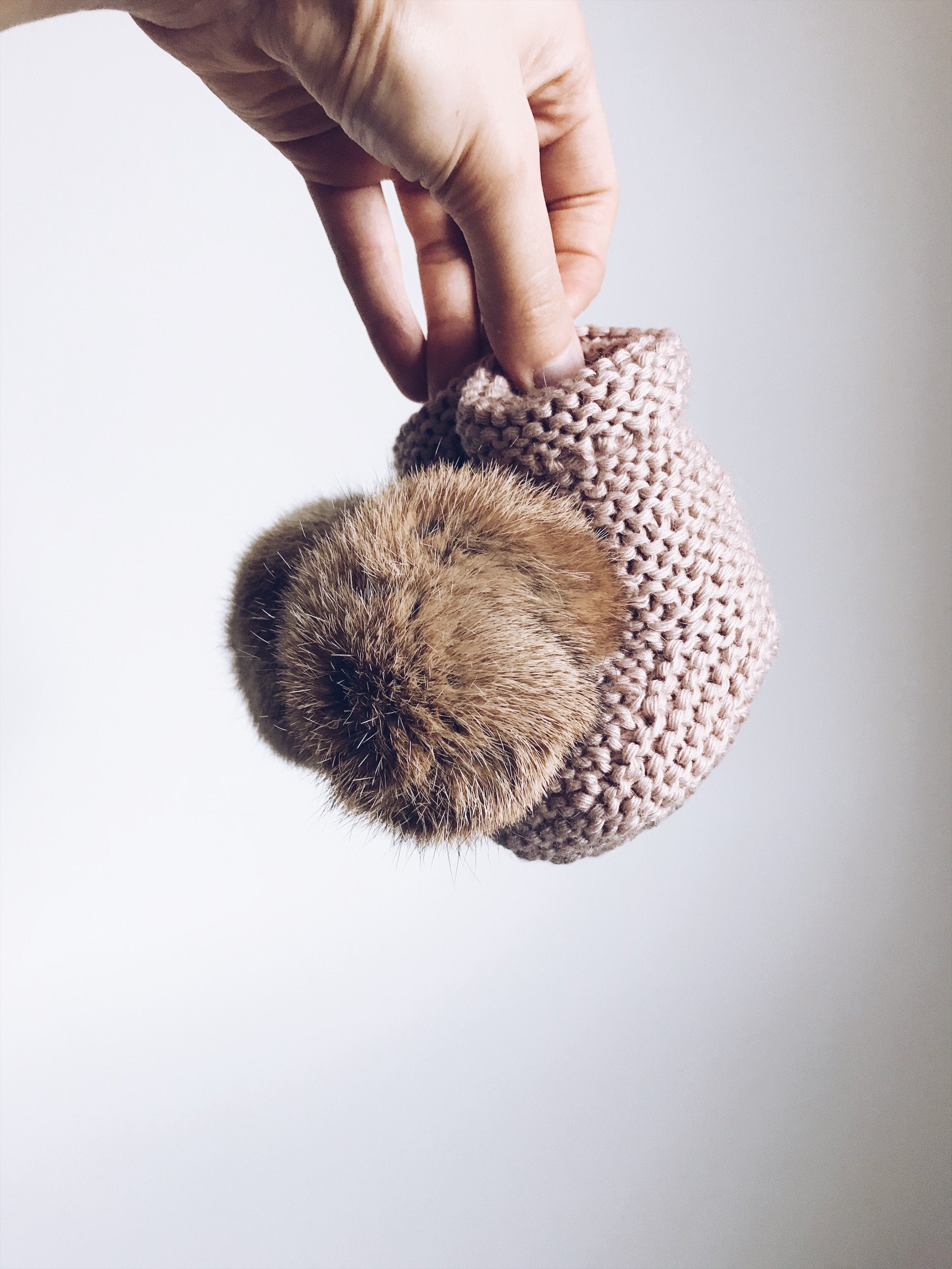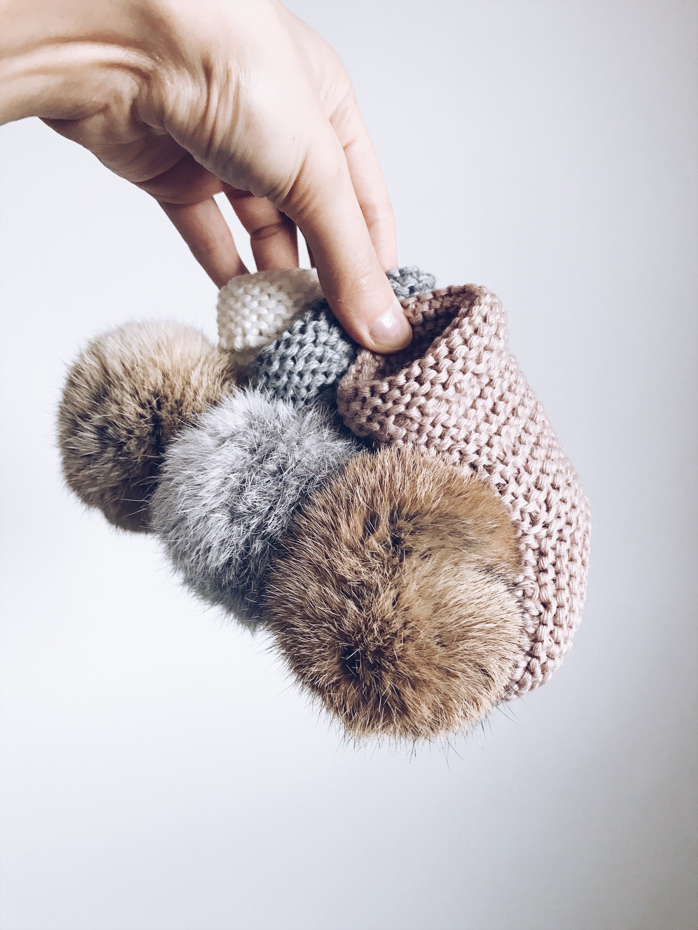 Made from Cotton-Wool blend yarn,rabbit fur pompom.