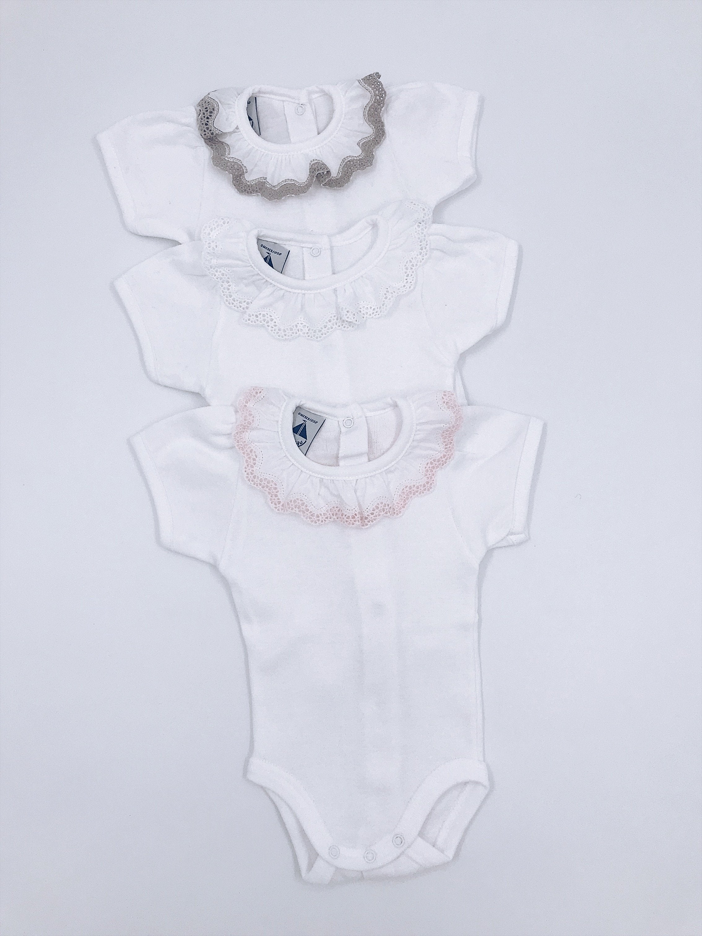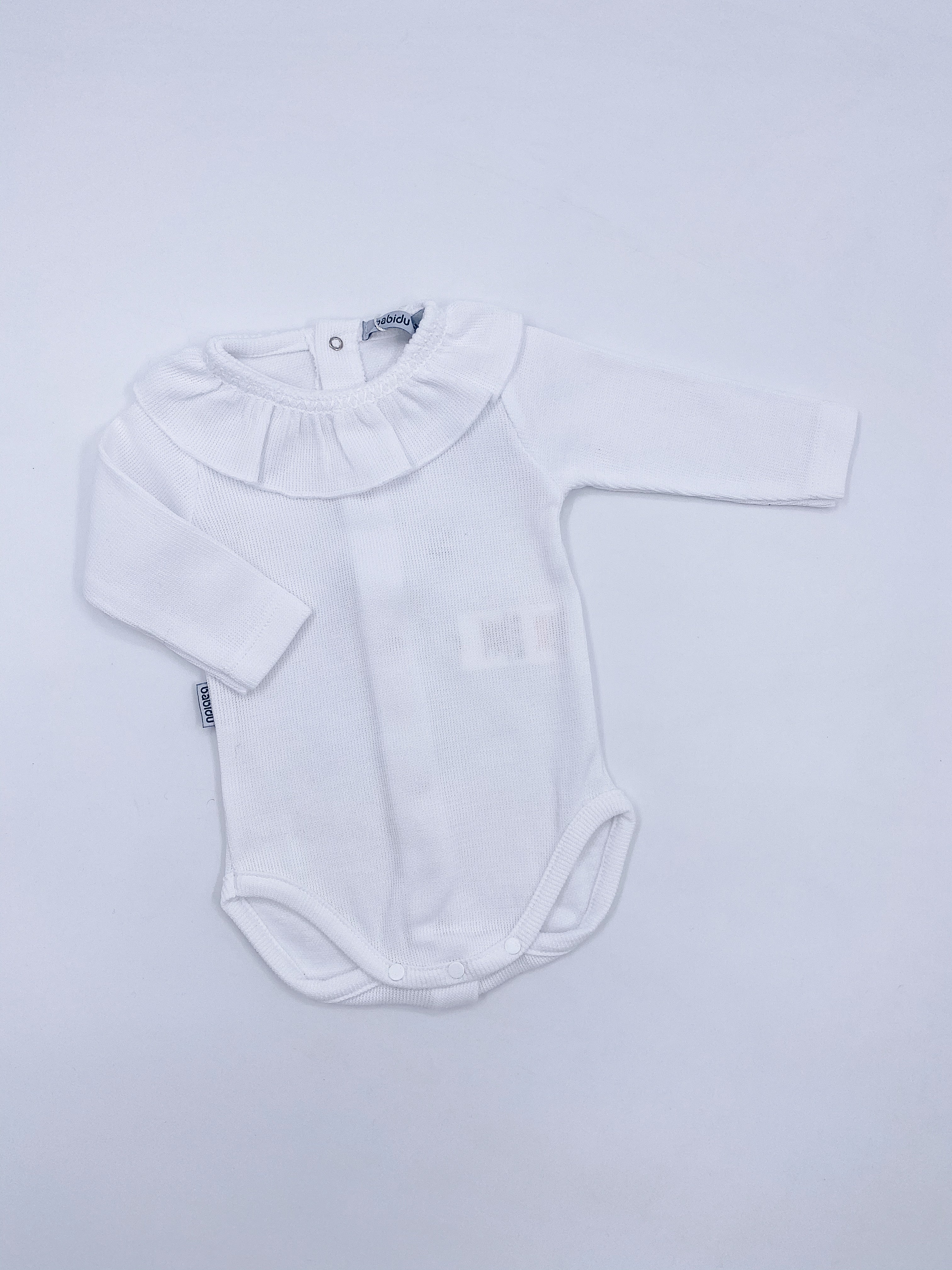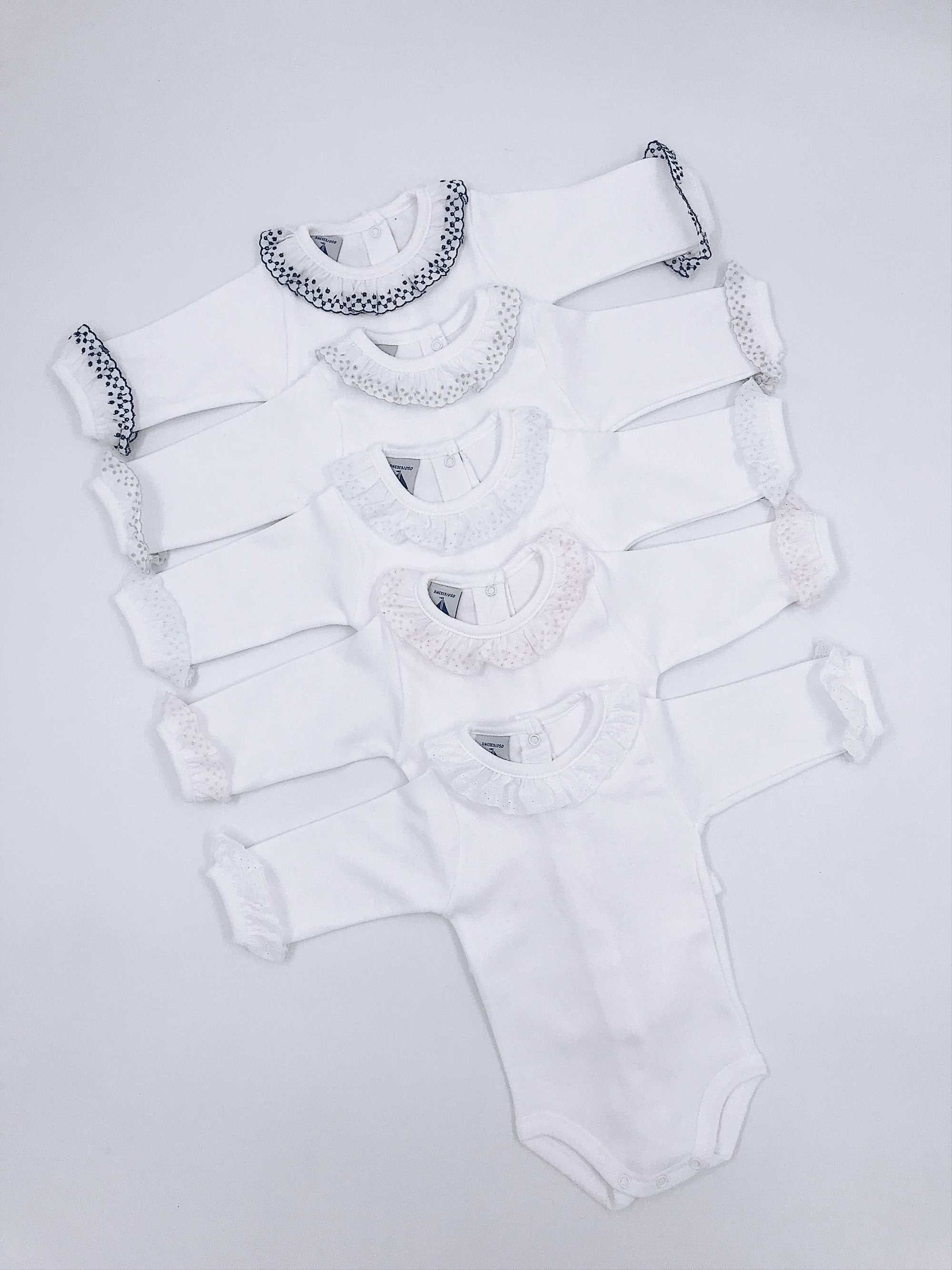 White Cotton baby vest with ruffle collar/cuffs STYLE 1191