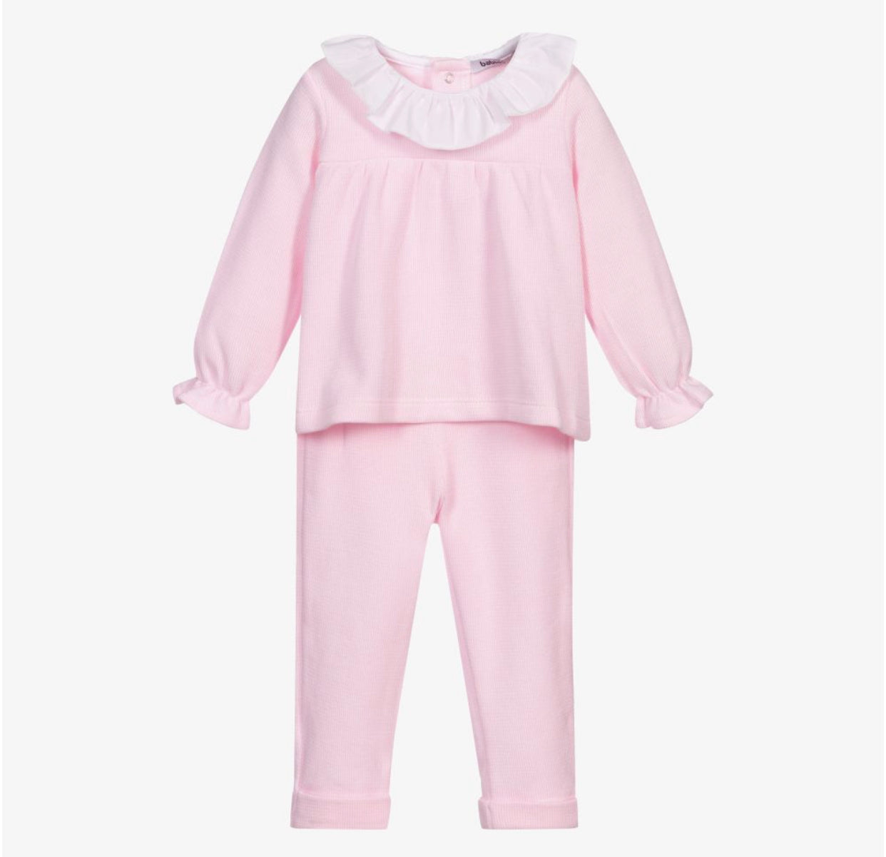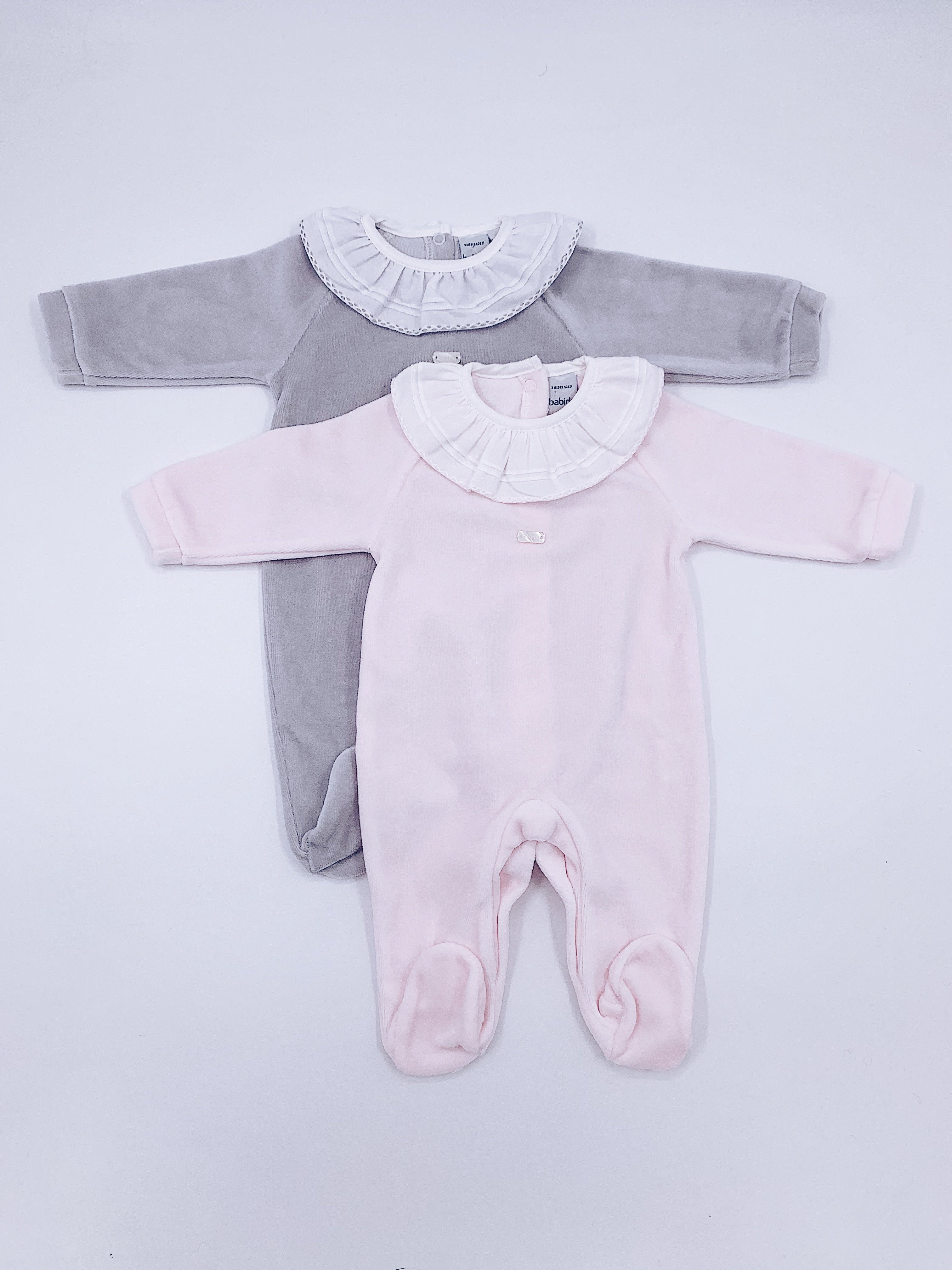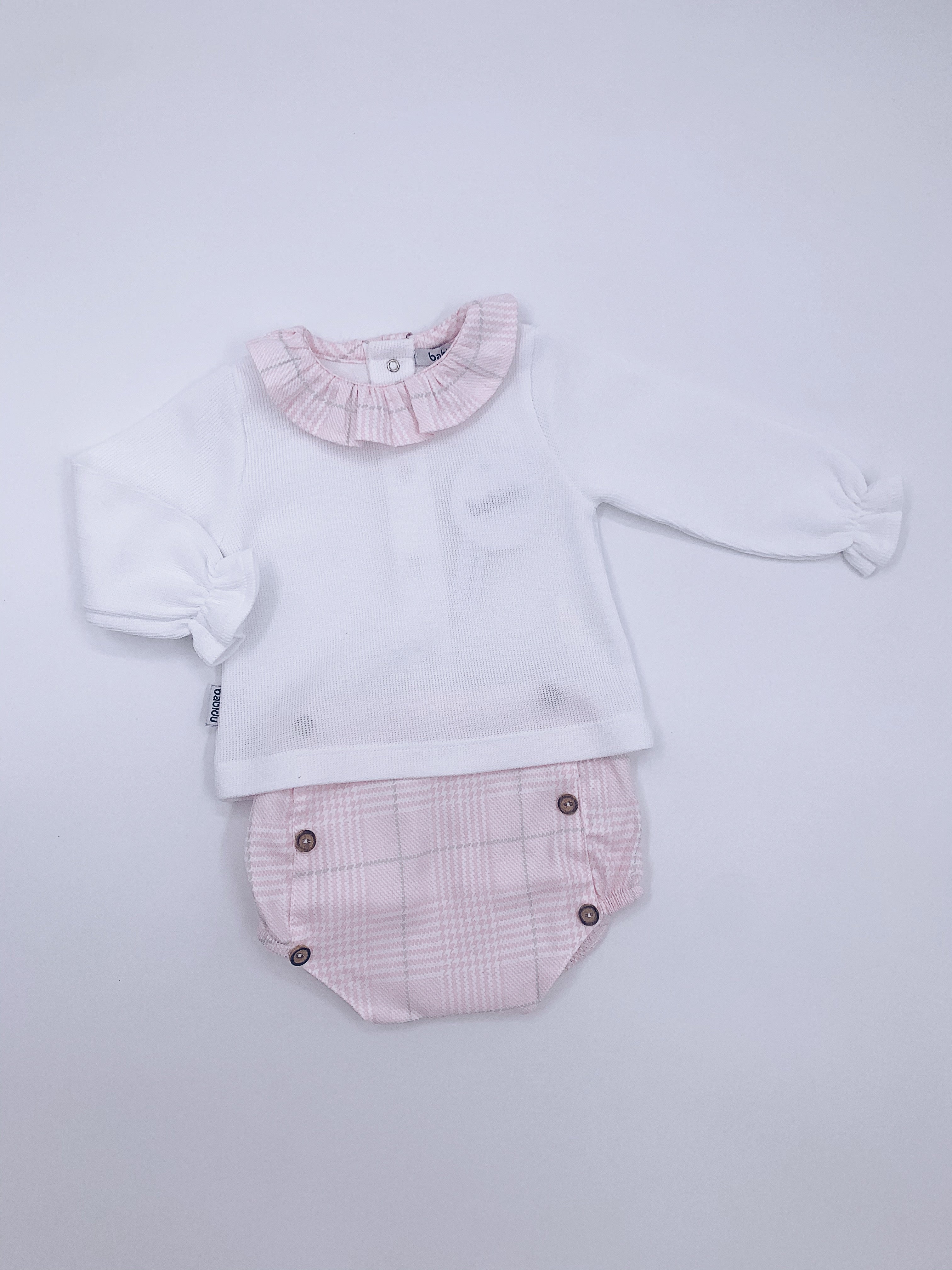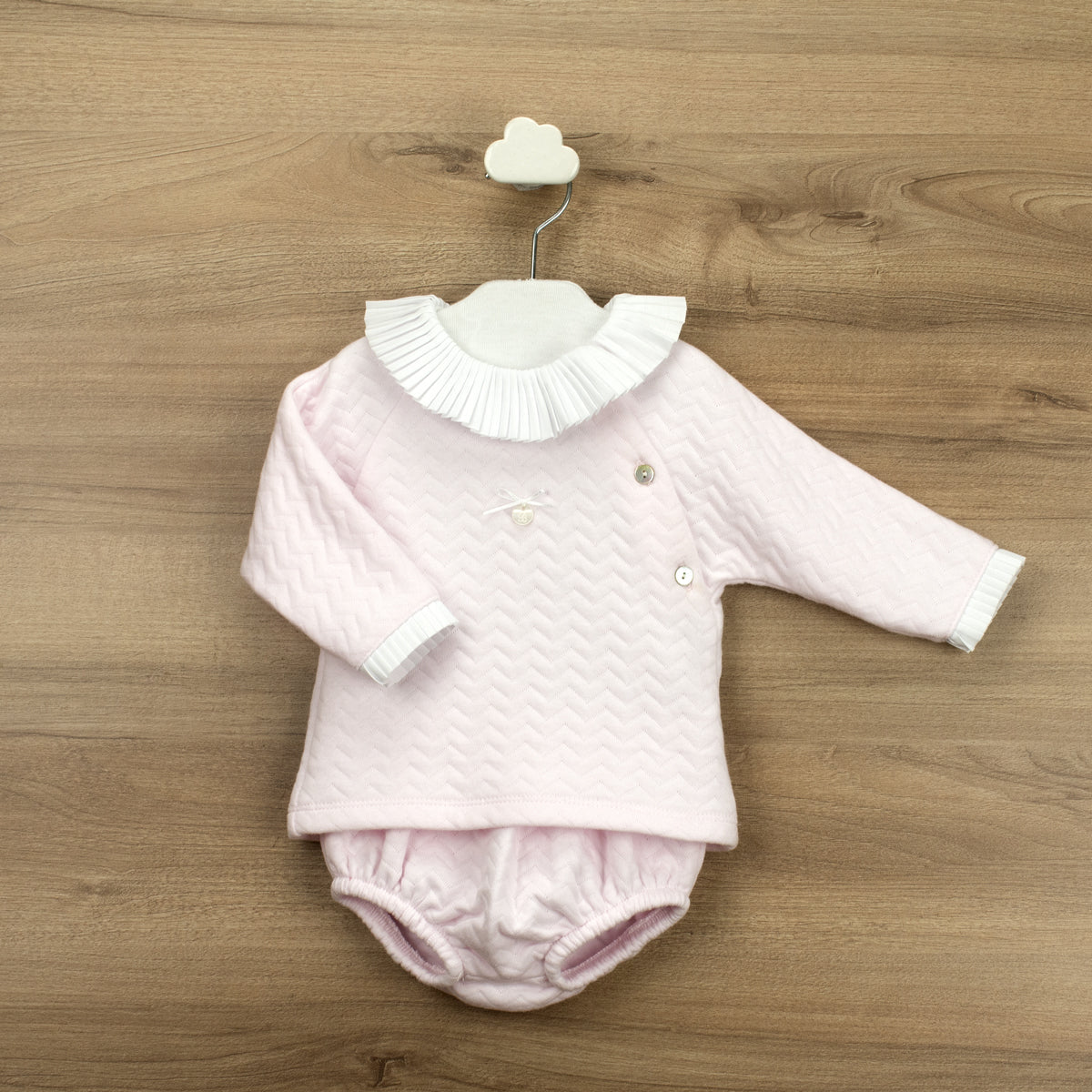 White Cotton baby vest with ruffle collar/cuffs STYLE 1191