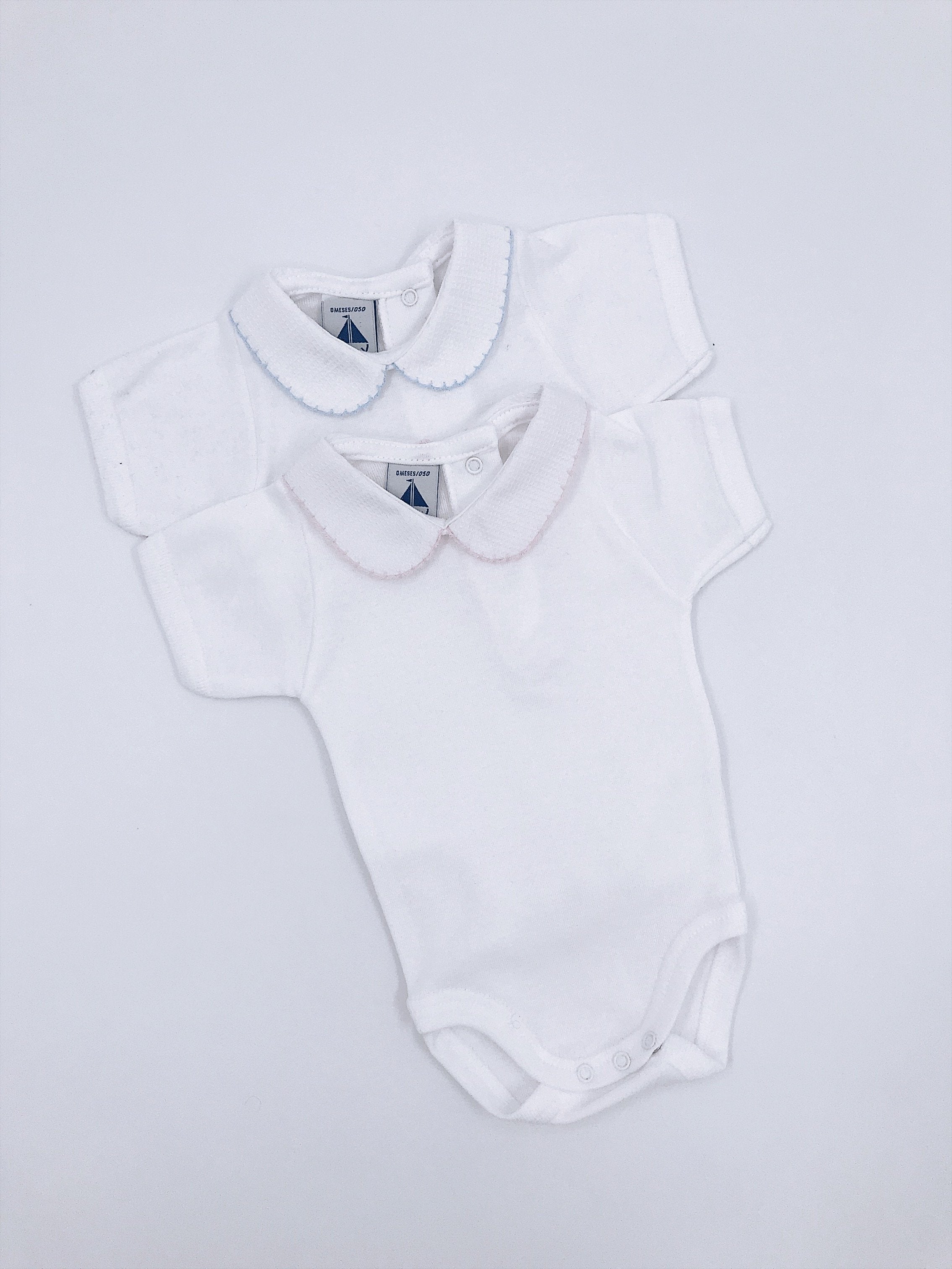 White Cotton baby vest with Peter Pan collar STYLE 1190