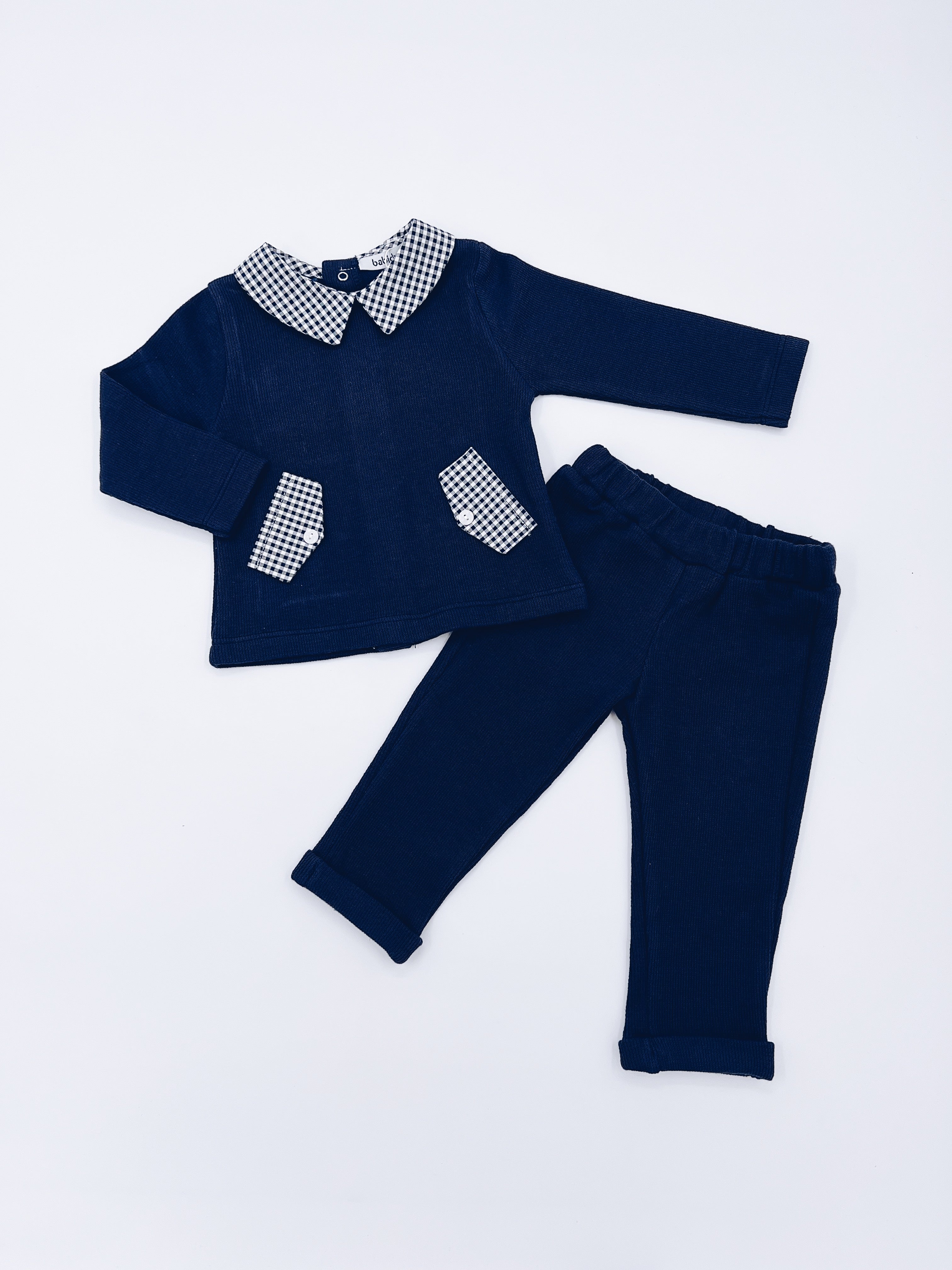 Beautiful Navy boys trousers 2 piece set with Collar details.