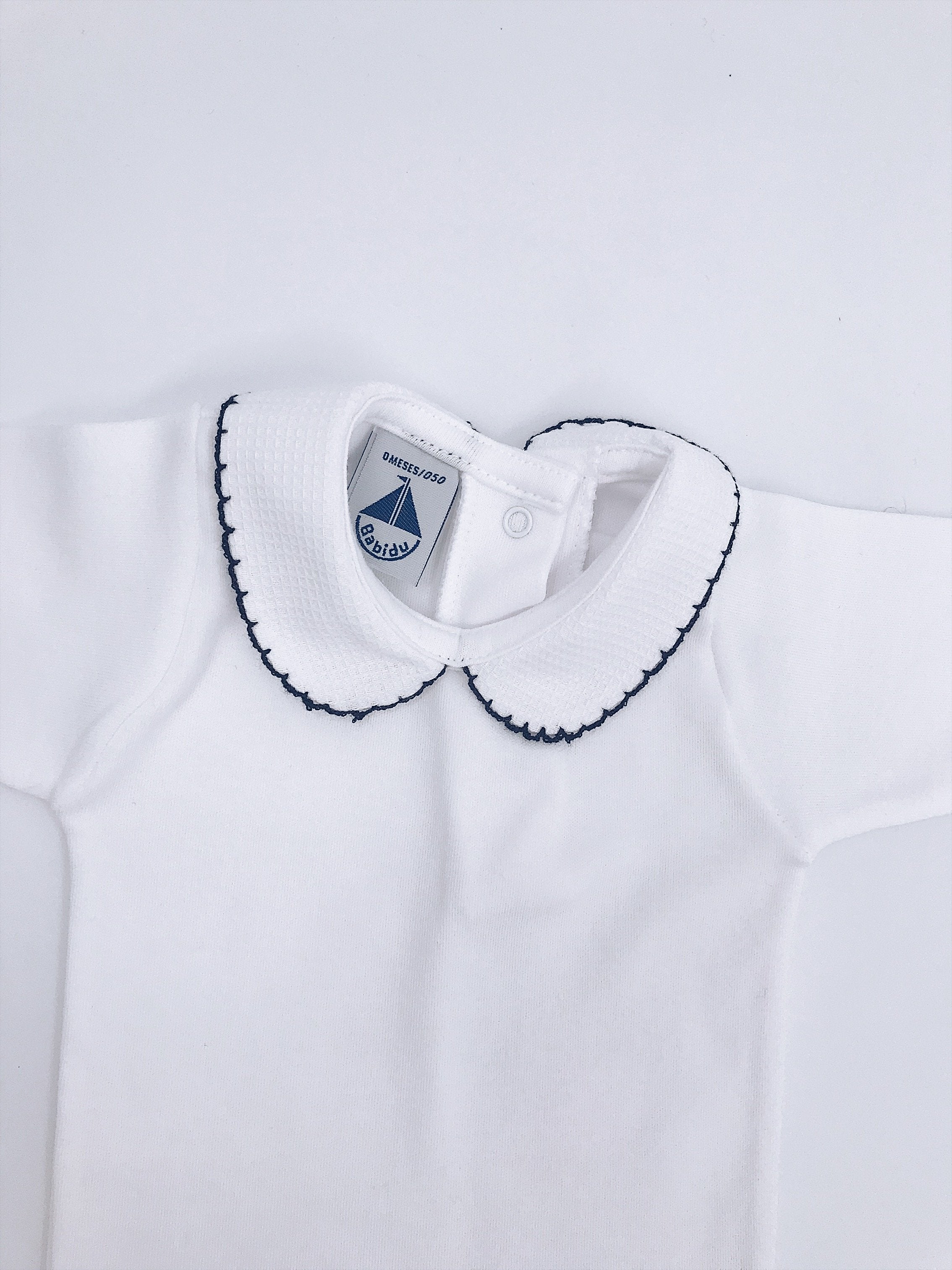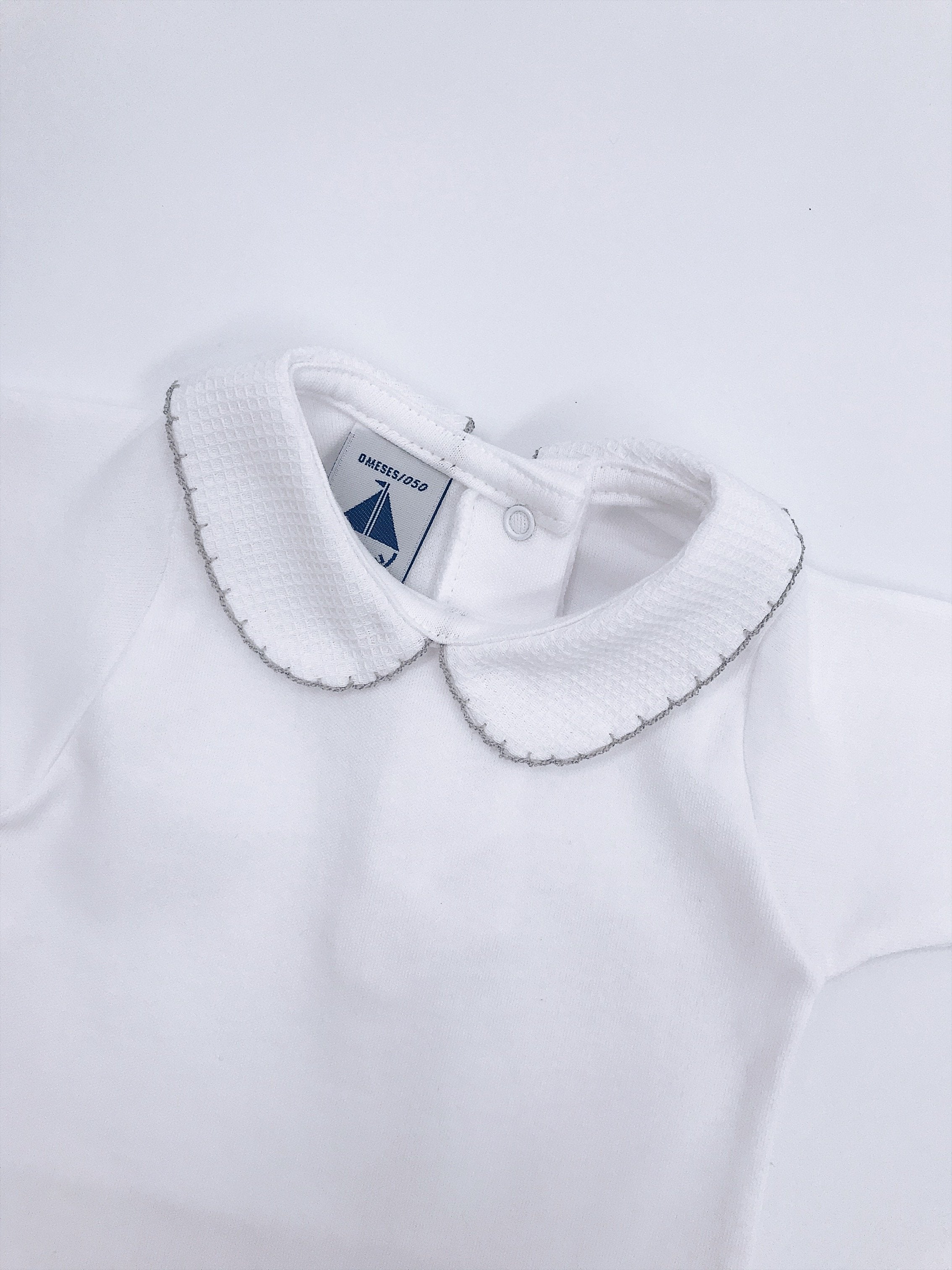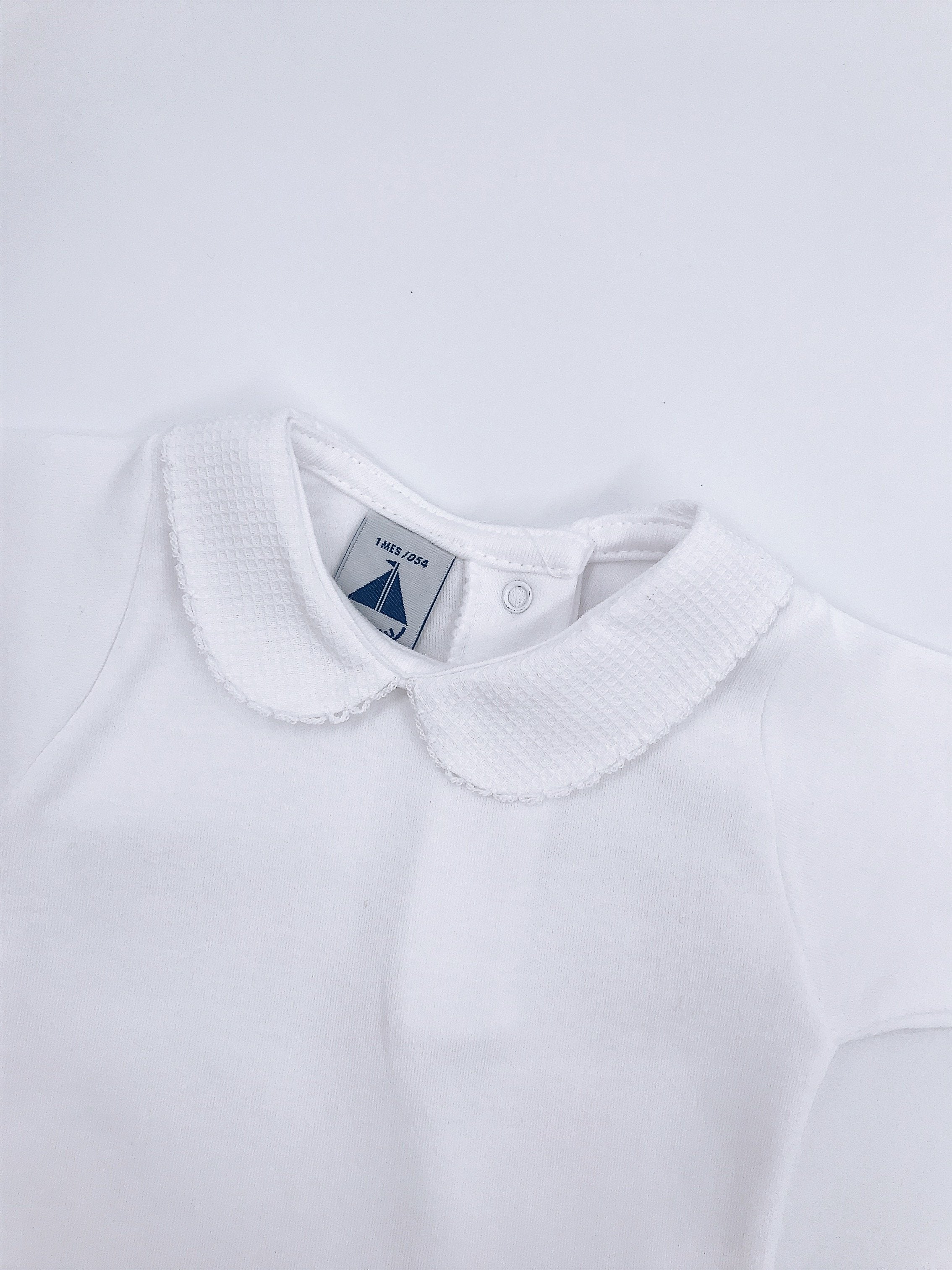 White Cotton bodysuit with Peter Pan collar.