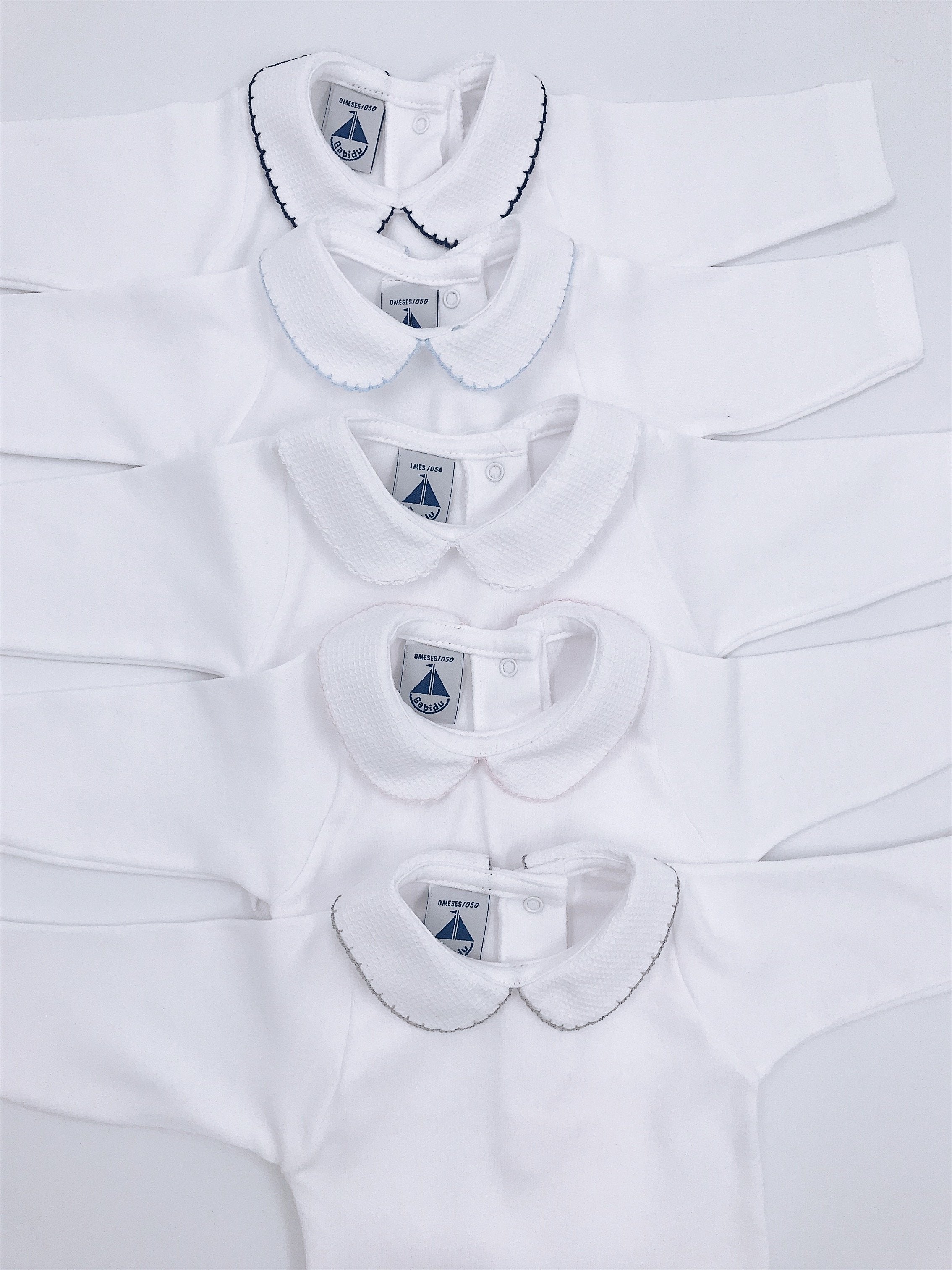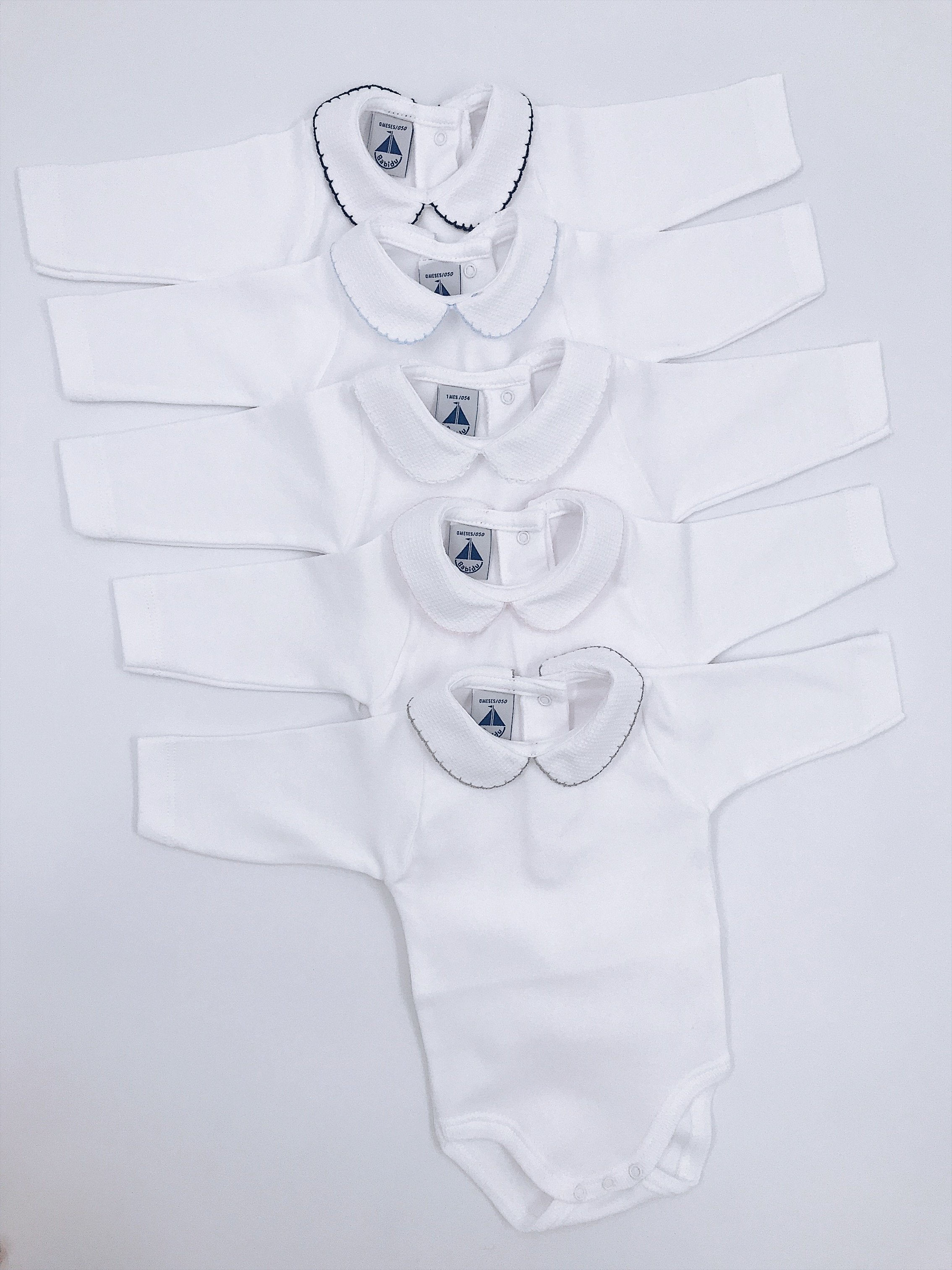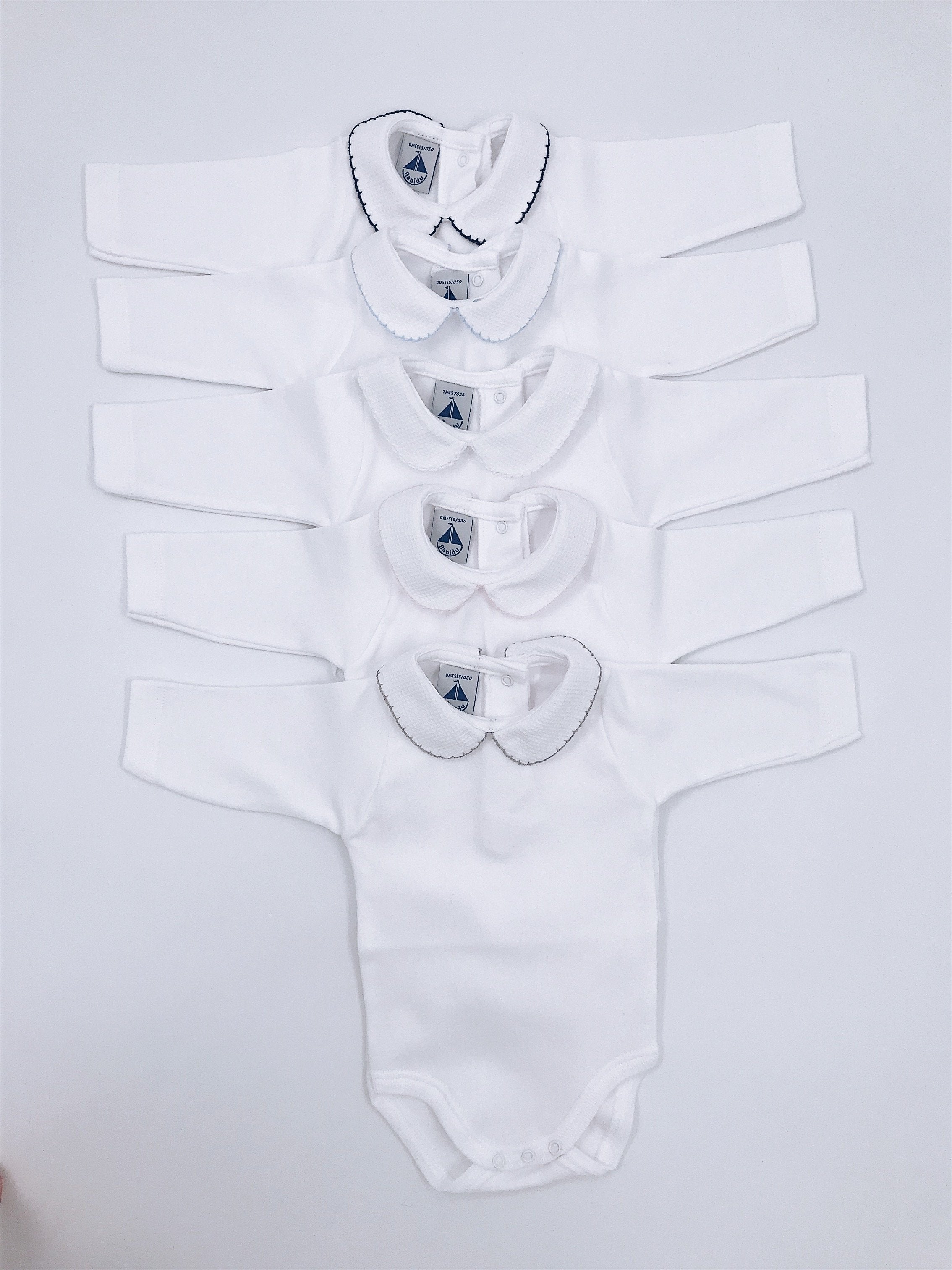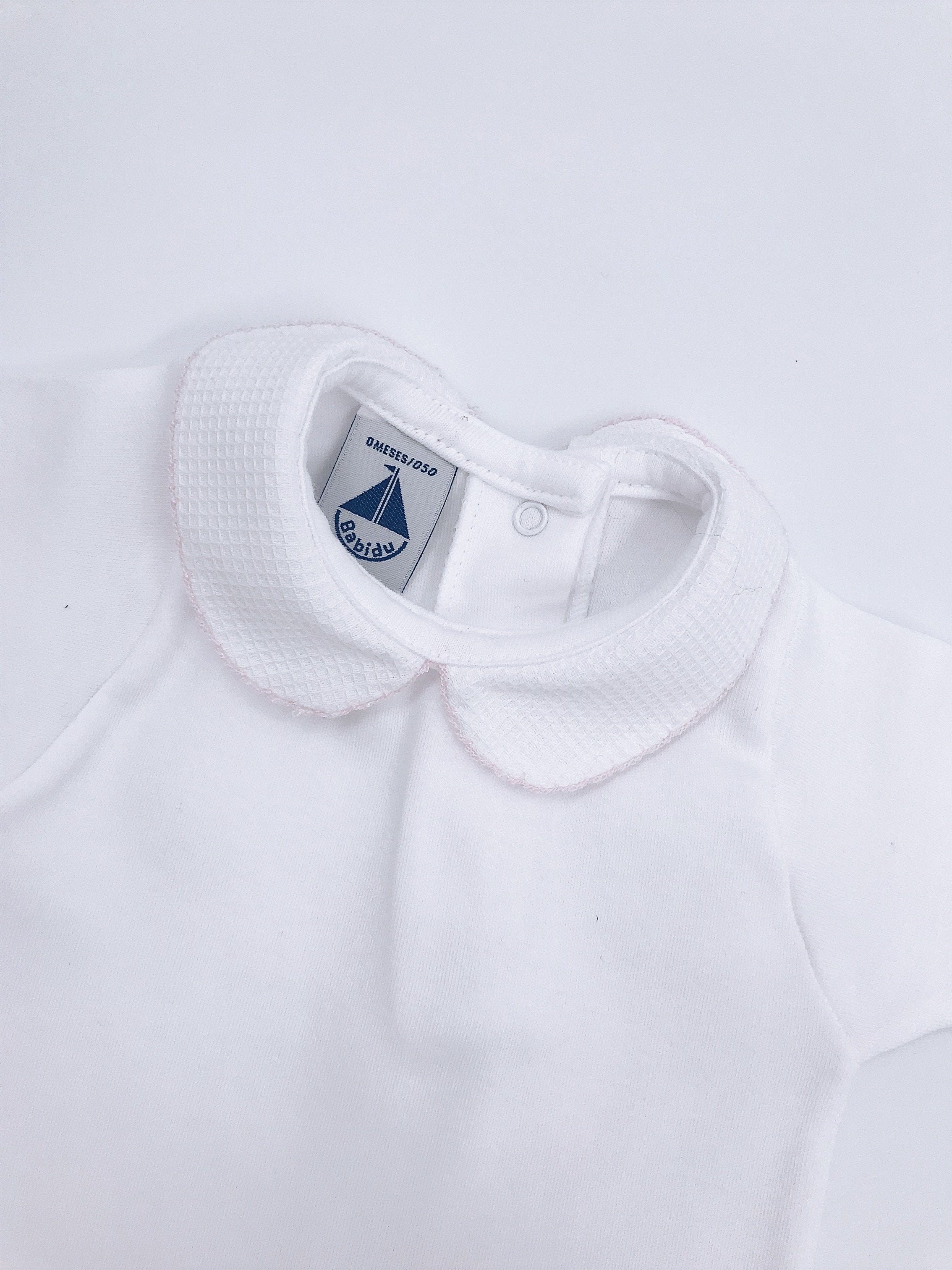 White Cotton bodysuit with Peter Pan collar.