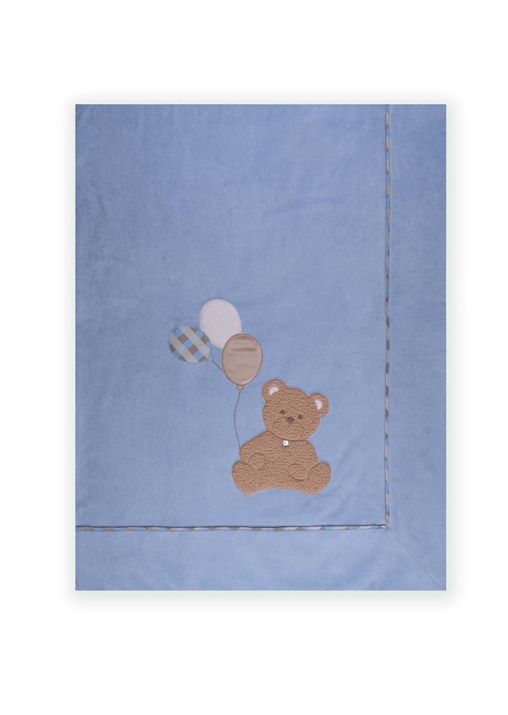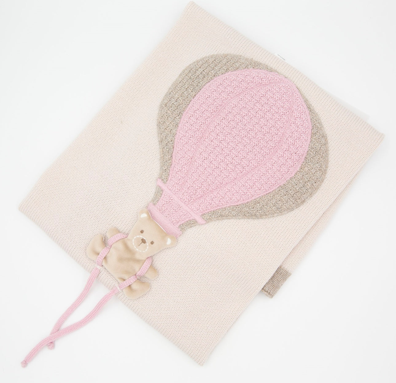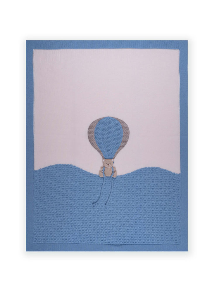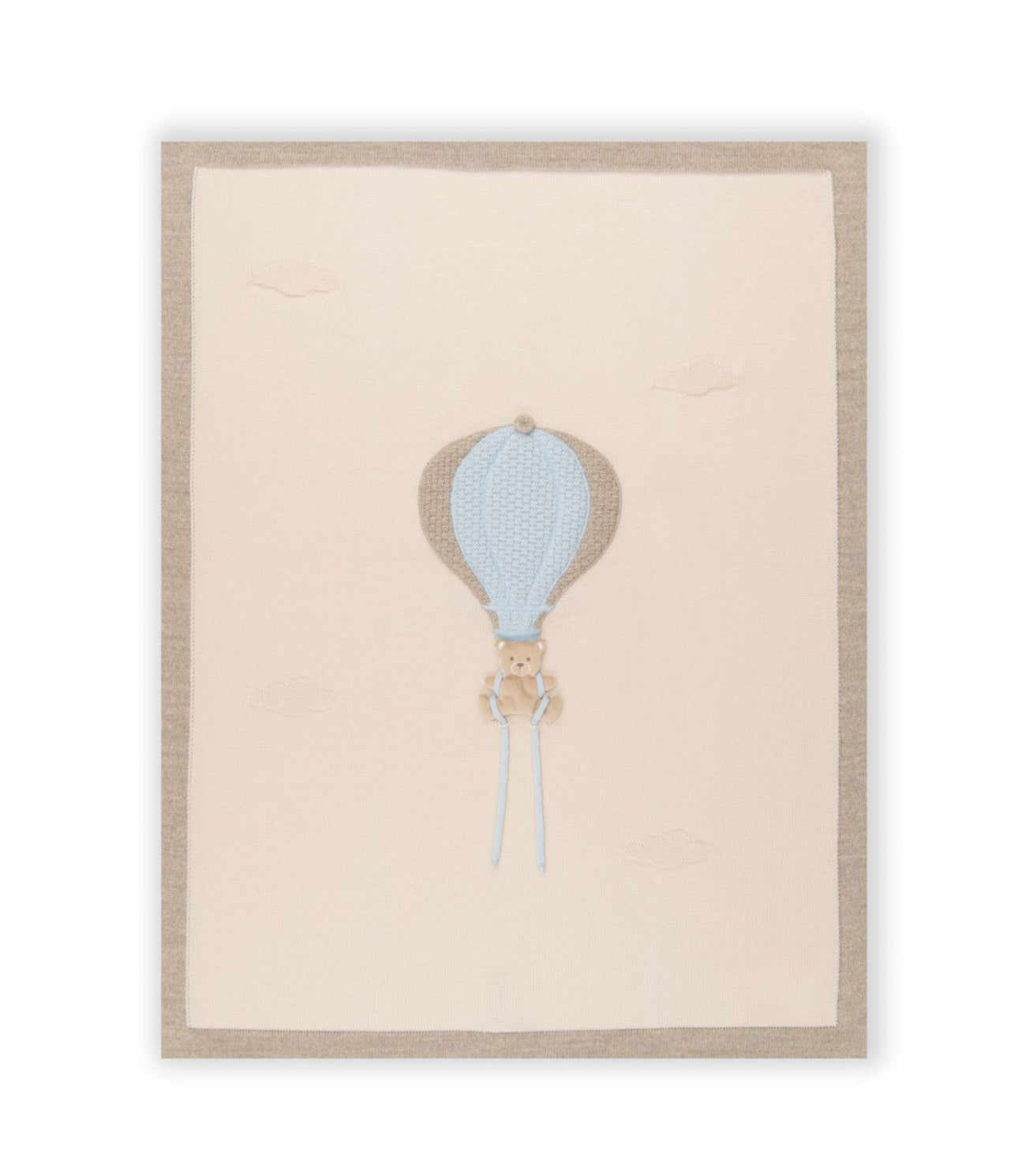 Knitted Balloon Bear blanket Cream/Baby Blue