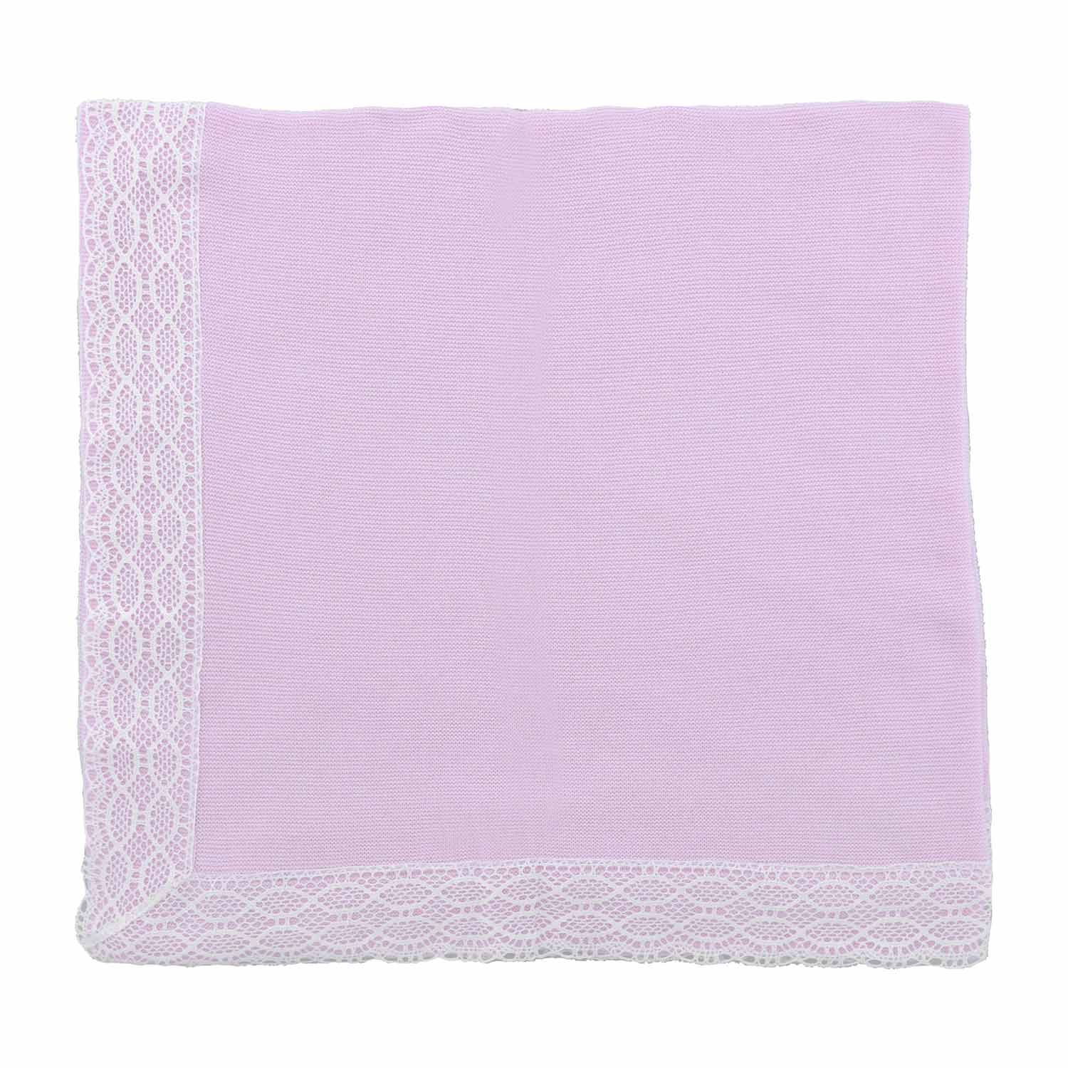 Beautiful Baby pink knitted blanket with lace trim(98cm)