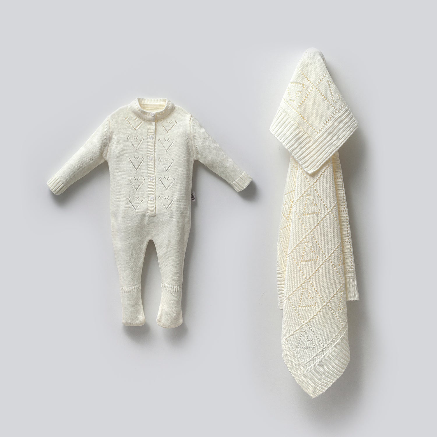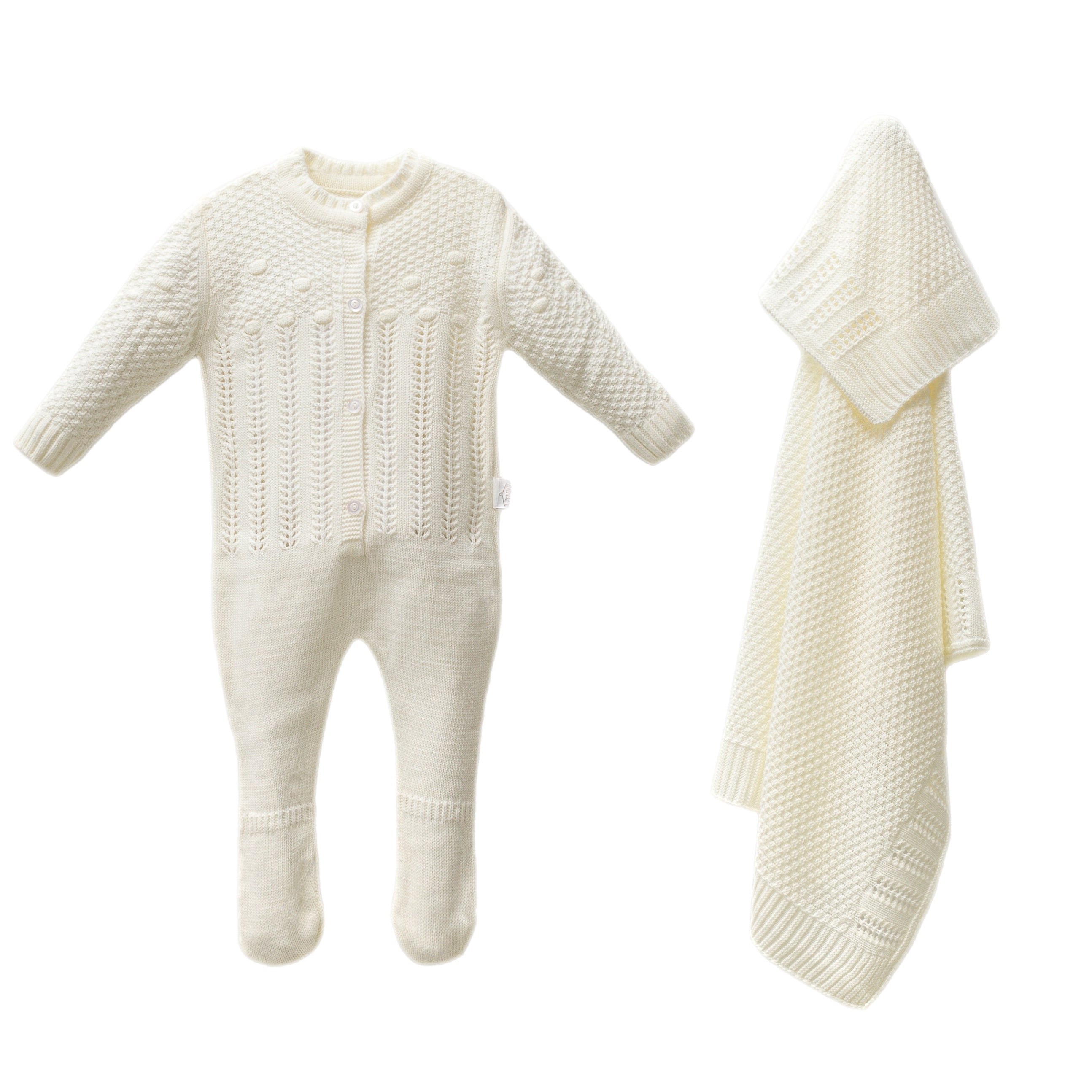 Beautiful Unisex Ivory 5 piece Hospital/Coming home set(including Blanket/Romper/Mittens/Booties/Hat)