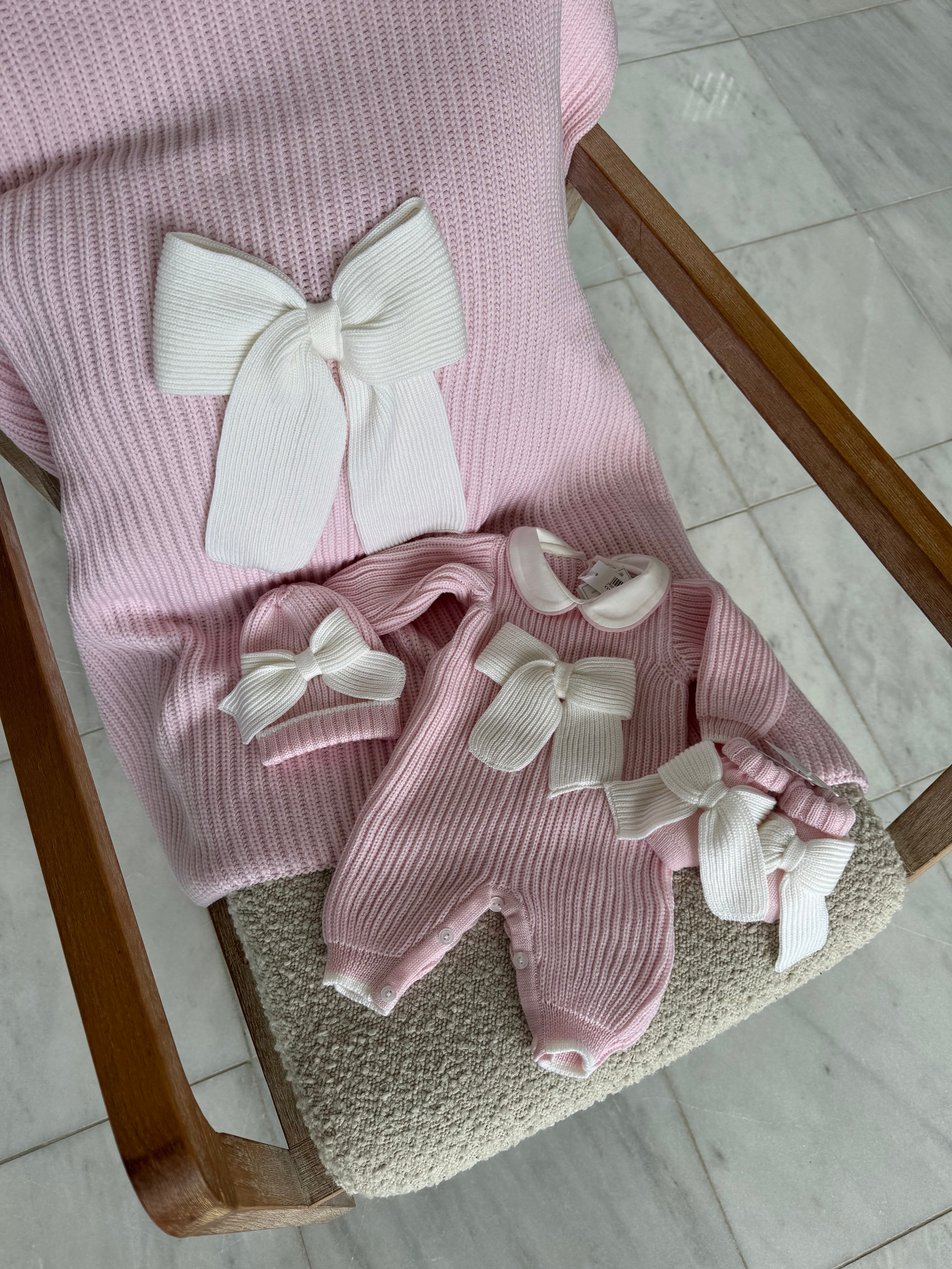 Beautiful Knitted Merino Wool Pink Baby Blanket with Bow details.