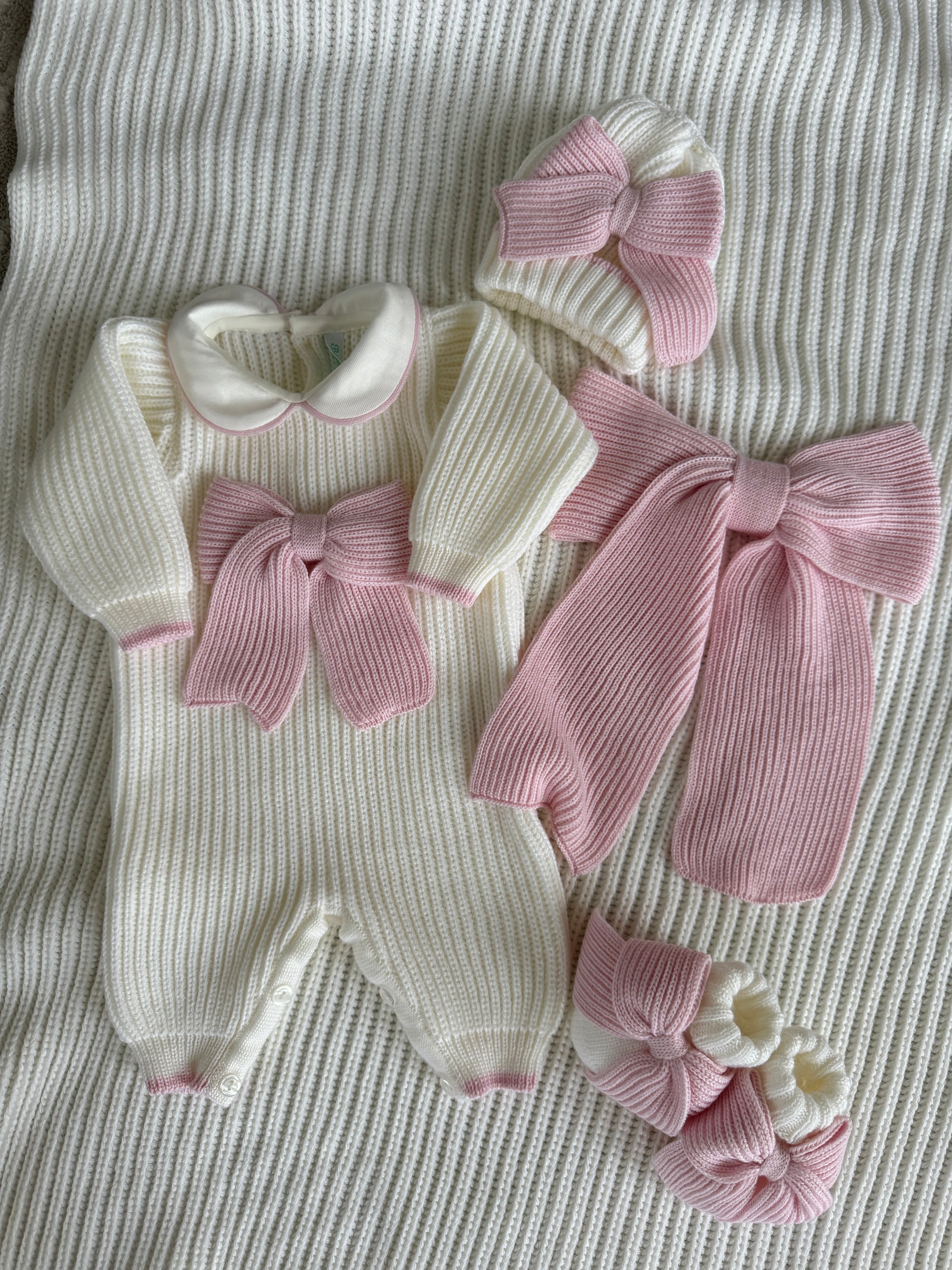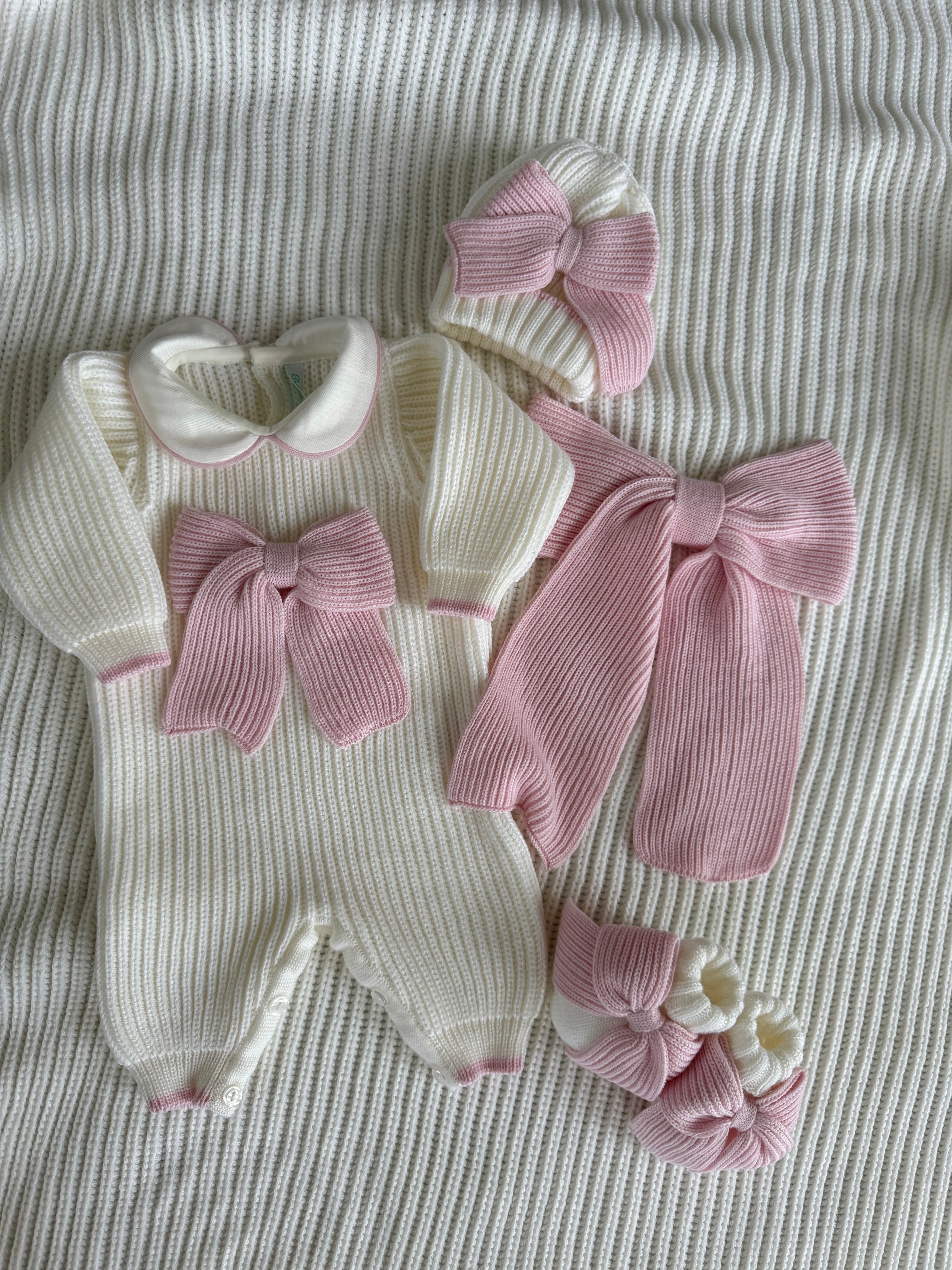 Matching Romper,booties and hat(Sold Separately)Also available on the website.