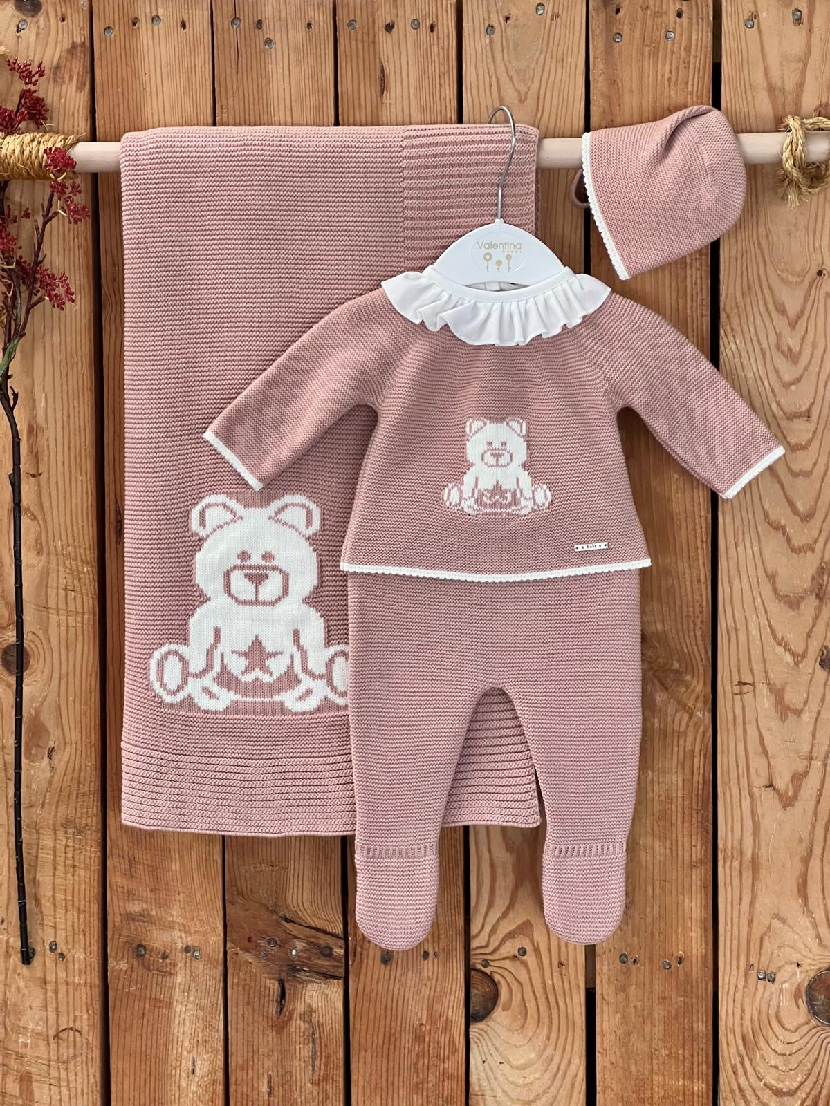 Dusty pink Bear knitted baby Blanket.