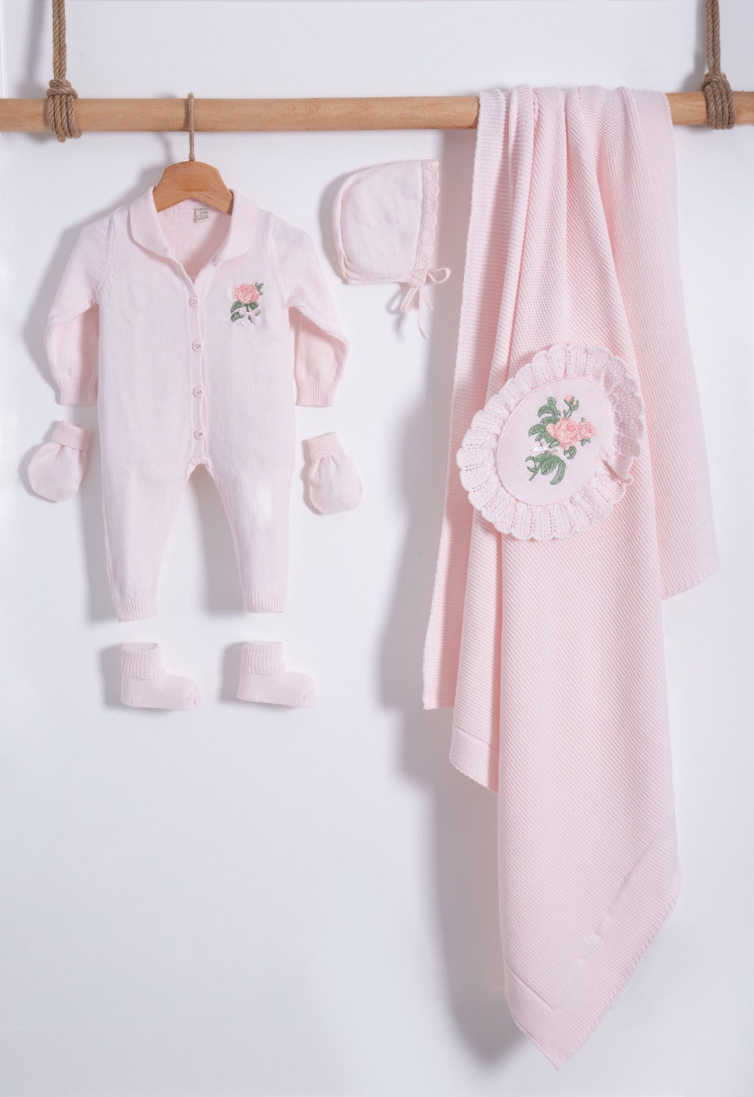 Beautiful Baby pink Baby girl 5 piece Hospital/Coming home set(including Blanket/Romper/Mittens/Booties/Hat)