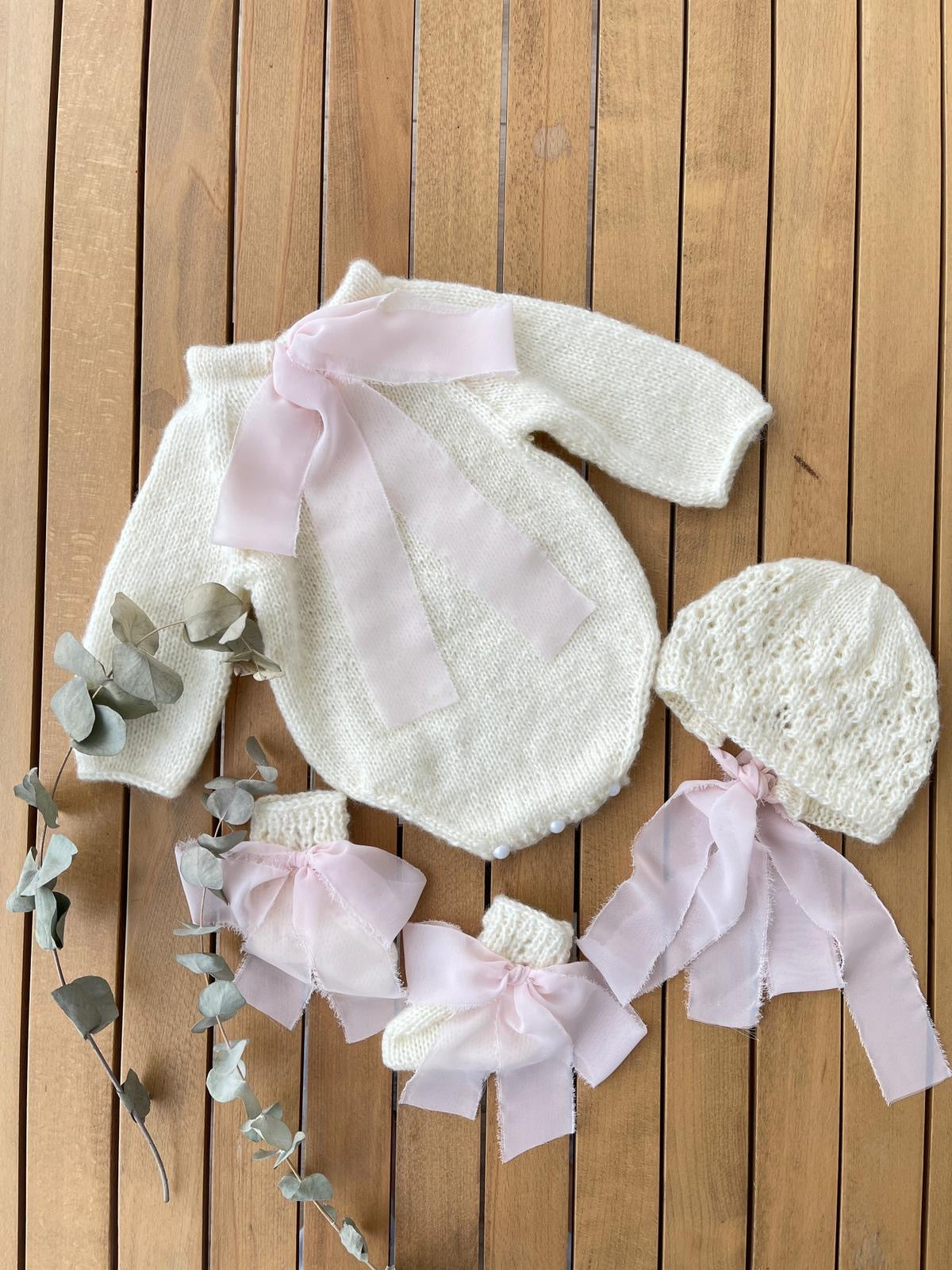 Beautiful White/Off white Hand Knitted 4 piece set.