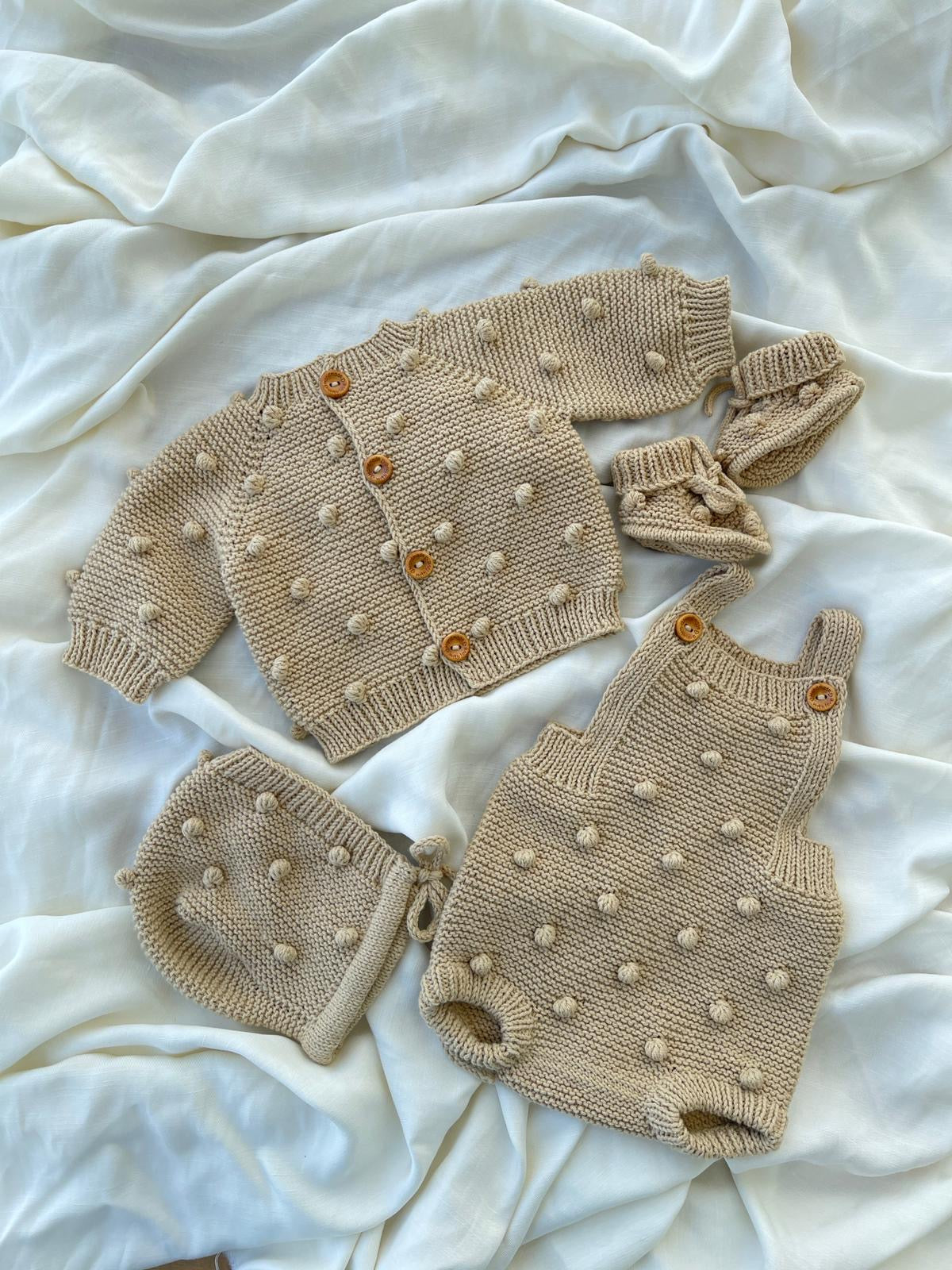Beautiful Light Beige Hand Knitted 4 piece set.