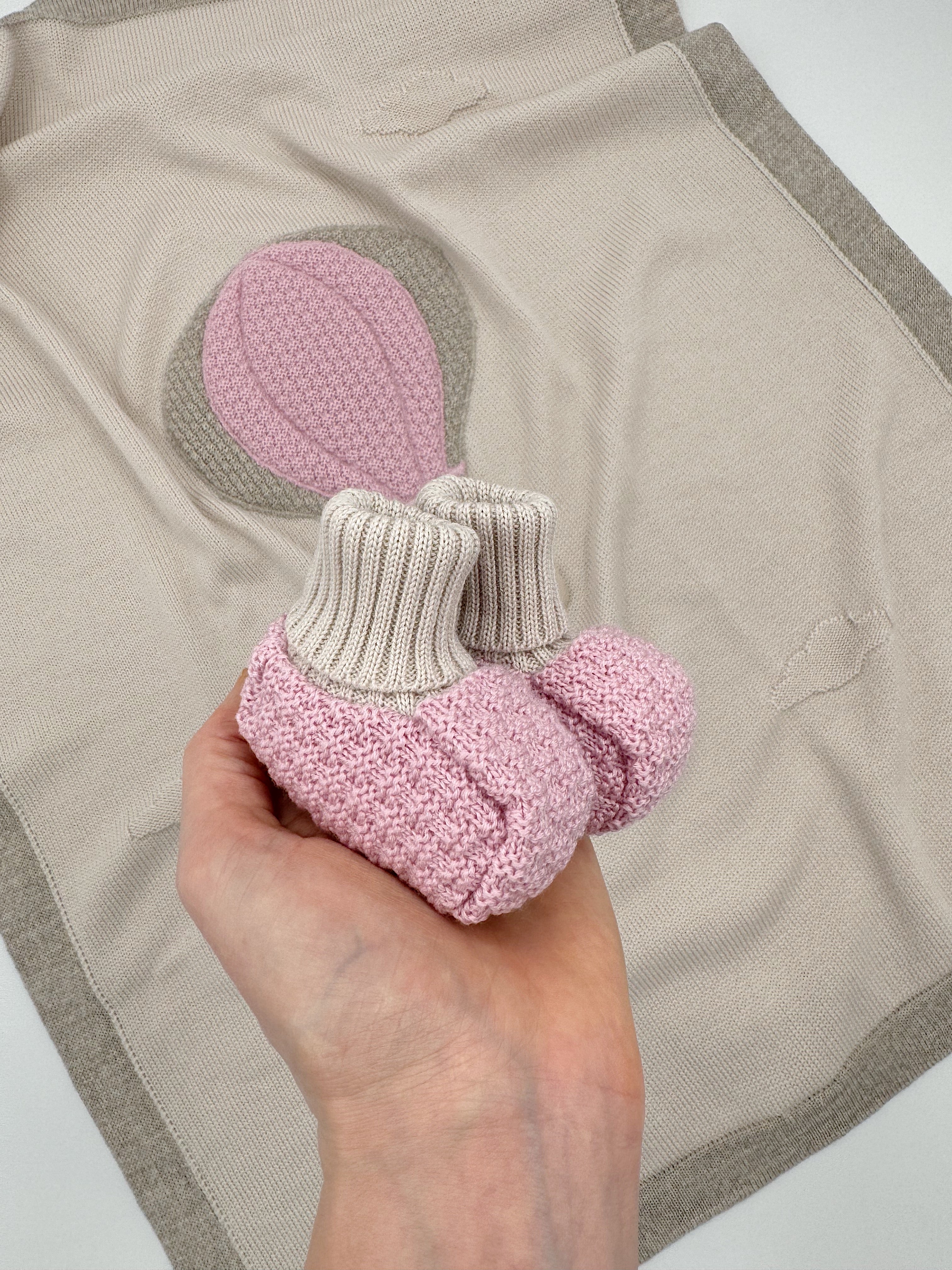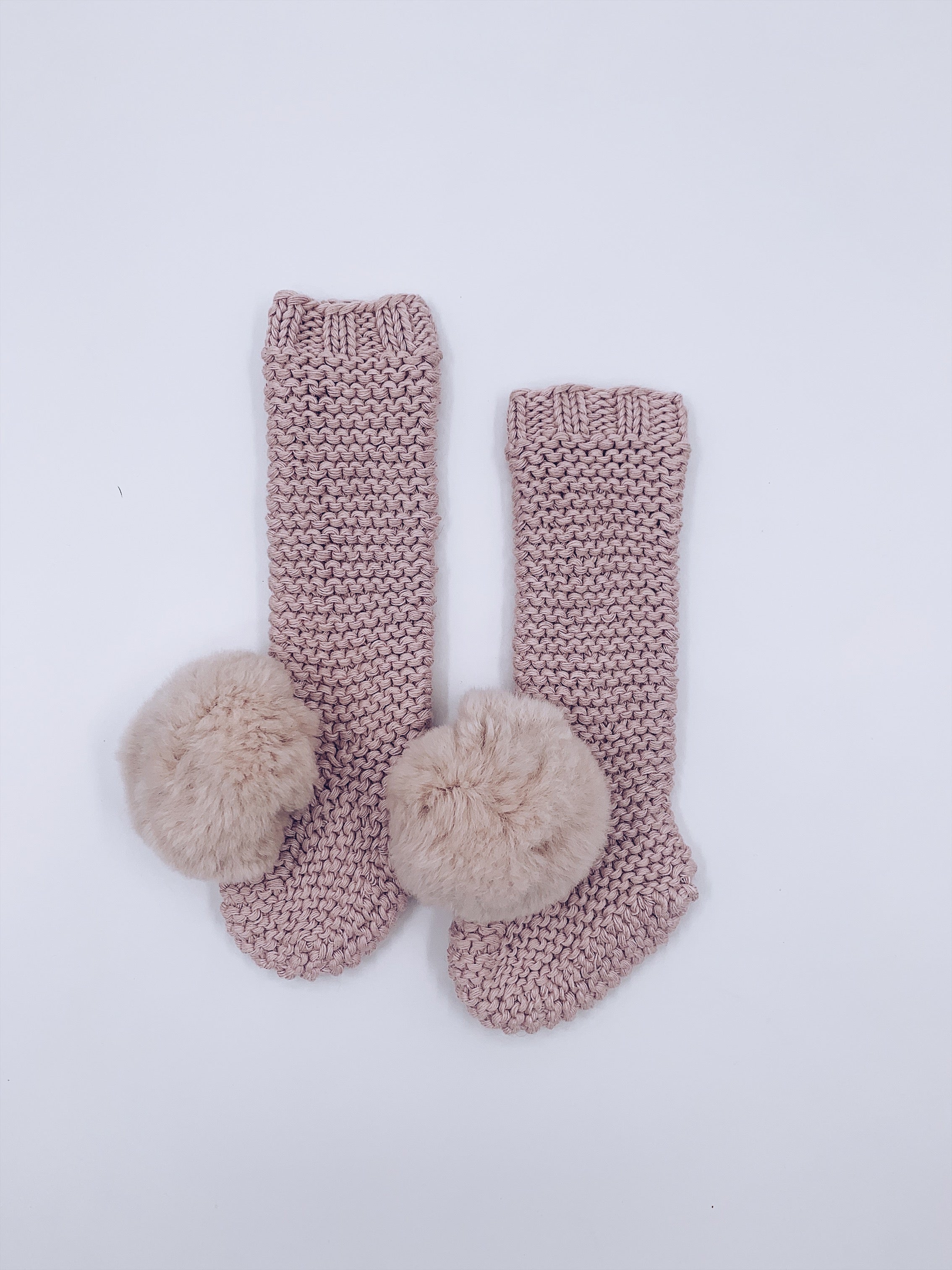 MI LOVES SIGNATURE Dusty pink Long Handknitted pompom booties