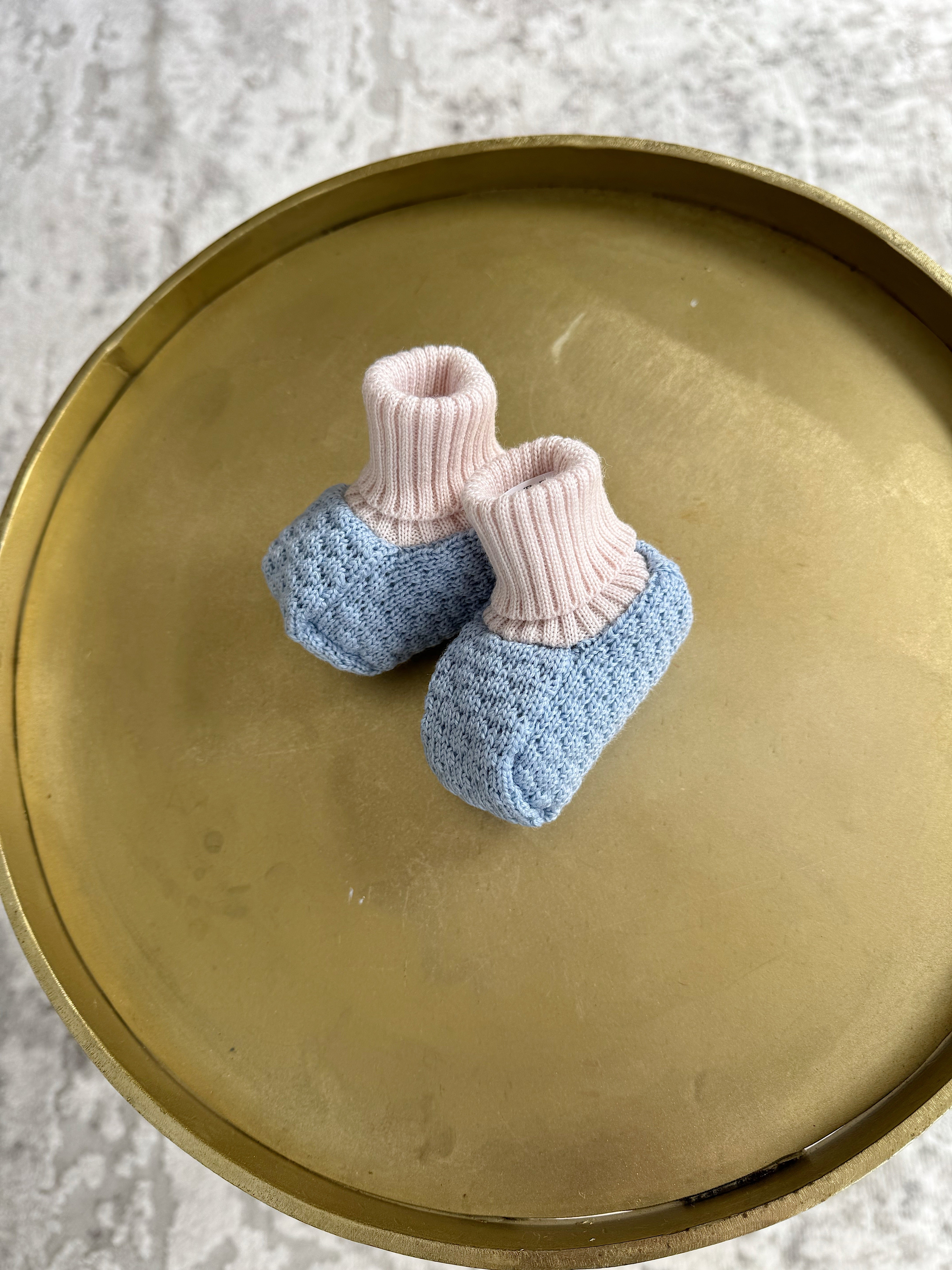 Beautiful knitted Merino Wool Blue Baby Booties with Bow details.