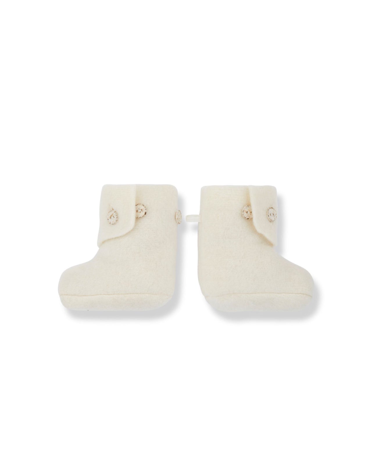 Beautiful knitted Merino Wool Ivory/White Baby Booties with Bow details.