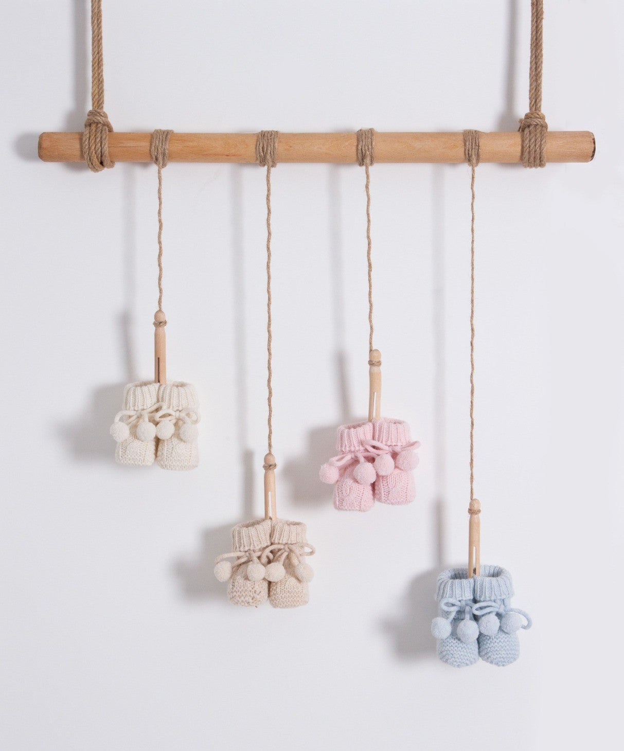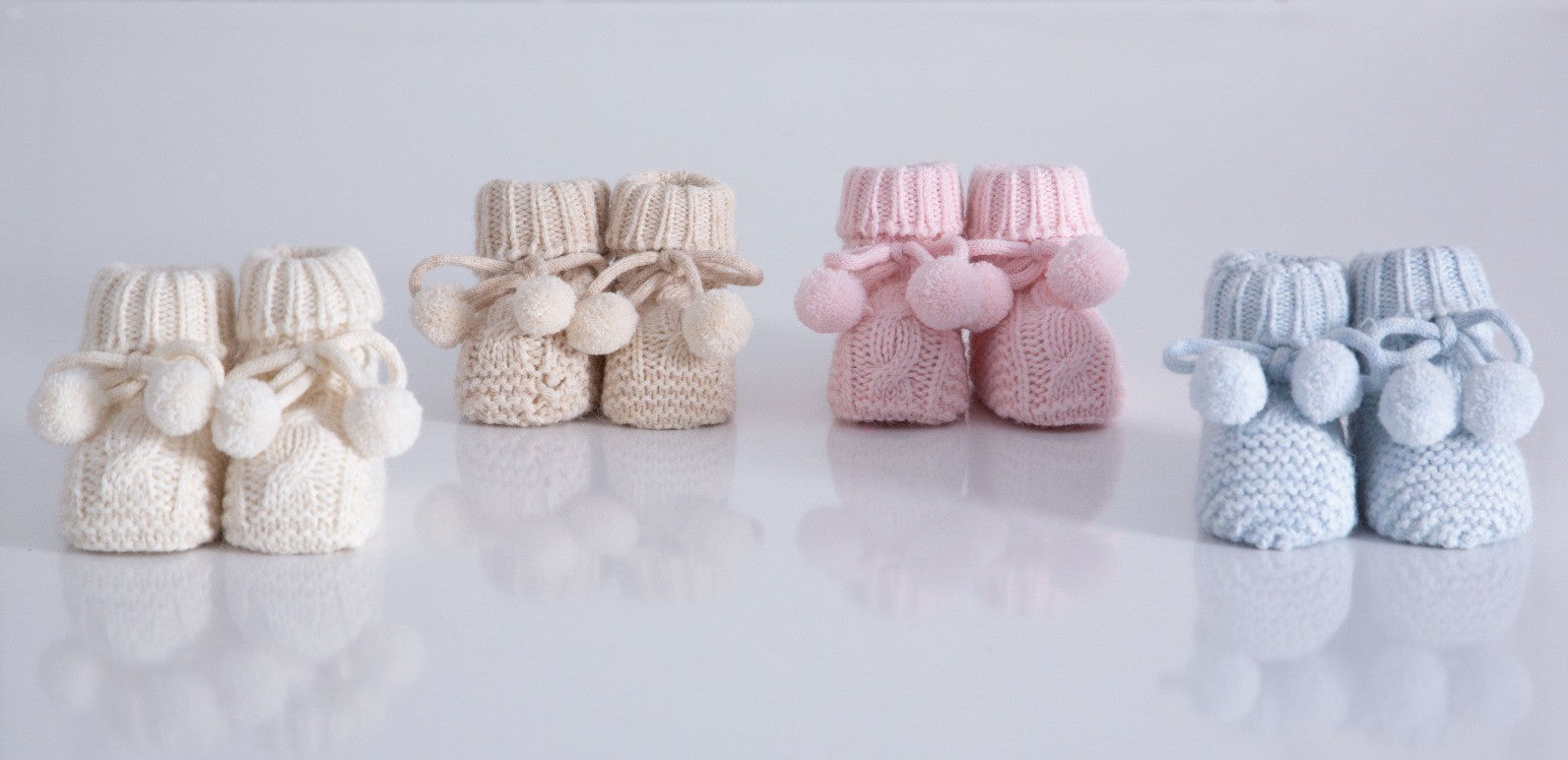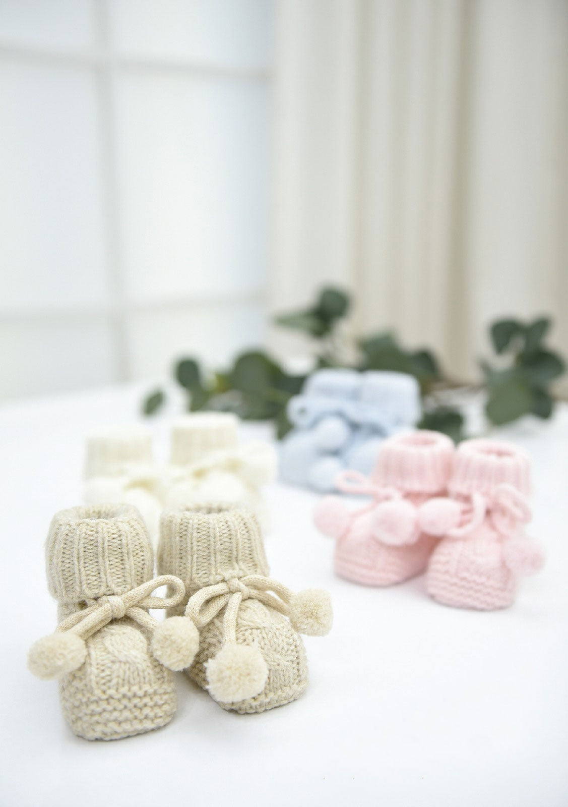 Beautiful Lana Wool blend knitted Baby BOOTIES with cute pompom details