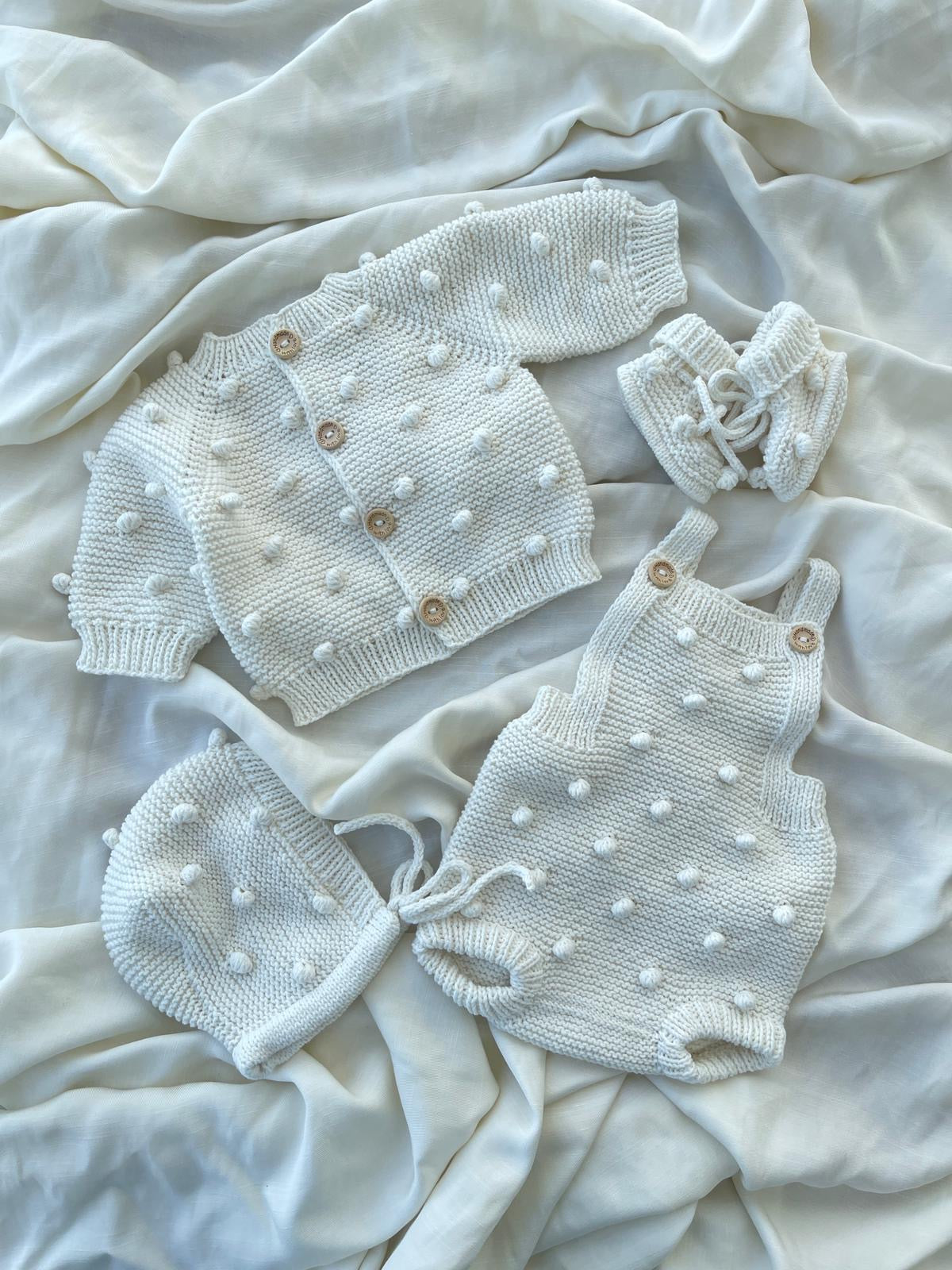 Beautiful White/Off white Hand Knitted 4 piece set.