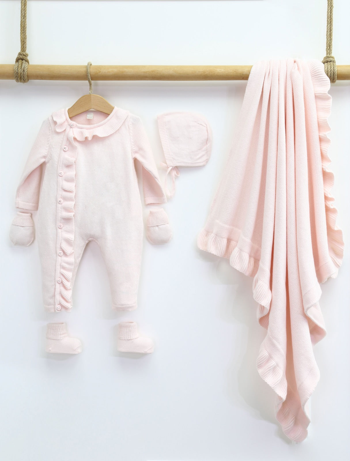 Beautiful Baby Pink Baby girl 5 piece Hospital/Coming home set(including Blanket/Romper/Mittens/Booties/Hat)