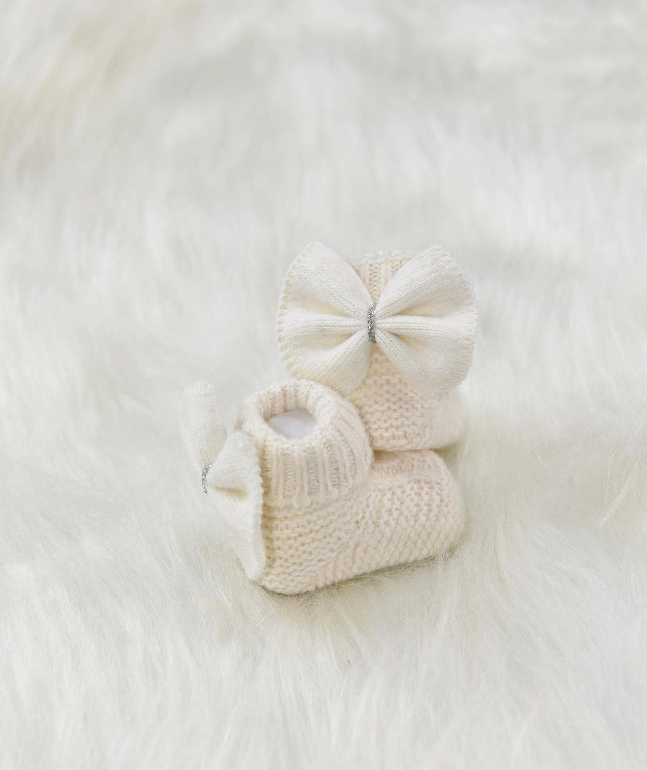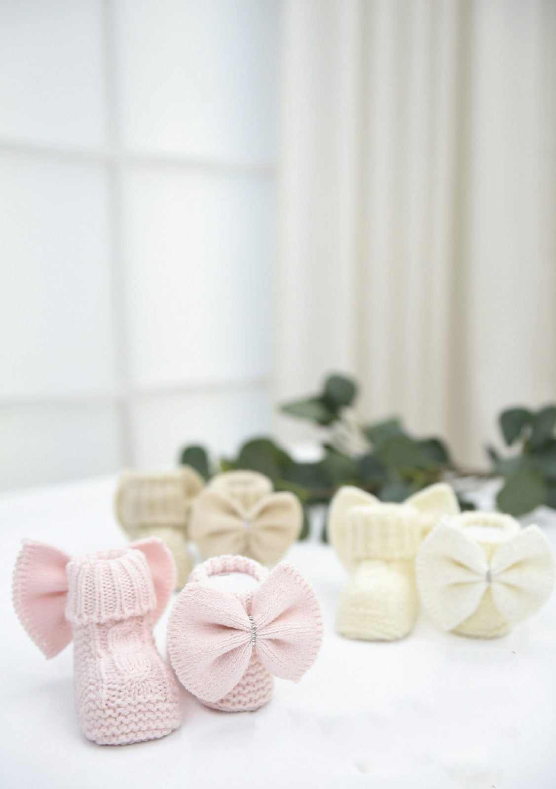 Beautiful Lana Wool blend knitted Baby BOOTIES with cute bow details