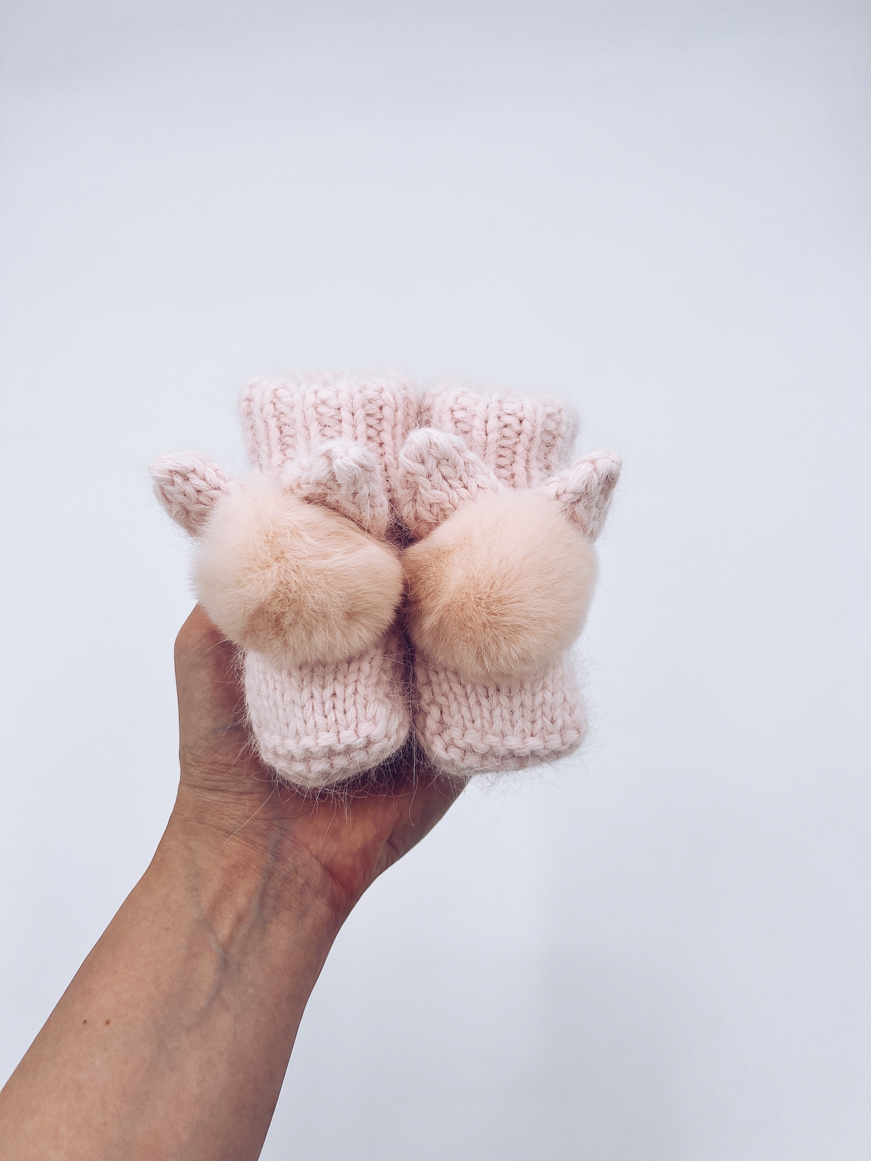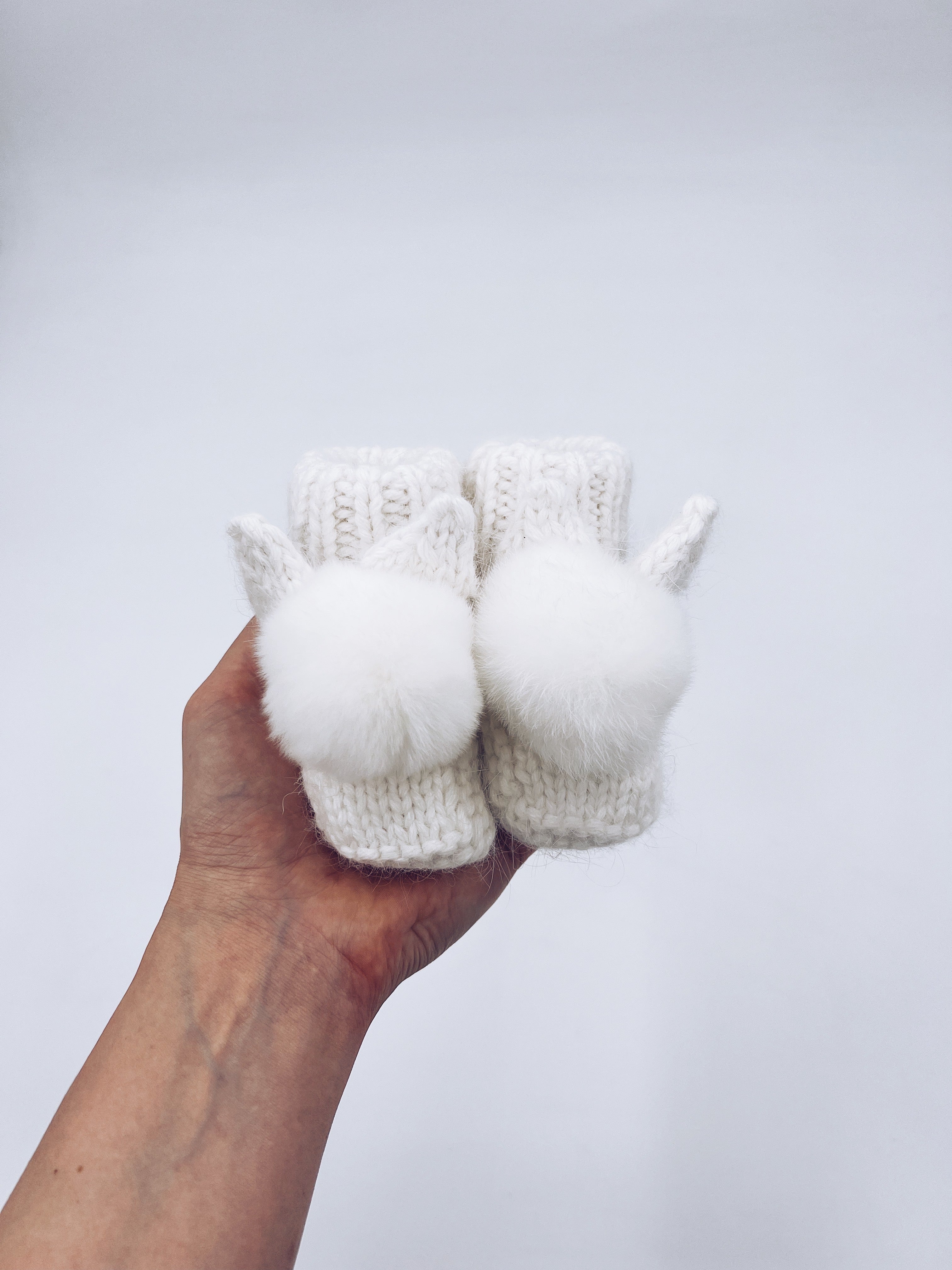 MI LOVES SIGNATURE Little Bunny Angora pompom booties.