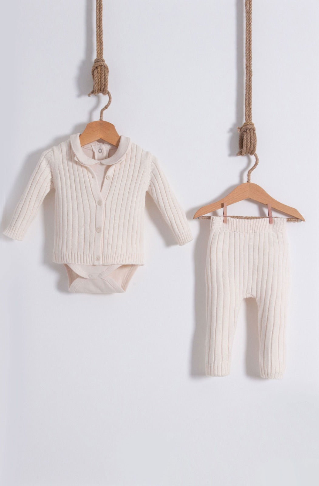 Beautiful Ivory Knitted Baby 3 piece set(Jumper/Trousers/Bodysuit)