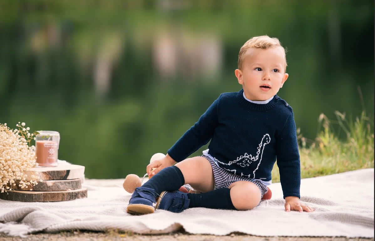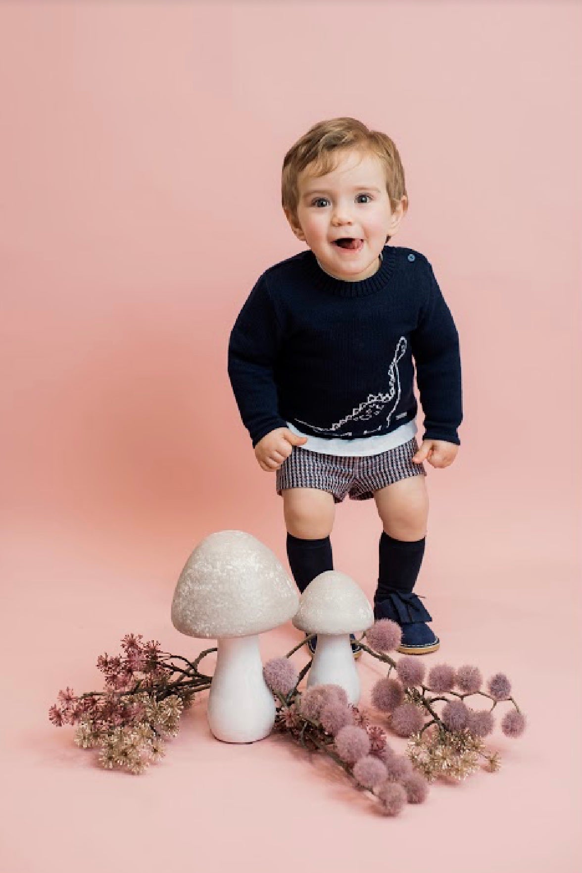 Boys Foque Navy blue 3 piece Shorts set with Dinosaur motif(sweater/Shorts/Shirt)