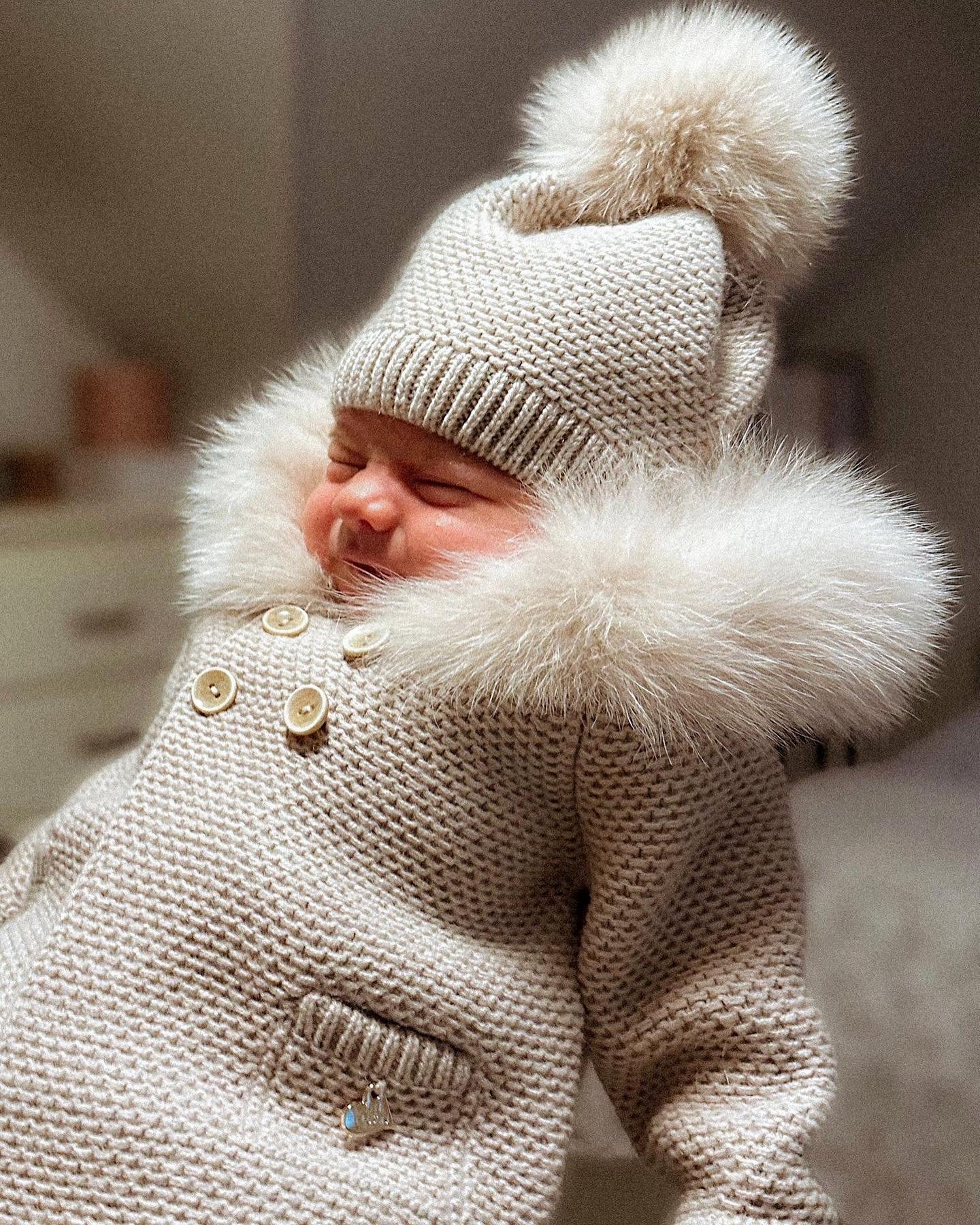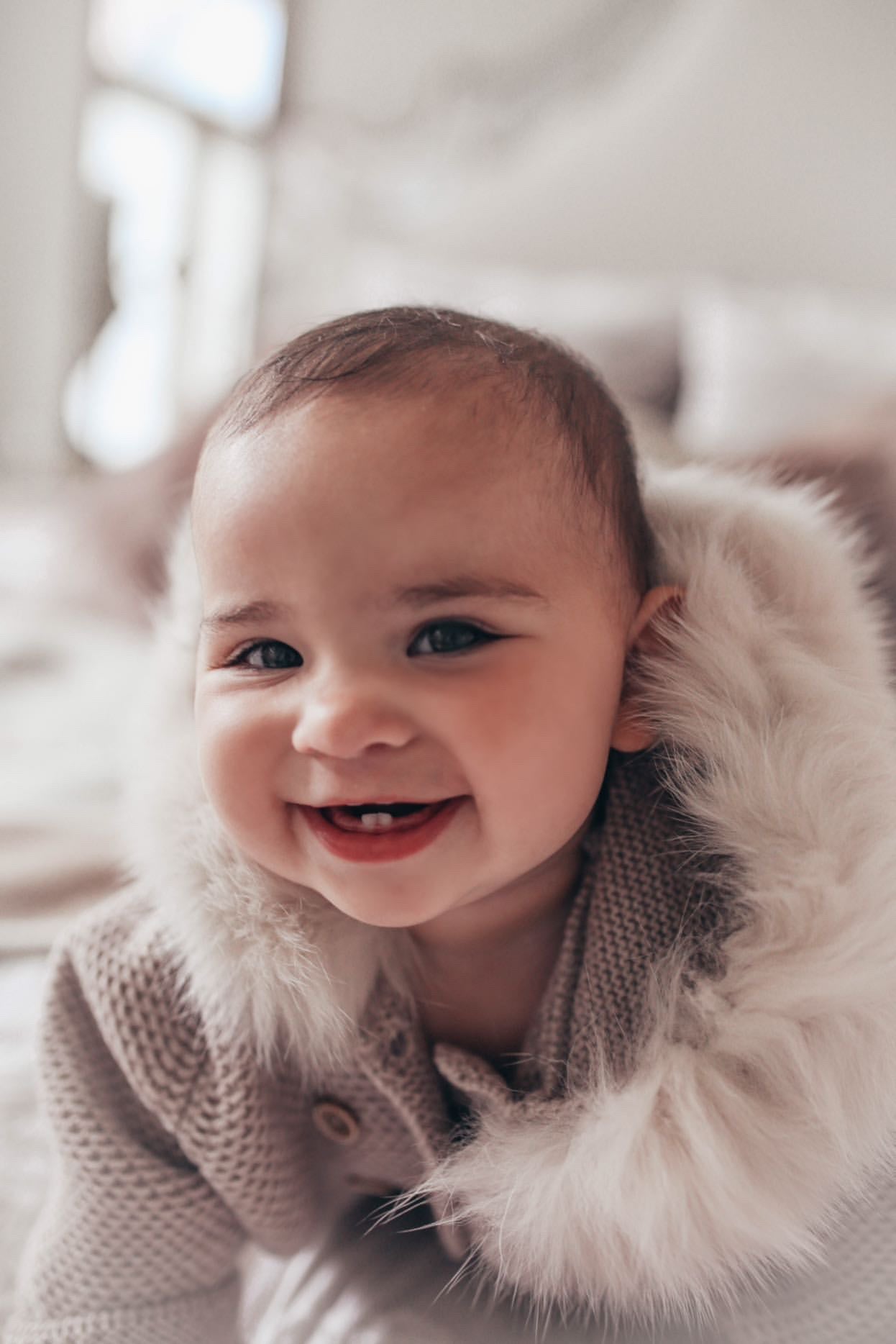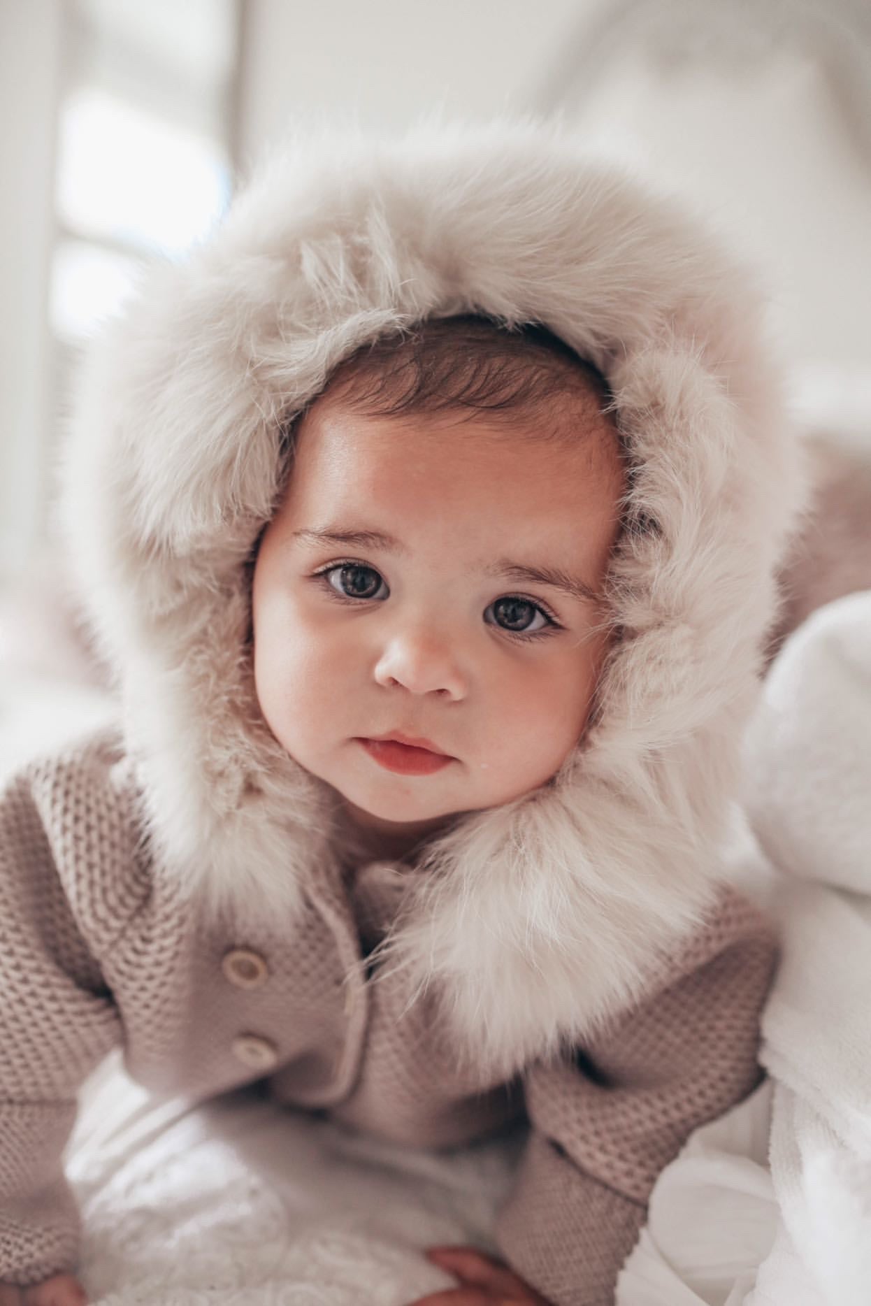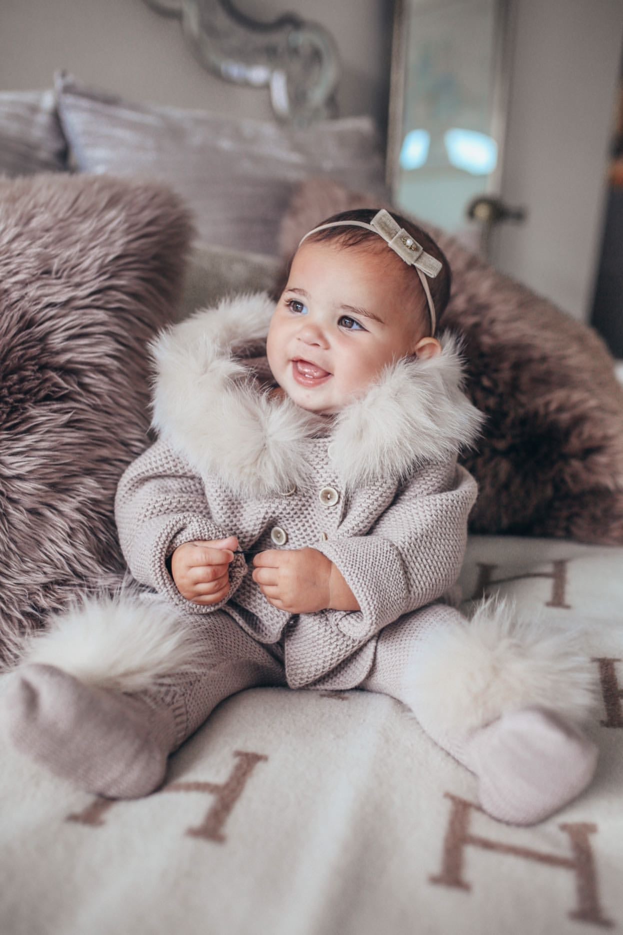 MI LOVES SIGNATURE Luxurious knitted cardigan with fox fur trim in Cappuccino.