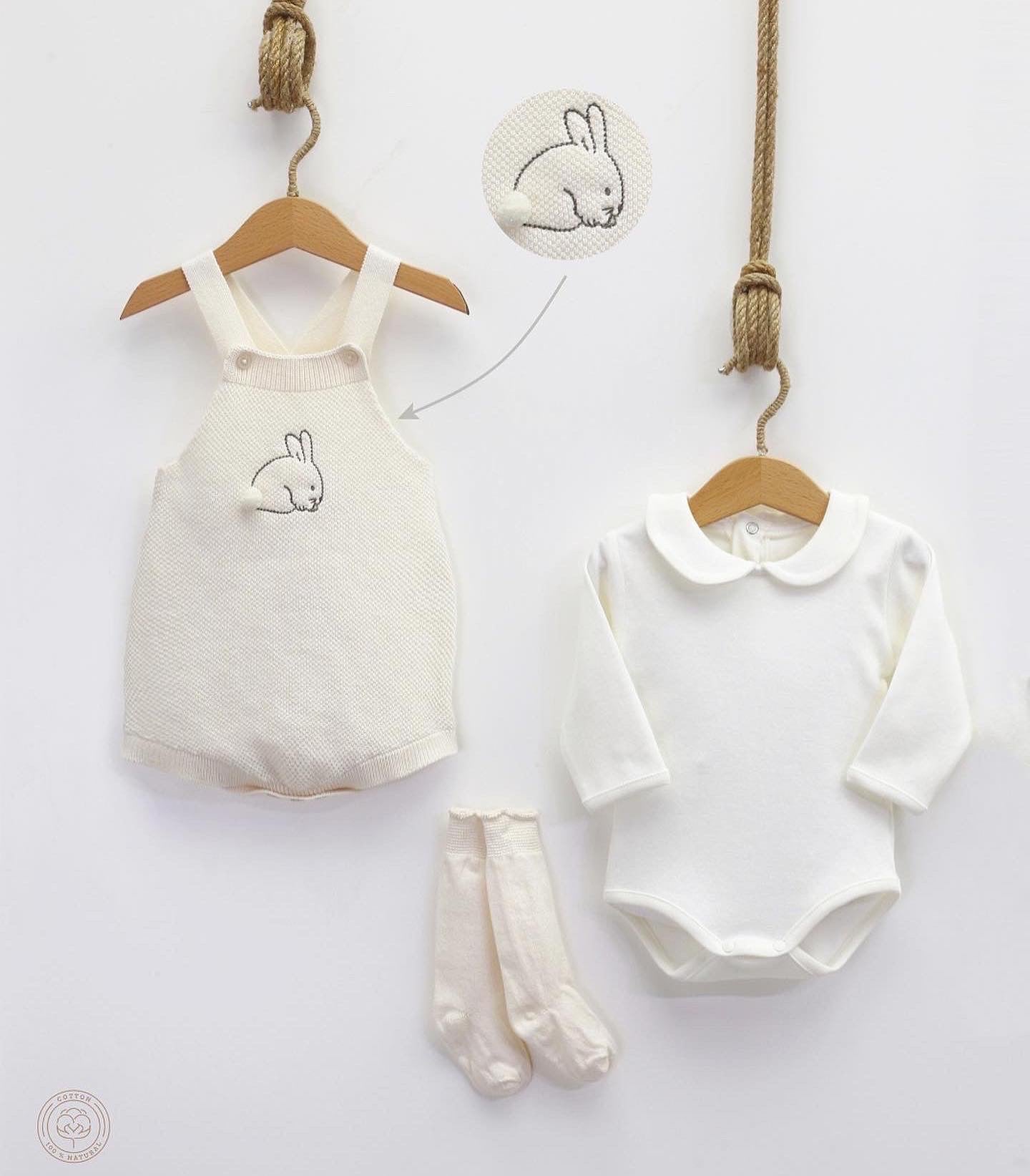 Ivory Knitted 3 piece Bunny set(Romper,Bodysuit,Socks)