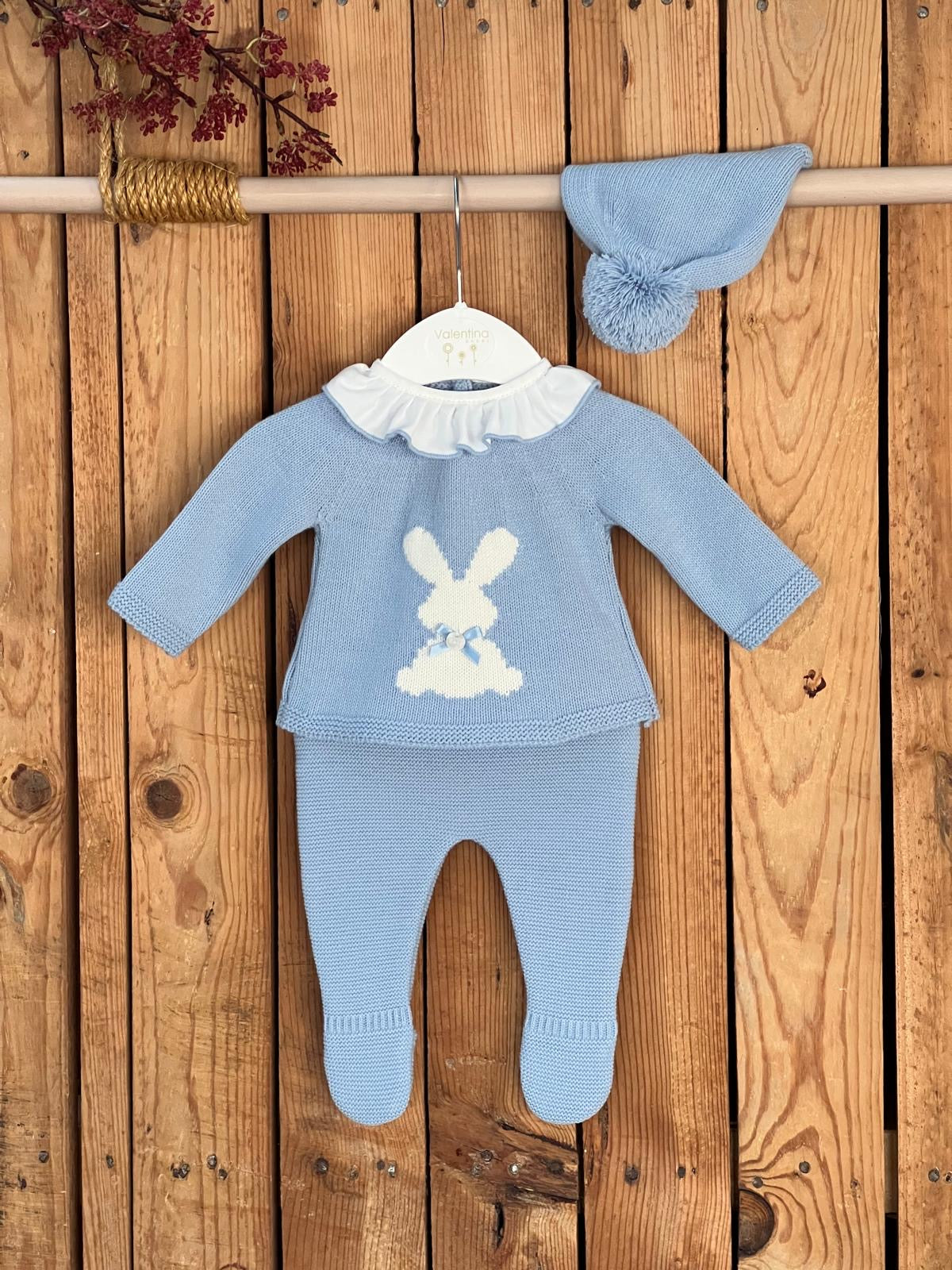 Blue Knitted 3 piece Bunny set(Romper,Bodysuit,Socks)
