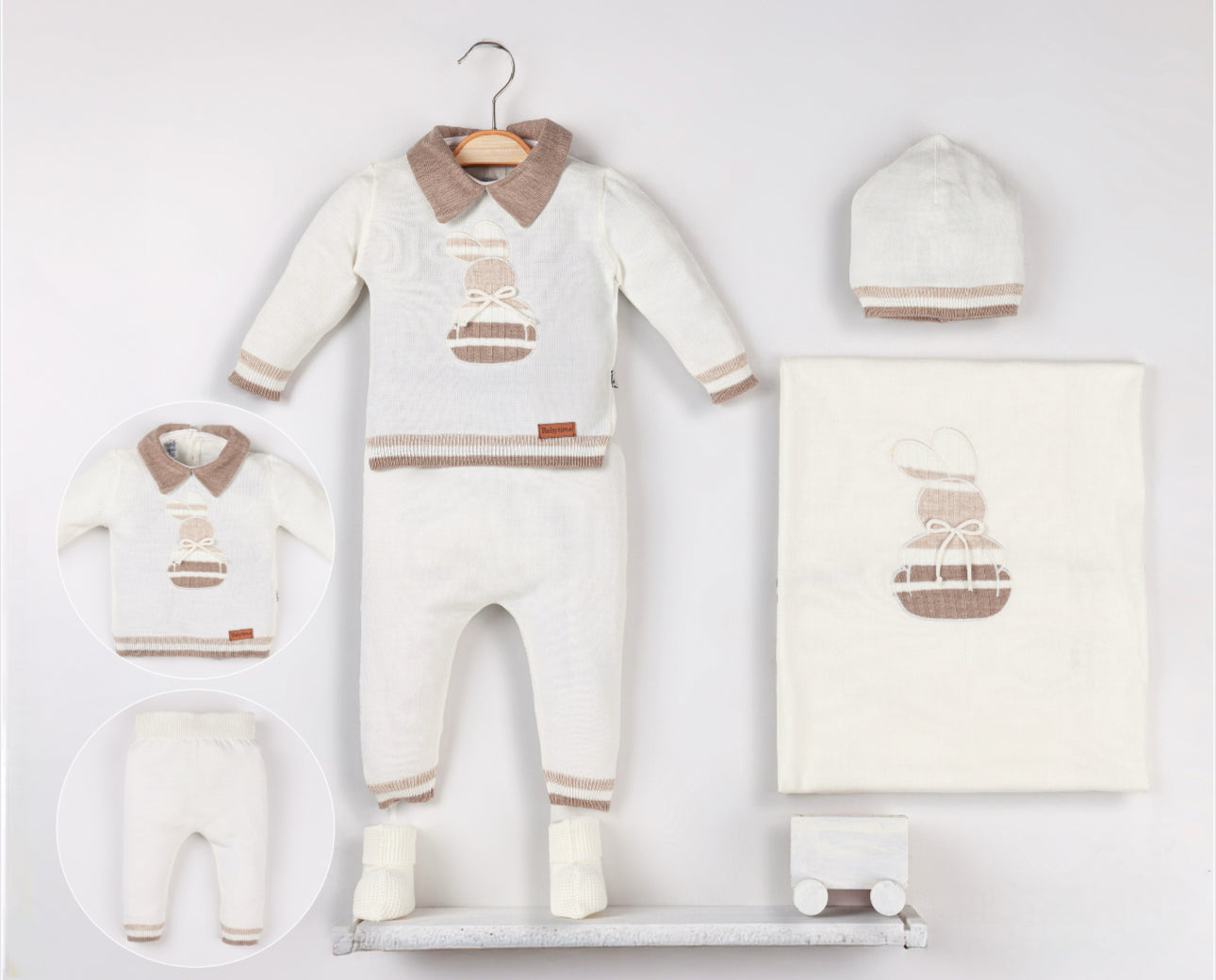 Beautiful Bunny 5 piece Hospital/Coming home set(including Blanket/Jumper/Pants/Booties/Hat)