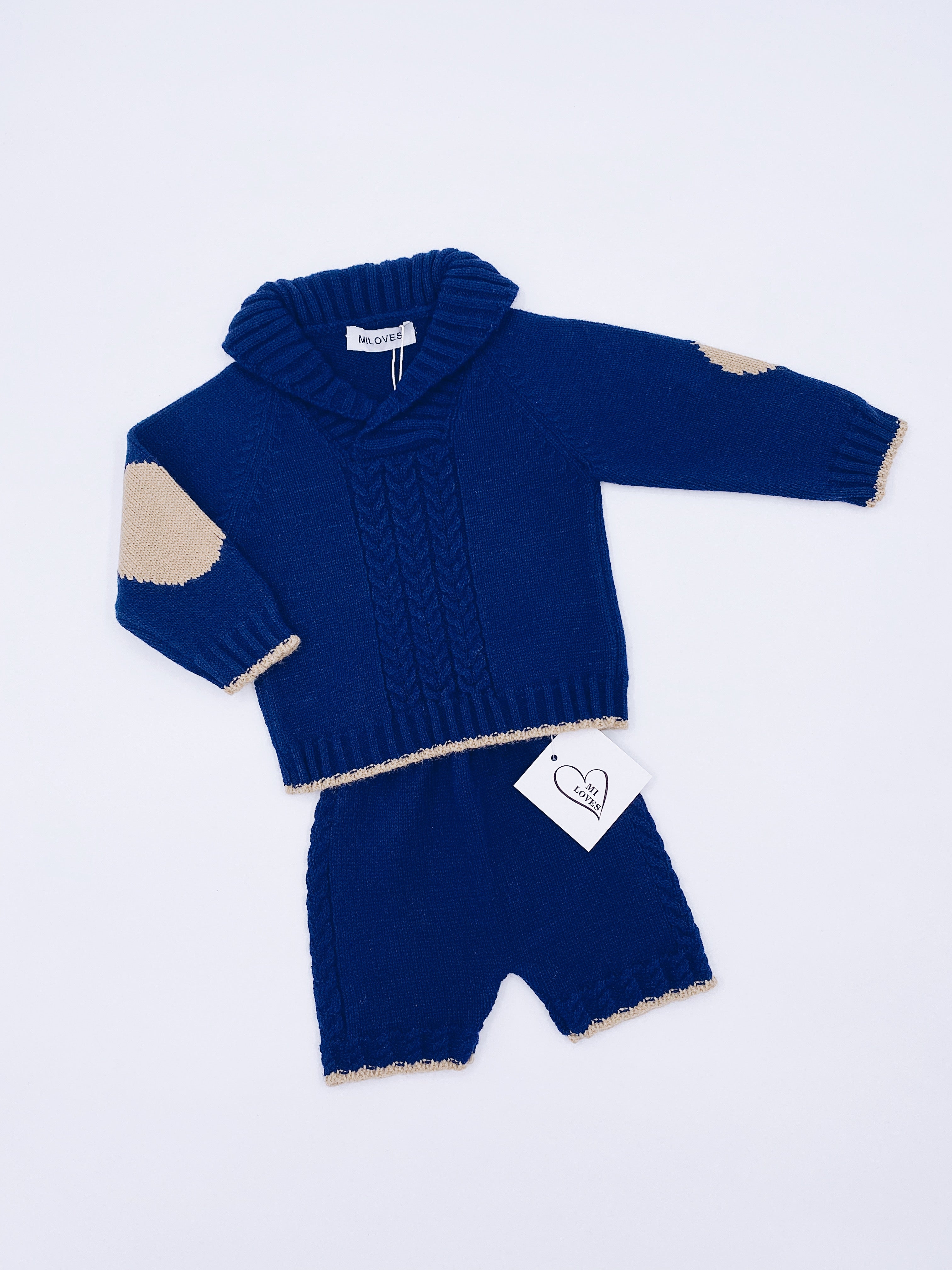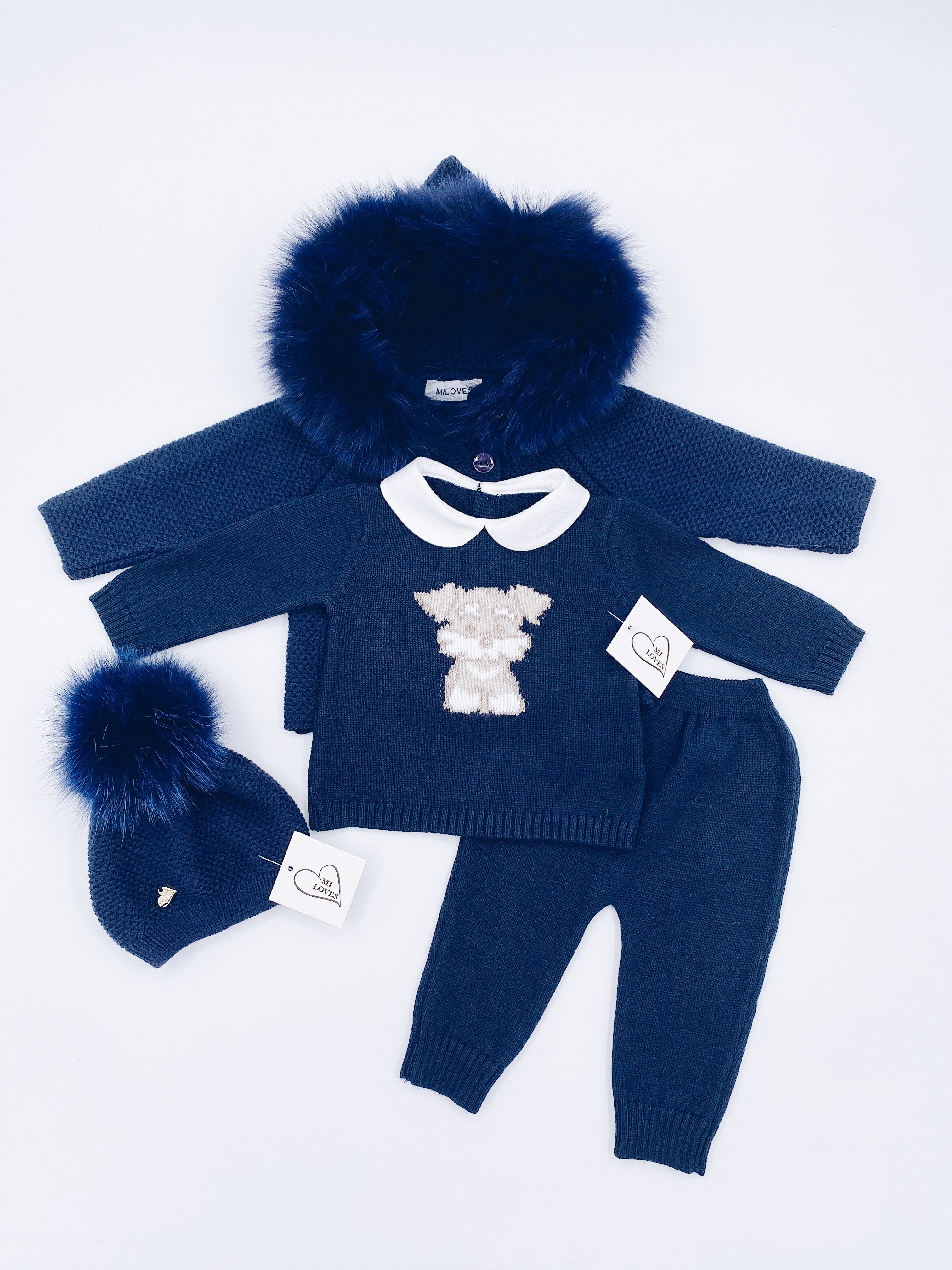 MI LOVES Signature Little Puppy knitted 2 piece suit in Navy.