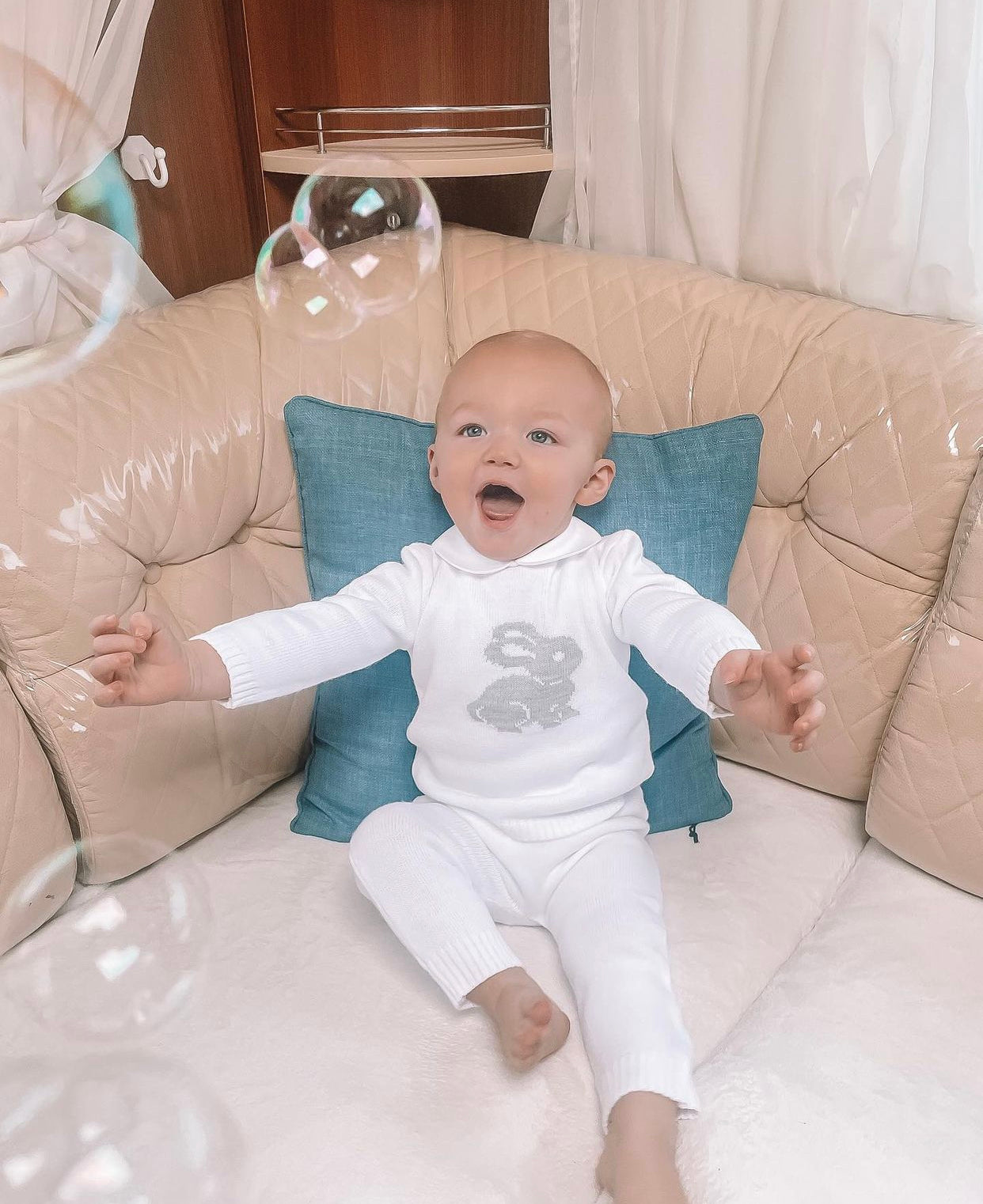 MI LOVES Signature Little Bear knitted 2 piece suit in Ivory .